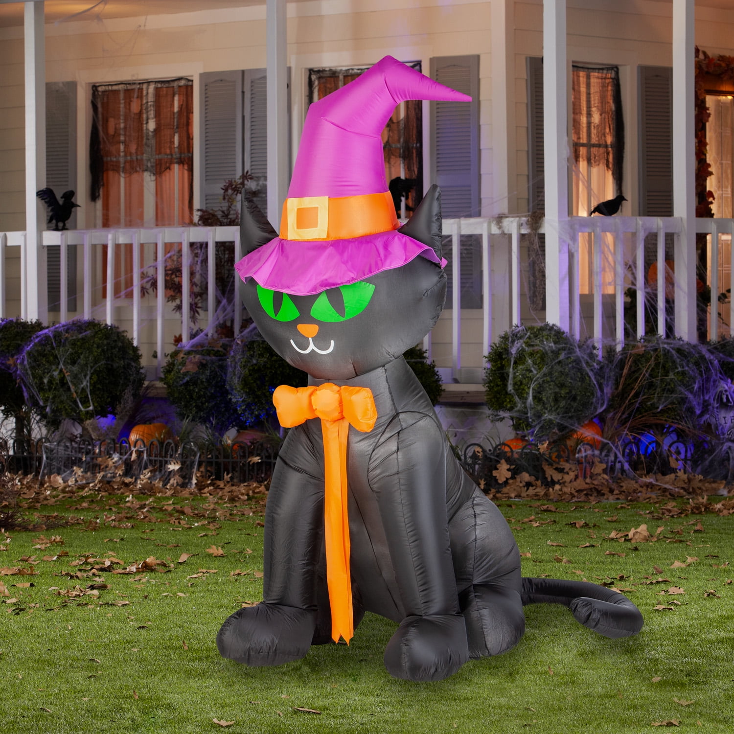 Gemmy Halloween Black Cat Witch 6.5ft Inflatable Lawn Decoration