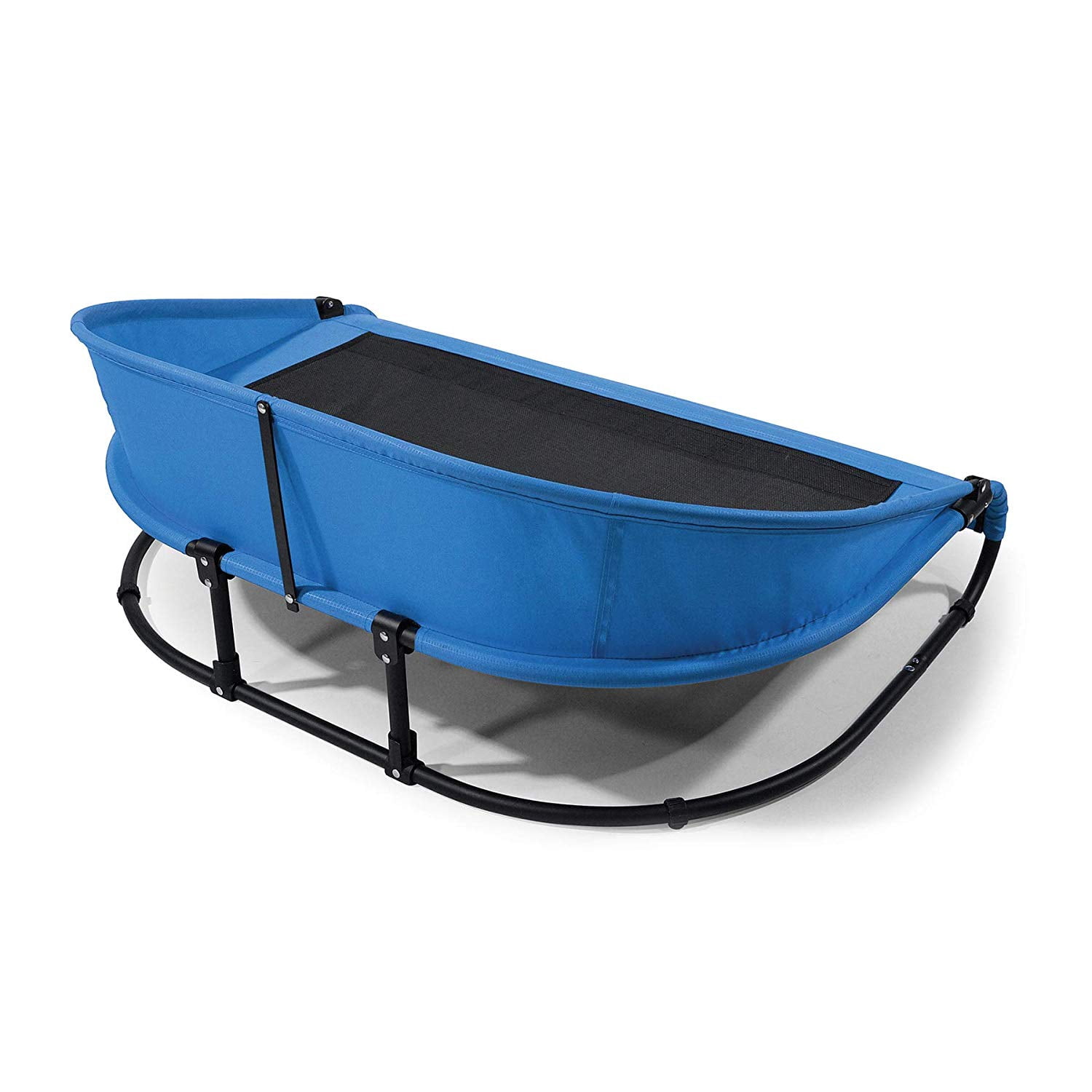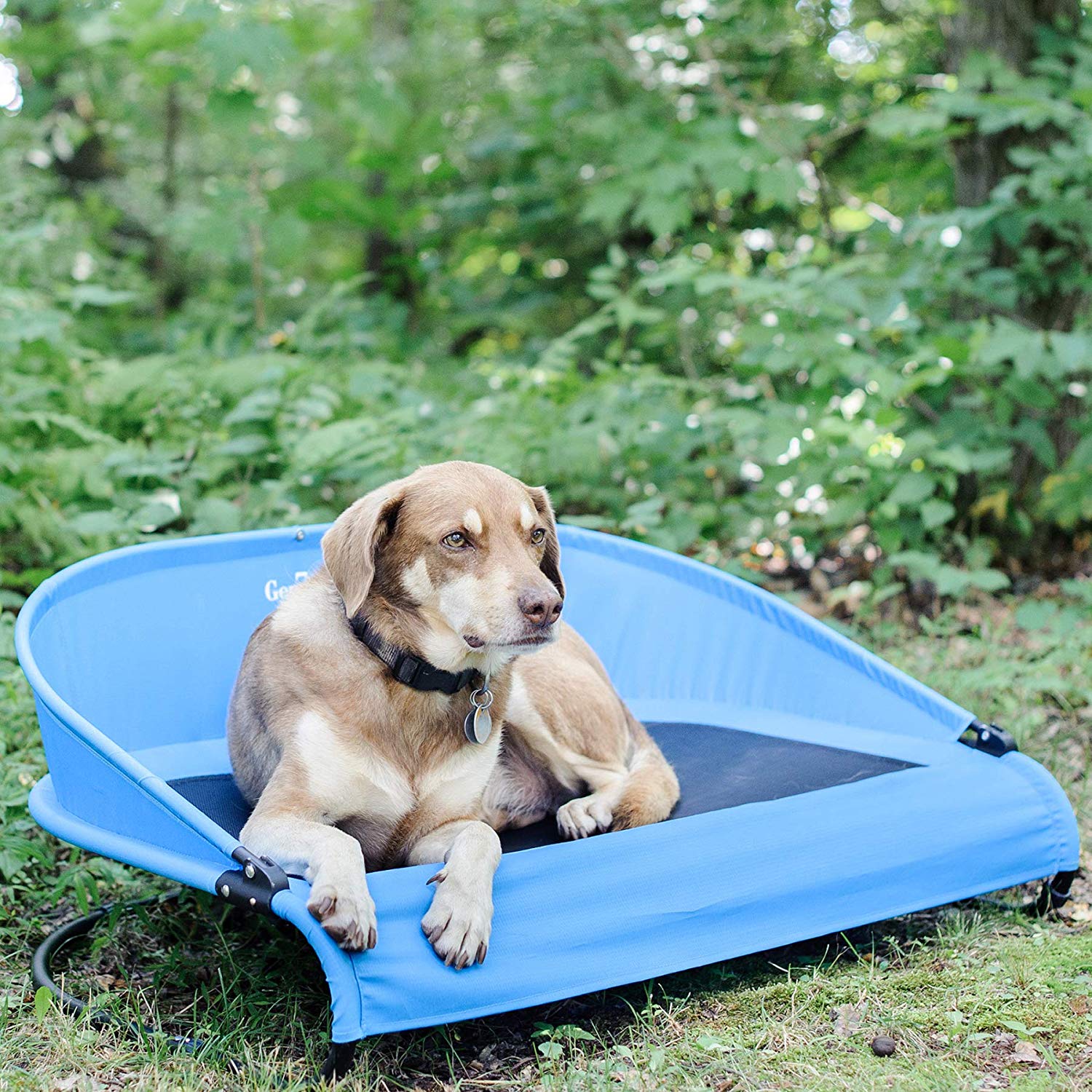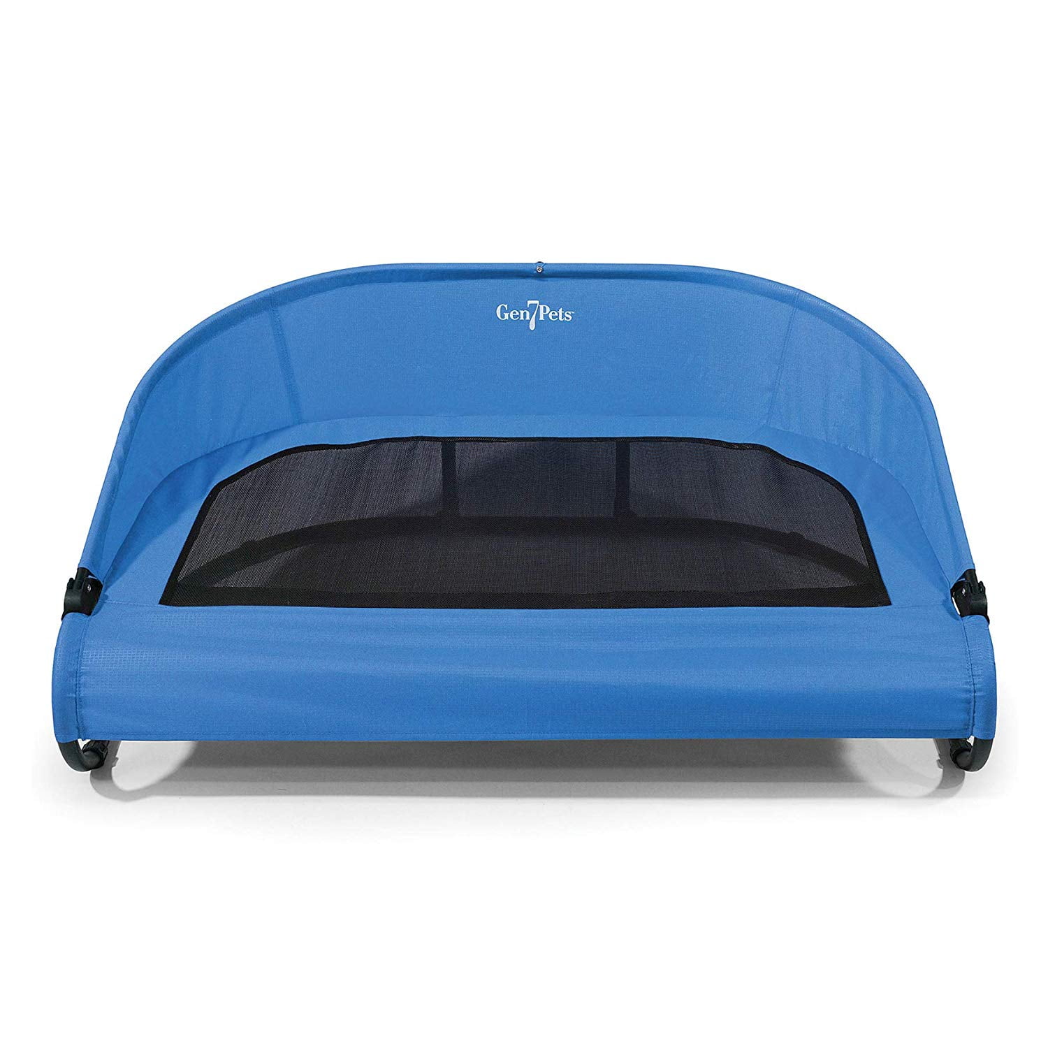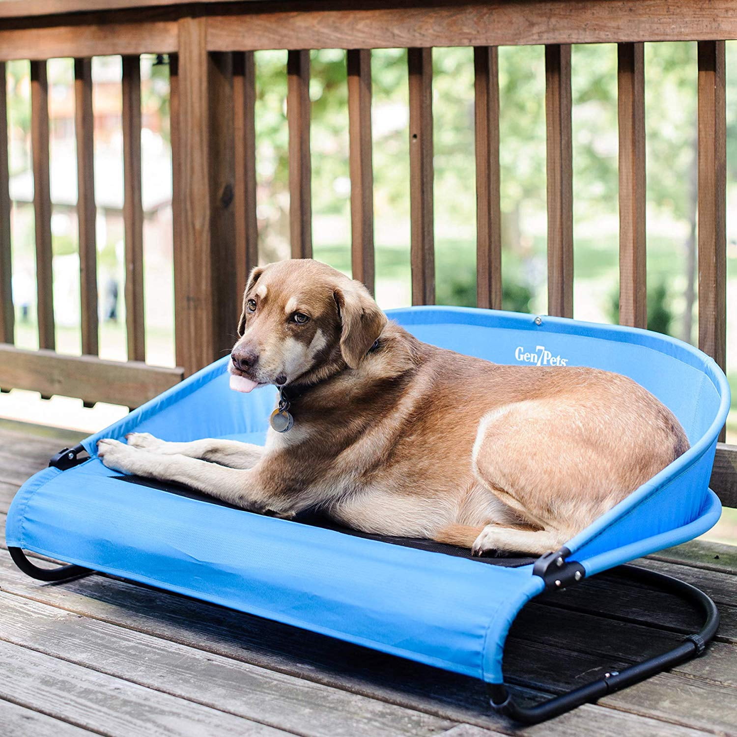 Gen7Pets Cool-Air Cot for Dogs and Cats, Trailblazer Blue, Large The Cool-Air Cot from Gen7Pets combines portable convenience, outdoor durability, and pet-friendly comfort. It is ideal for raising your pet off muddy, bug infested, hot, or wet surfaces. The Smart Air-Flow mesh provides cool air comfort and prevents pooling water after it rains which reduces the potential for itchy hotspots on pet’s fur. The curved, raised back provides support and is ideal for dogs and cats that like to curl up for a nap. Quick snap-together design for storage and travel and has durable double stitching for extra strength. The powder-coated steel frame will not rust which allows the all-weather cot to be left outdoors.