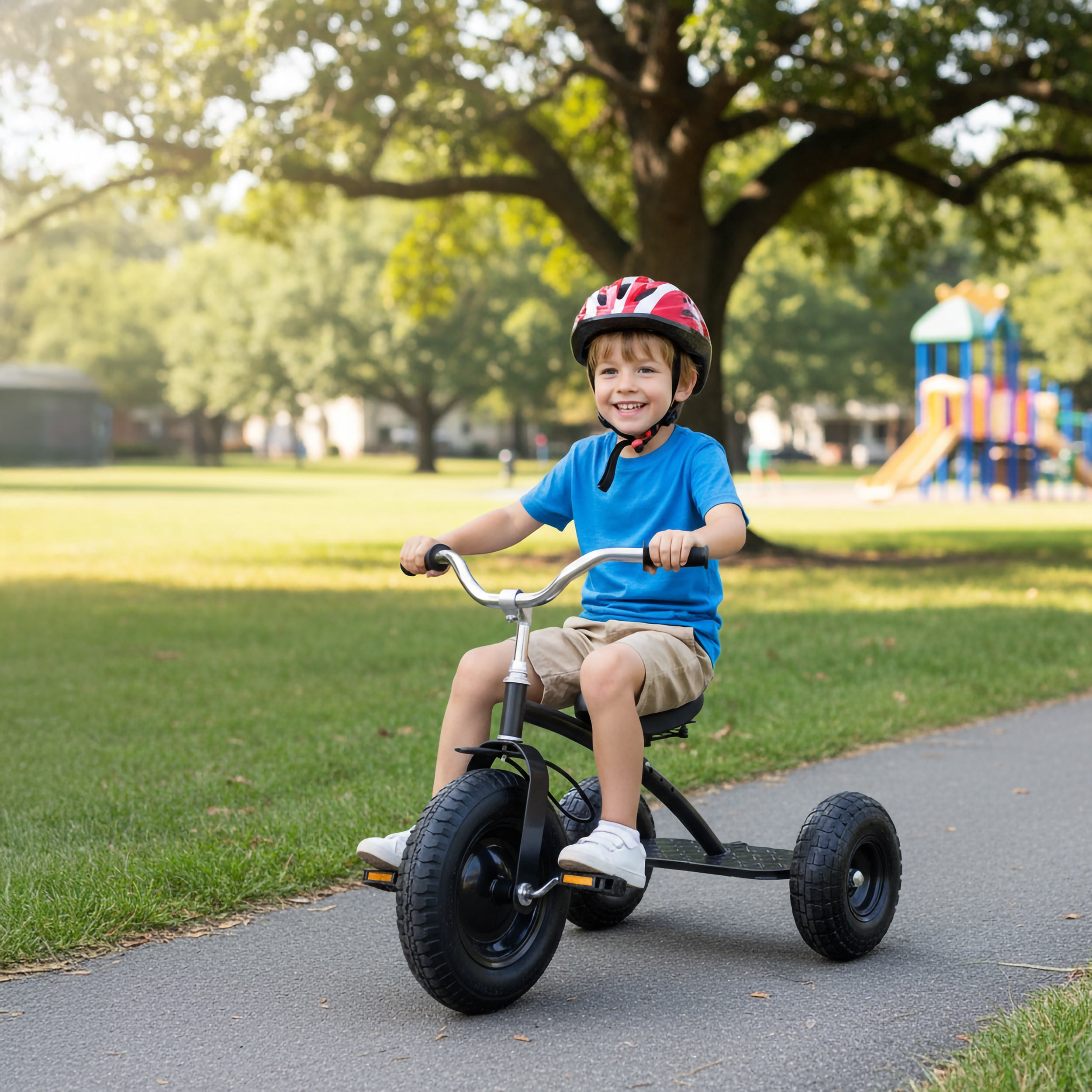 Introducing the Gener8 Deluxe Tricycle – a sturdy and fun ride-on for young adventurers! Built with durable steel and rubber tires for a smooth, safe ride, it’s available in vibrant red or sleek black. Ideal for toddlers starting their journey of exploration, this trike encourages confidence and independence. Pair it with the Gener8 Wagon GS23051R for even more excitement. Whether towing a favorite toy or helping in the yard, this dynamic duo sparks endless imaginative play. Beyond fun, riding this trike enhances balance, coordination, and motor skills. It fosters hand-eye and limb coordination as kids learn to steer, pedal, and navigate their world. Perfect for ages 3 to 7, it’s a great birthday or holiday gift with a weight capacity of 110 pounds. The trike measures 28″ to the frame and 26.7″ front to back, with inflatable rubber tires (front wheel diameter: 14.5″). Its adjustable seat (16.15″ to 20.0″ from the floor) grows with your child for years of enjoyment. Easy adult assembly means your child can be riding in no time. Get ready for endless adventures with the Gener8 Unisex Deluxe Tricycle – where every ride is a journey of independence and exploration!