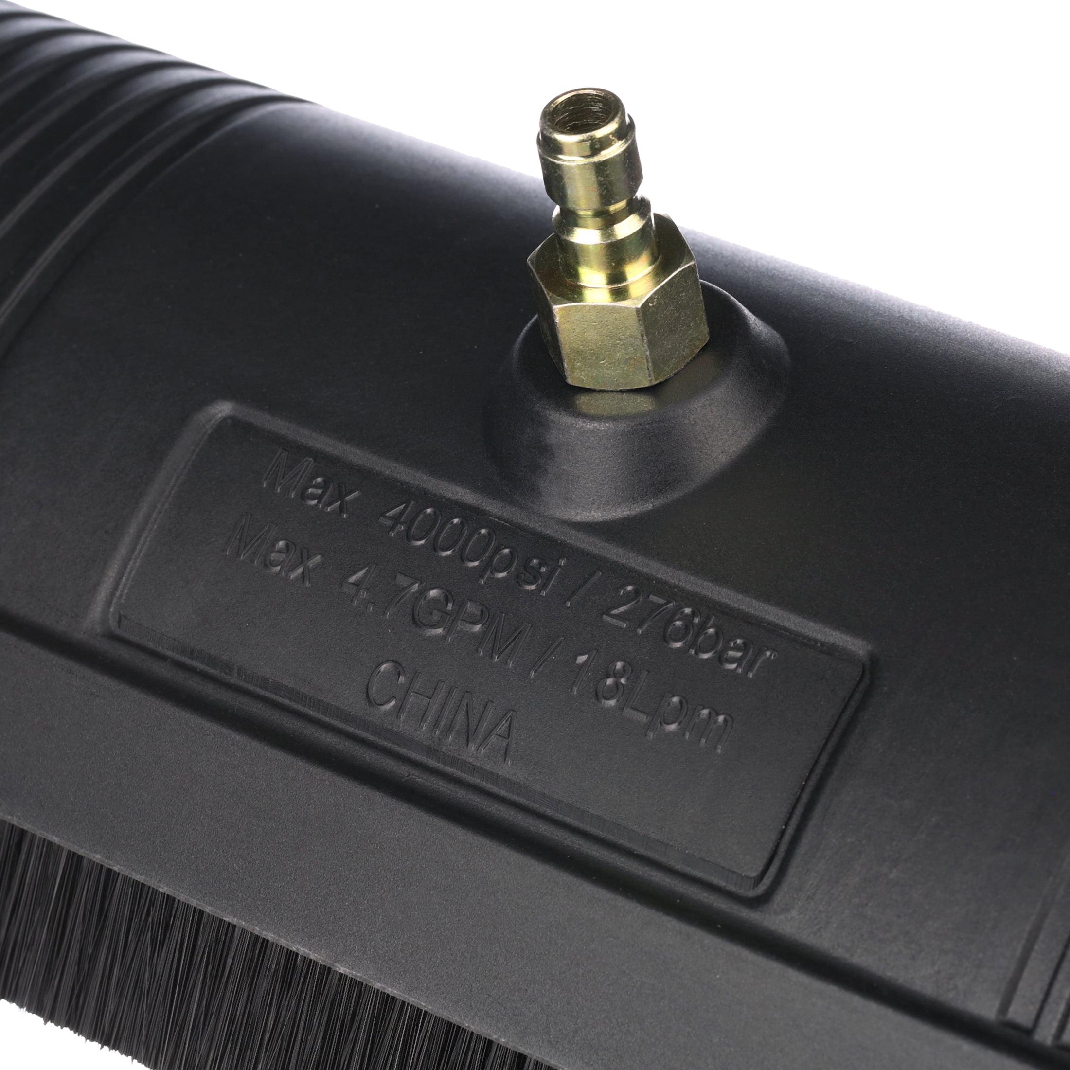 Get larger areas cleaned faster with this Generac 12″ Power Broom. It’s designed to work with pressure washers rated up to 4000 PSI. With four powerful nozzles, the pressure washer power broom provides a 12″ cleaning path. It’s ideal for decks, patios and walkways, giving you plenty of places to use it. The Generac power broom features durable housing that minimizes over-spray. The solid molded wheels provide a smooth rolling motion, making it easy for you to move it around as needed. The compact size of the broom allows you to easily store it in your workshop or garage when not in use. It’s simple to attach to your washer so you can begin using it right away. The lightweight construction helps ensure you can use it smoothly. This Generac 12″ Power Broom will make a handy addition to your cleaning supplies.