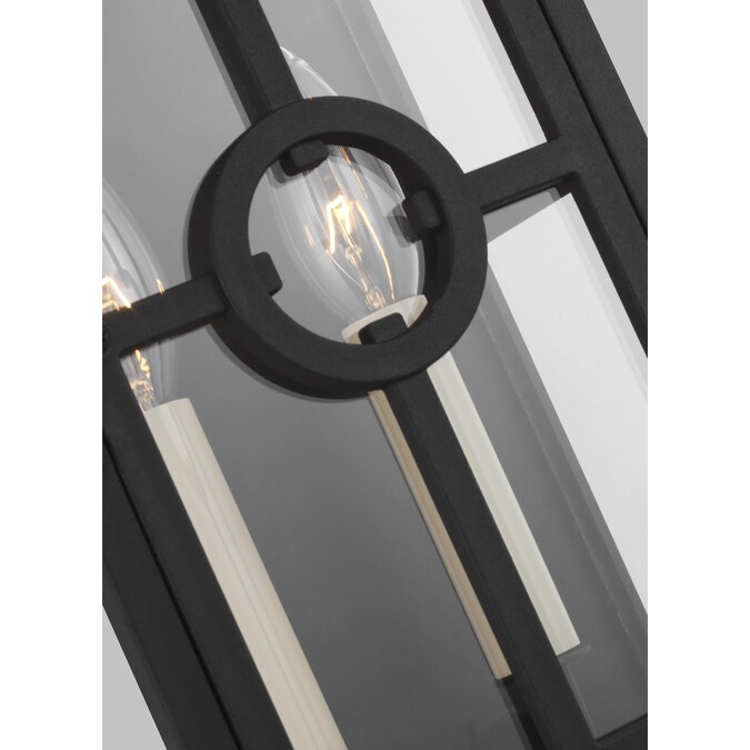 The Belleville two-light outdoor wall fixture in textured black enhances the beauty of your property, makes your home safer and more secure, and increases the number of pleasurable hours you spend outdoors. Encased in glass and defined by a textured black finish, Belleville is a candelabra-style wall lantern that illuminates an outdoor space with timeless elegance.