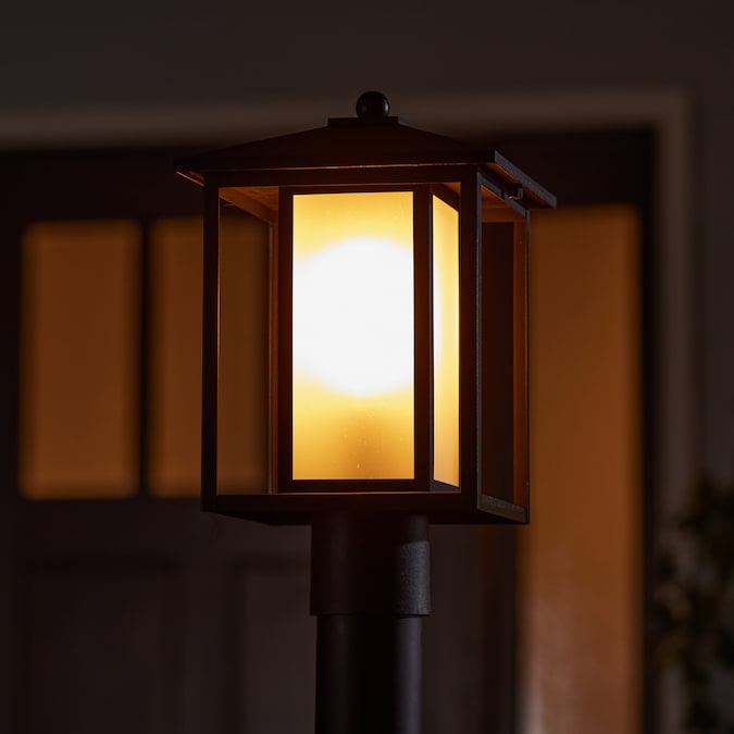 The Hunnington one light outdoor post top in black creates a warm and inviting welcome presentation for your home’s exterior. A bit of Shaker minimalism mixed with Arts and Crafts styling defines the transitional Hunnington outdoor lighting collection by . Equally at home in the city or the country, this timeless style will enhance the appearance of a home’s entrance with its clean, crisp lines. Offered in Weathered Pewter or Black finishes, with either Etched Seeded glass or Clear Seeded glass, the assortment includes a one-light outdoor pendant, small and large one-light outdoor wall lanterns, a one-light out door post lantern and a two-light outdoor ceiling flush mount. Both incandescent lamping and ENERGY STAR-qualified LED lamping (for those fixtures with the Etched Seeded glass) are available for most of the fixtures, and some can easily convert to LED by purchasing LED replacement lamps sold separately (for those with the Clear Seeded glass).
