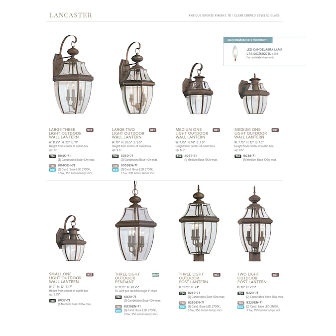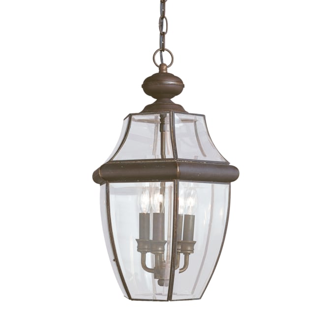 The Lancaster three light outdoor pendant fixture in antique bronze creates a warm and inviting welcome presentation for your home’s exterior. Light has a way of sparkling against glass to create a warm and inviting welcome, and the Lancaster outdoor collection by is a classic example of such traditional design. Clear Curved Beveled glass is paired with one of four beautiful finish options including Polished Brass, Black, Antique Bronze and Antique Brushed Nickel. The assortment includes small, medium and large one-light outdoor wall lanterns, two-light outdoor wall lantern, three-light outdoor wall lantern, two-light and three-light outdoor post lanterns and a three-light outdoor pendant. Some of the fixtures can easily convert to LED by purchasing LED replacement lamps sold separately.