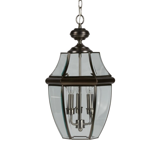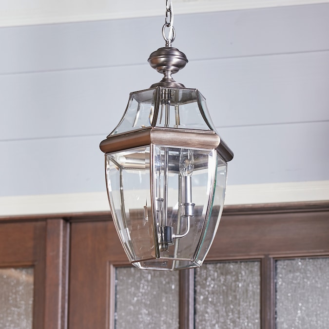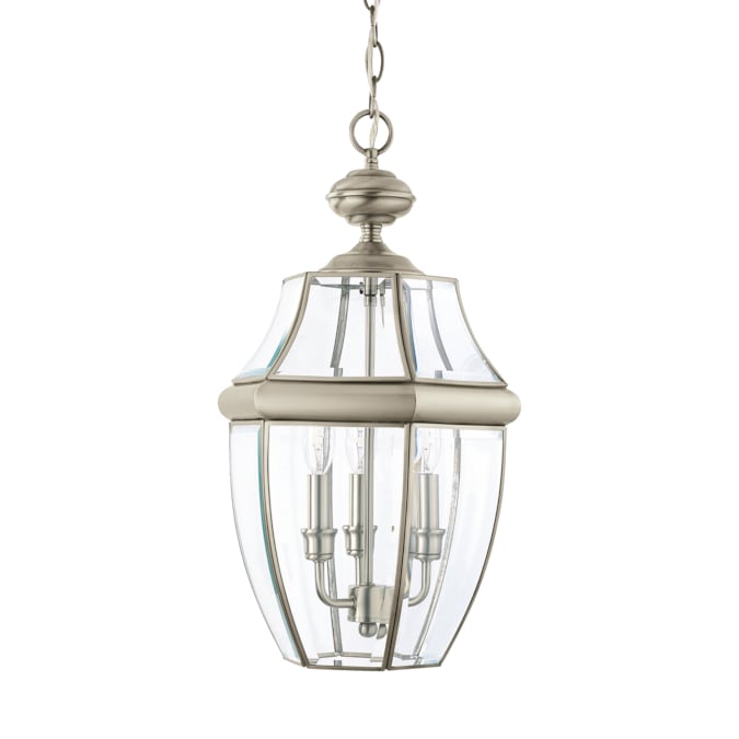 The Lancaster three light outdoor pendant fixture in antique brushed nickel enhances the beauty of your property, makes your home safer and more secure, and increases the number of pleasurable hours you spend outdoors. Light has a way of sparkling against glass to create a warm and inviting welcome, and the Lancaster outdoor collection by is a classic example of such traditional design. Clear Curved Beveled glass is paired with one of four beautiful finish options including Polished Brass, Black, Antique Bronze and Antique Brushed Nickel. The assortment includes small, medium and large one-light outdoor wall lanterns, two-light outdoor wall lantern, three-light outdoor wall lantern, two-light and three-light outdoor post lanterns and a three-light outdoor pendant. Some of the fixtures can easily convert to LED by purchasing LED replacement lamps sold separately.