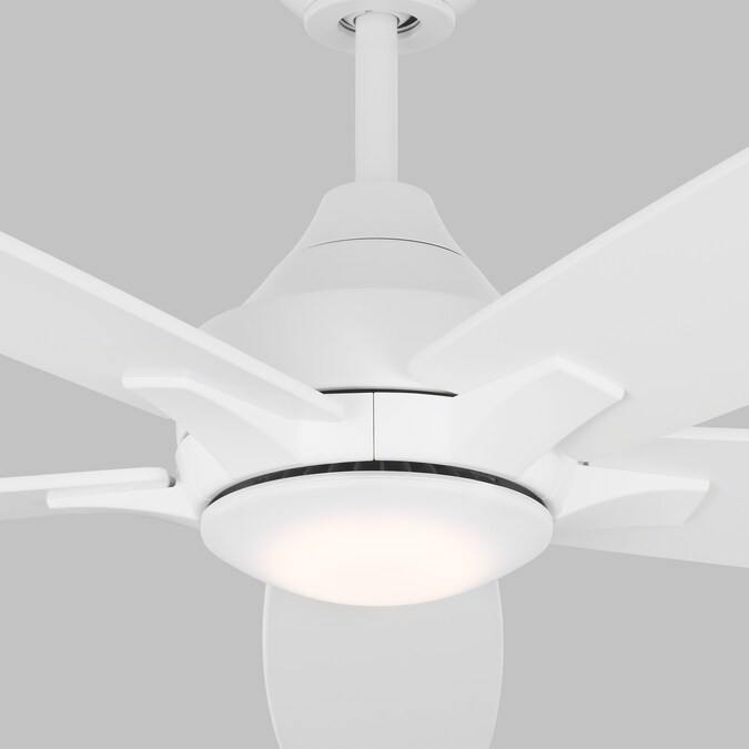 - Energy-efficient DC motor fan with 6-in midnight matte white downrod included, sloped ceiling compatible