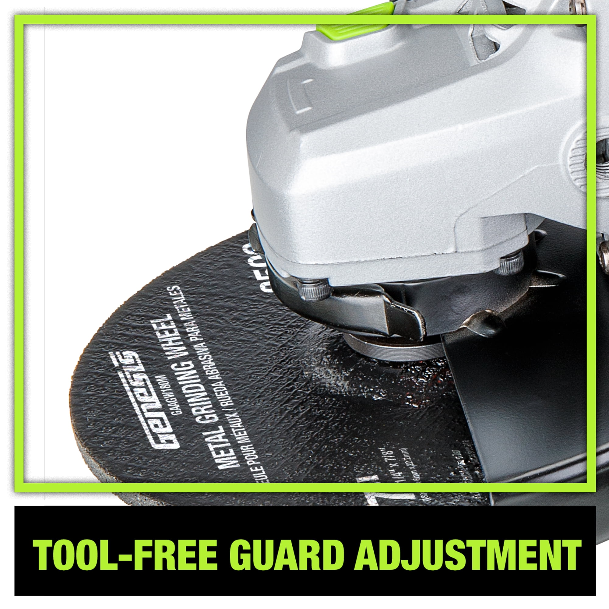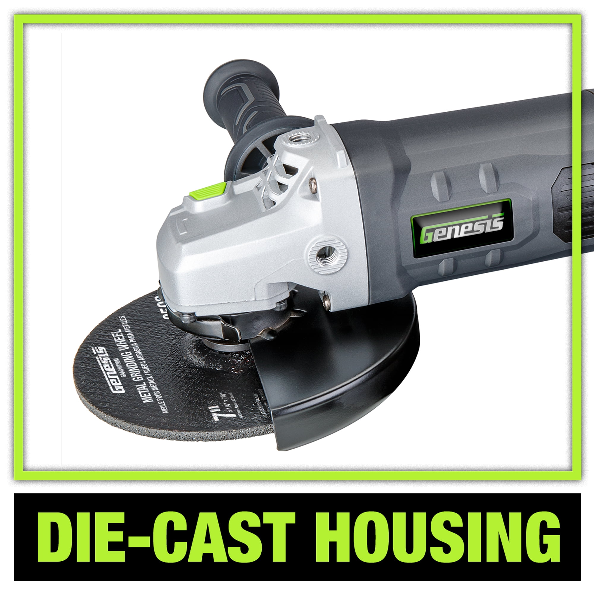Genesis Angle Grinder 15 Amp 7 Inch 8,500 RPM Corded with 3-Position Side Handle, Wheel Guard and Grinding Wheel and 2 Year Warranty (GAG1570)