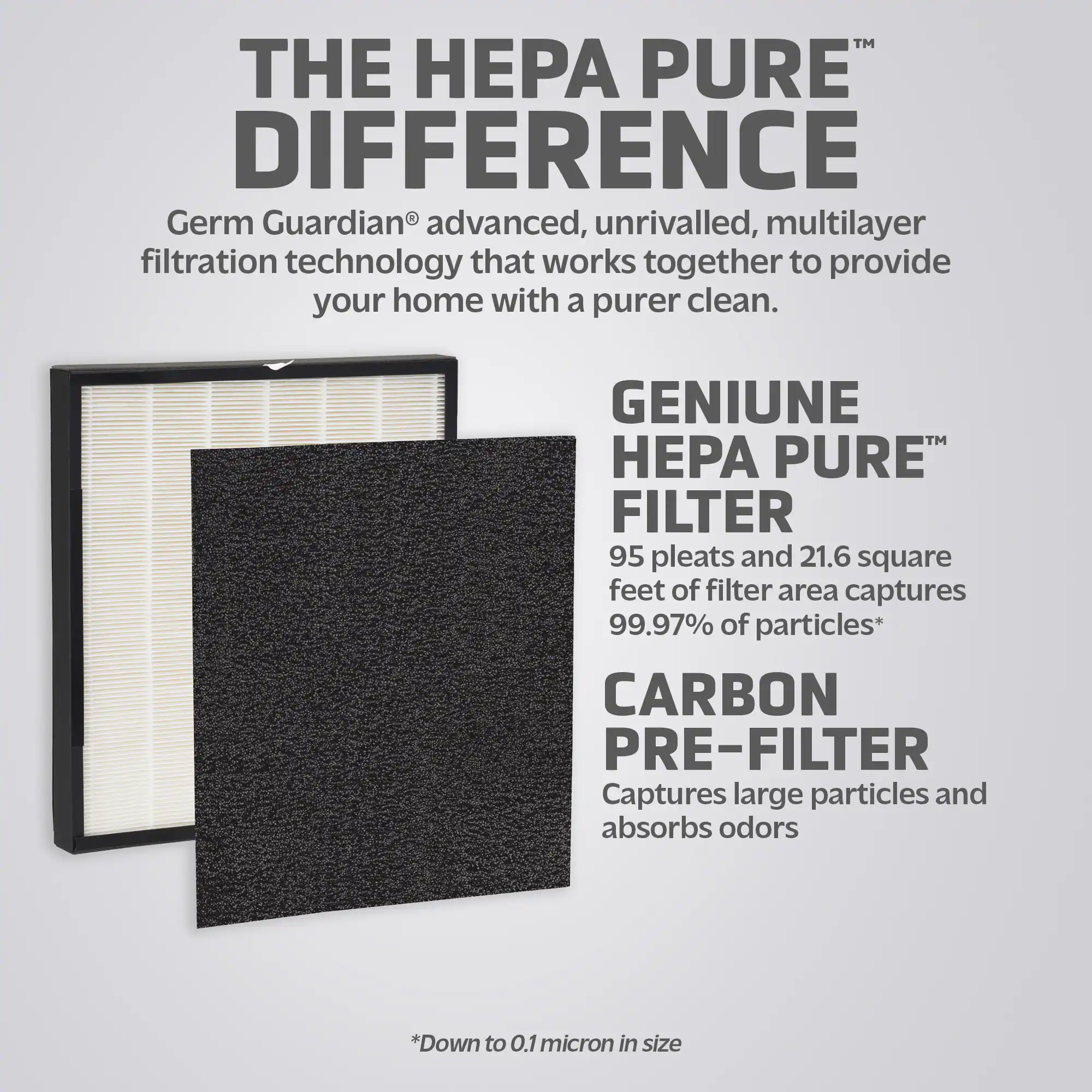 GermGuardian FLT5900 HEPA GENUINE Replacement Filter J is a combination filter. It includes a HEPA filter, a pre-filter/activated carbon filter layer that captures odors from cooking, pets and smoking, while helping to improve indoor air quality. The HEPA Filter captures 99.97% of dust and allergens as small as 0.1 microns such as household dust, pet dander, mold spores and plant pollens. It is recommended to use with the GermGuardian AC5900WCA. The use of this genuine Guardian Technologies replacement part will maintain the product’s performance.
