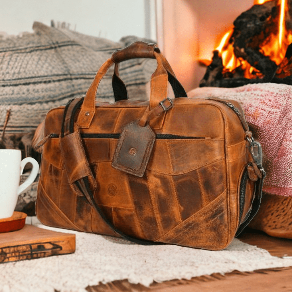 Genuine Leather Duffle Bag 20″ Medium Travel Bag Gym Sports Overnight Weekender Bag Upcycled Leather Bag By Aaron Leather Goods