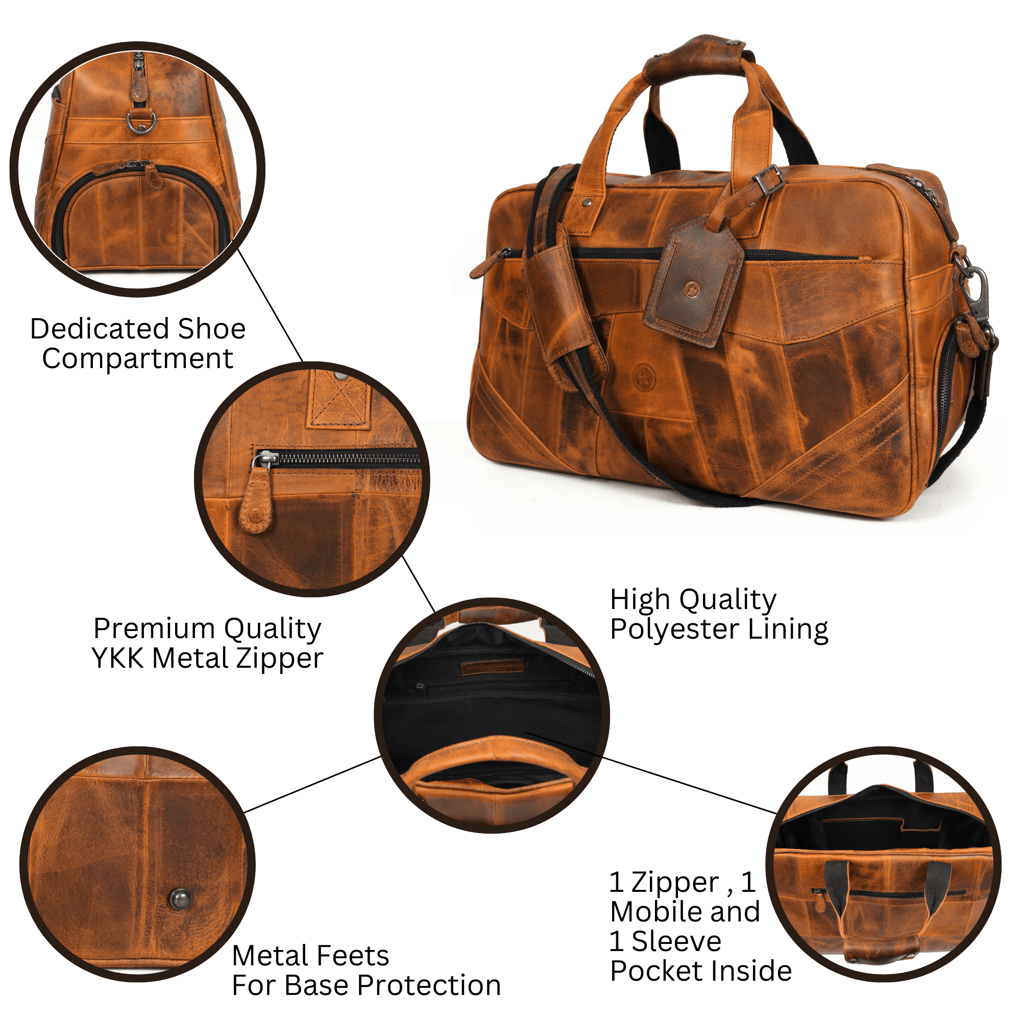 • **STURDY AND DURABLE – Made from top grain Buffalo Leather, Known for Long Term Use and Durability | The Crafted Adjustable Strap Is fitted With Corrosion Free Original Brass Buckle | YKK Metal Zippers | Heavy Duty Lining • **PERFECTLY SIZED – 20″ (Length) X 11″ (Height) X 10″ (Width) | Adjustable Shoulder Straps With A Maximum Length Of 56” • **SPACIOUS AND VERSATILE – 1 Large Compartment – Spacious And Can Carry All Your Travel Essentials | Two shoe compartment I Two Zipper Pockets At Each Side – For Your Tiny Stuff Like Toiletries And First Aid Kit. Internal 1 zipper pocket and an organizer to keep your mobile case, pen and credit debit card • **STYLISH, ELEGANT & PERFECT GIFT – Our Unisex Rustic Brown Duffle Bag Is Solid, Sturdy And Reliable. Bring It On A Casual Weekend Overnight Trips Or Use It On Formal Business Trips. A Wise And Thoughtful Gift For Travelers. Best For Short Trips And Vacations, Outdoor Sports, Hiking, Camping And Business Trips. • **WARRANTY AND SUPPORT – We do make sure that every customer gets a great buying experience with Aaron Leather Goods. If you find any issue with products, please let us know immediately and we will revert within 24 hours. WARRANTY: Aaron Leather Goods shall replace the bag or accessories of the bag if any product of Aaron Leather Goods proves to be defective in terms of material or craftsmanship. Warranty period starts for 1 year from the date of purchase.