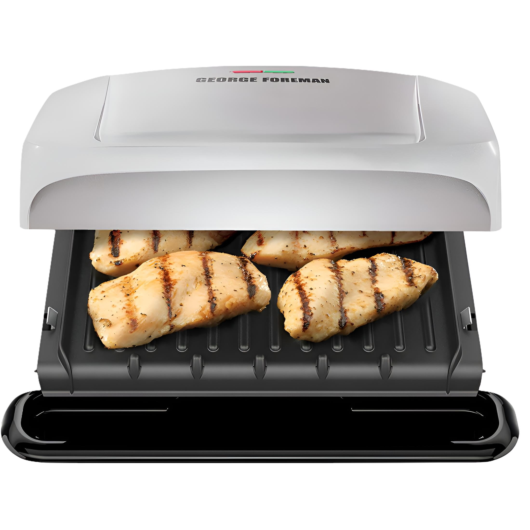 George Foreman 4 Serving Electric Indoor Grill and Panini Press in Silver