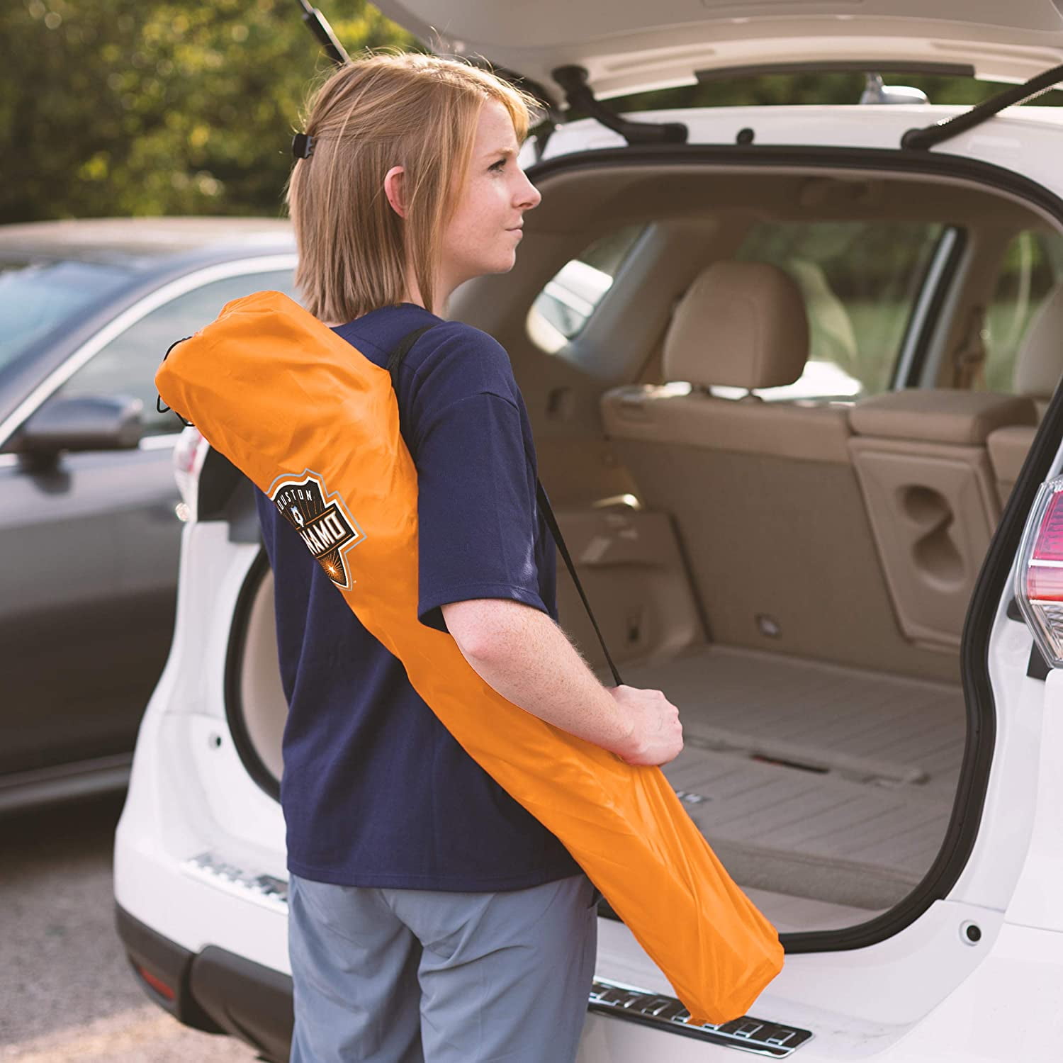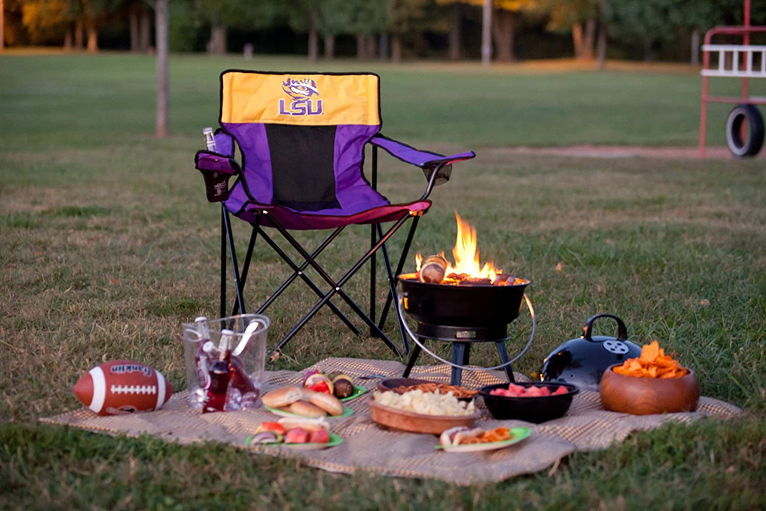 Safely holds up to 275 pounds. Powder-coated, steel frame and double layered polyester Flat, wide-based feet provide stability Adjustable armrests Adjustable armrests Adjustable armrests Adjustable armrests Adjustable armrests Seating area measures approximately 22″ x 34.5″ Includes carrying bag Includes carrying bag Includes carrying bag