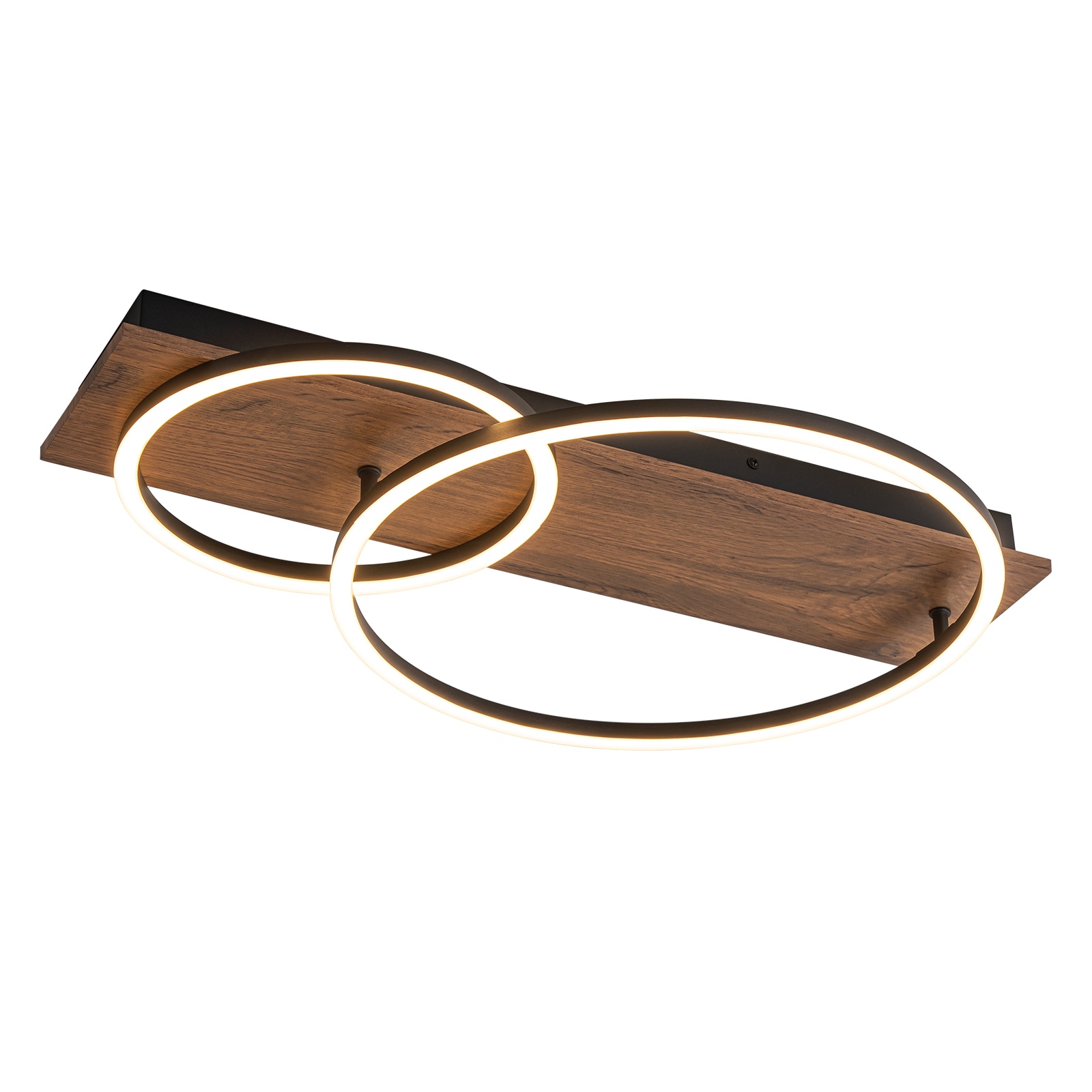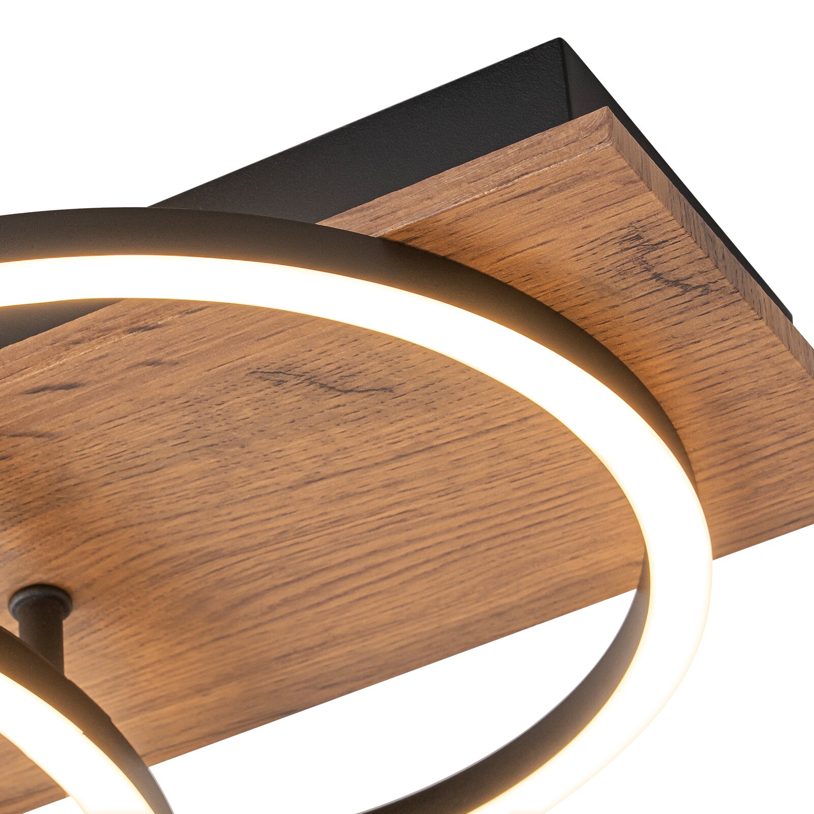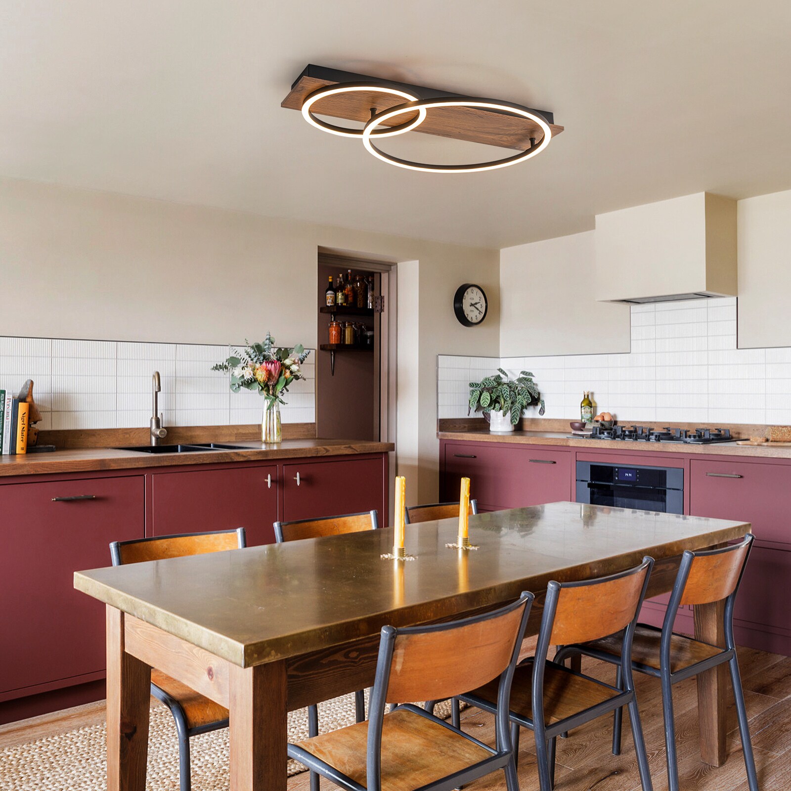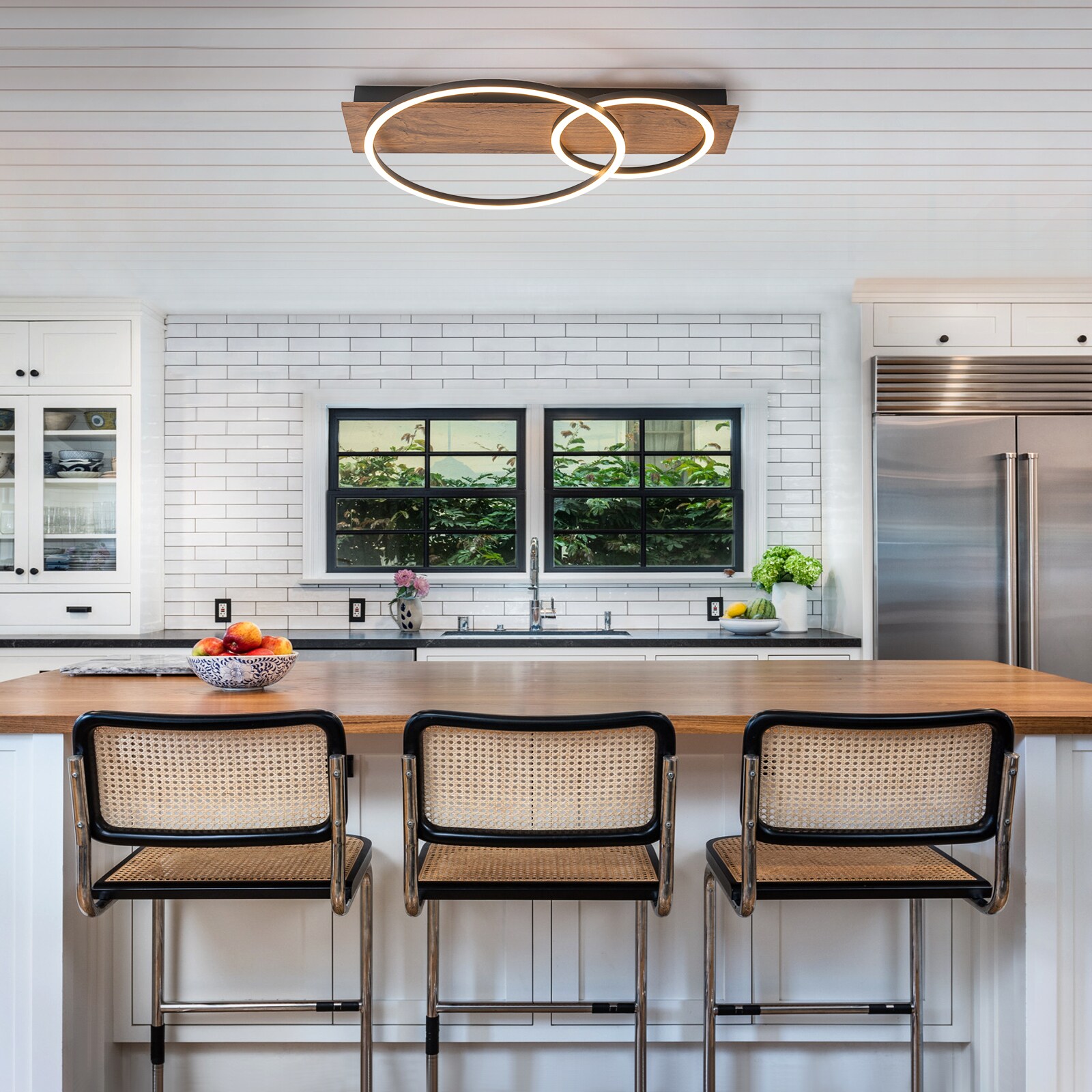 This modern LED ceiling light is the perfect addition to any room. Made of wood, it is both stylish and durable. Its integrated LED light source emanates from the black circular rings creating a look that’s both rustic and modern. Built-in LED will bring you a warm light, and you can adjust brightness by wall dimer based on what you want for lighting (Dimmer Not Included). With its sleek, modern design, this LED ceiling light is sure to be a conversation starter in any room.