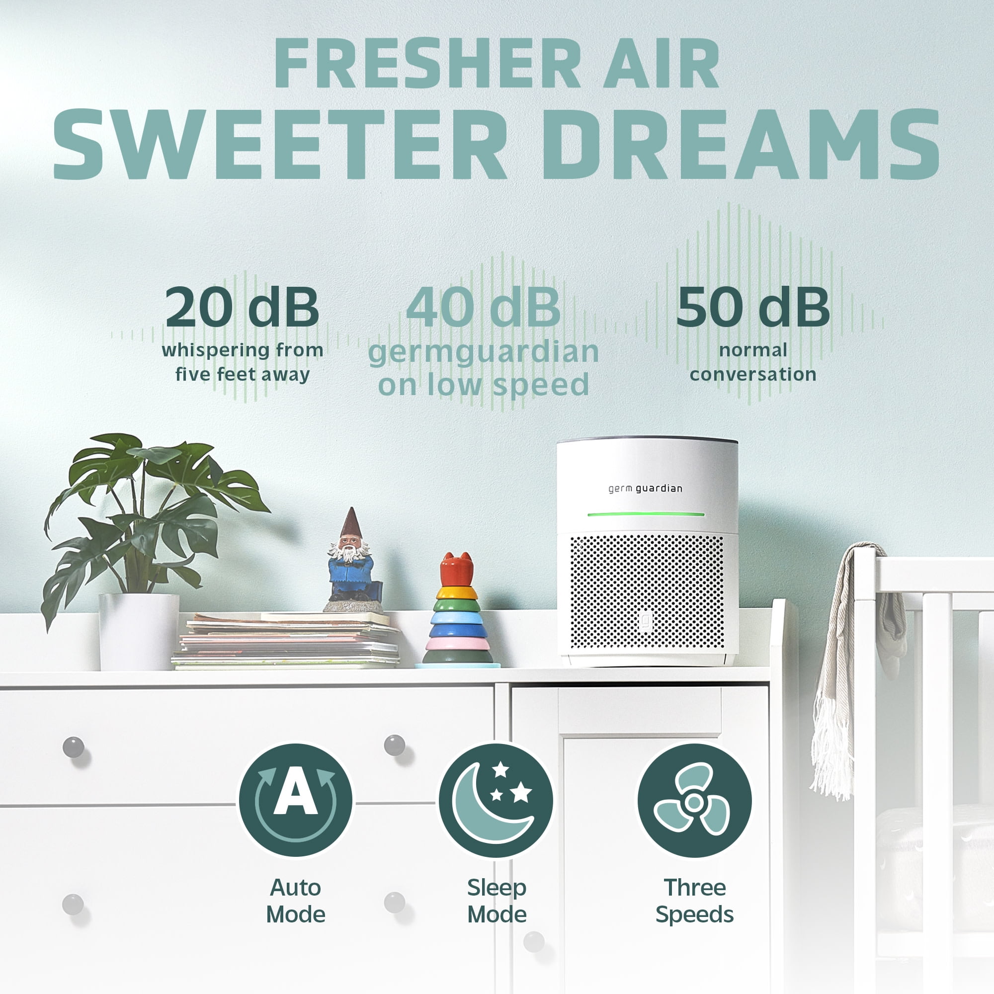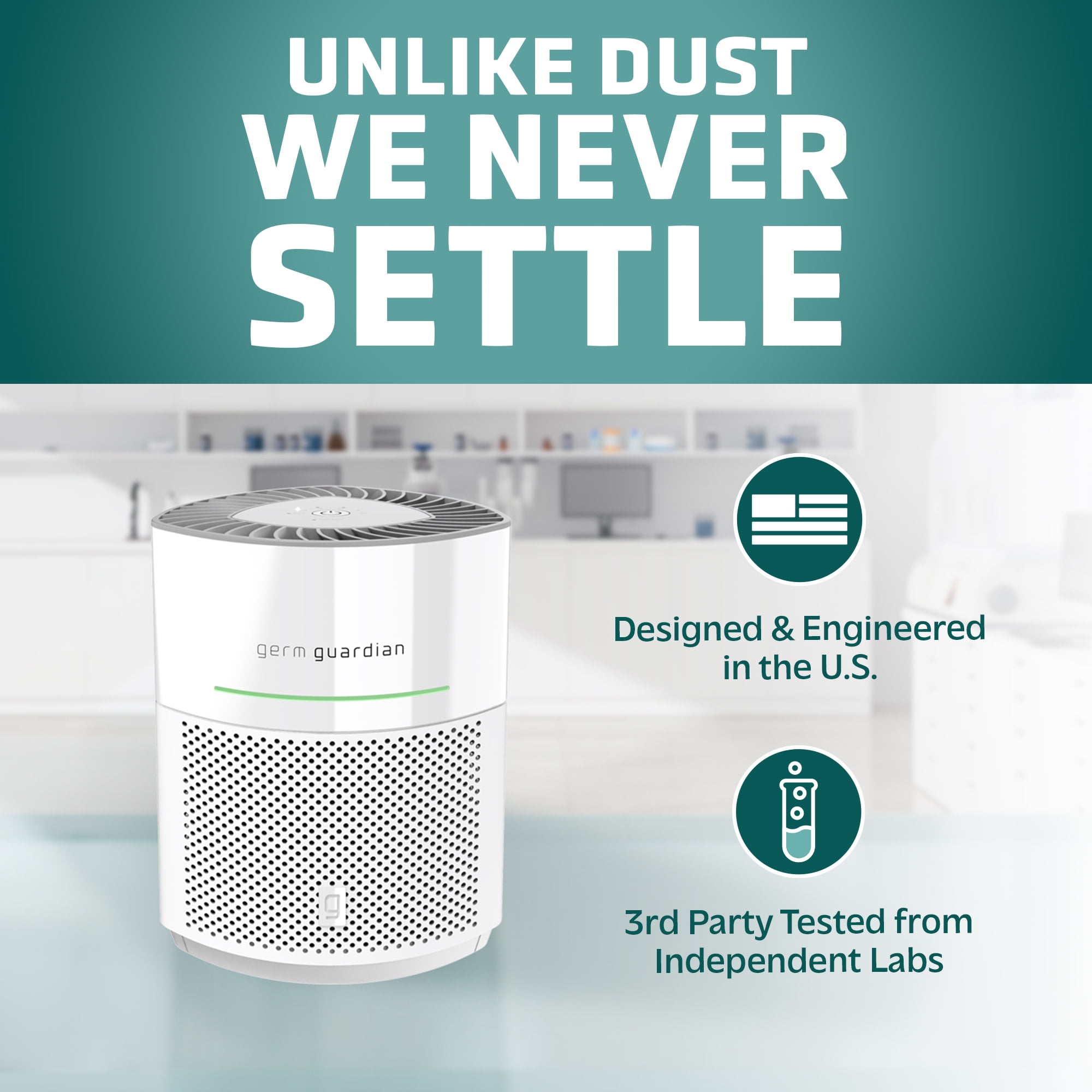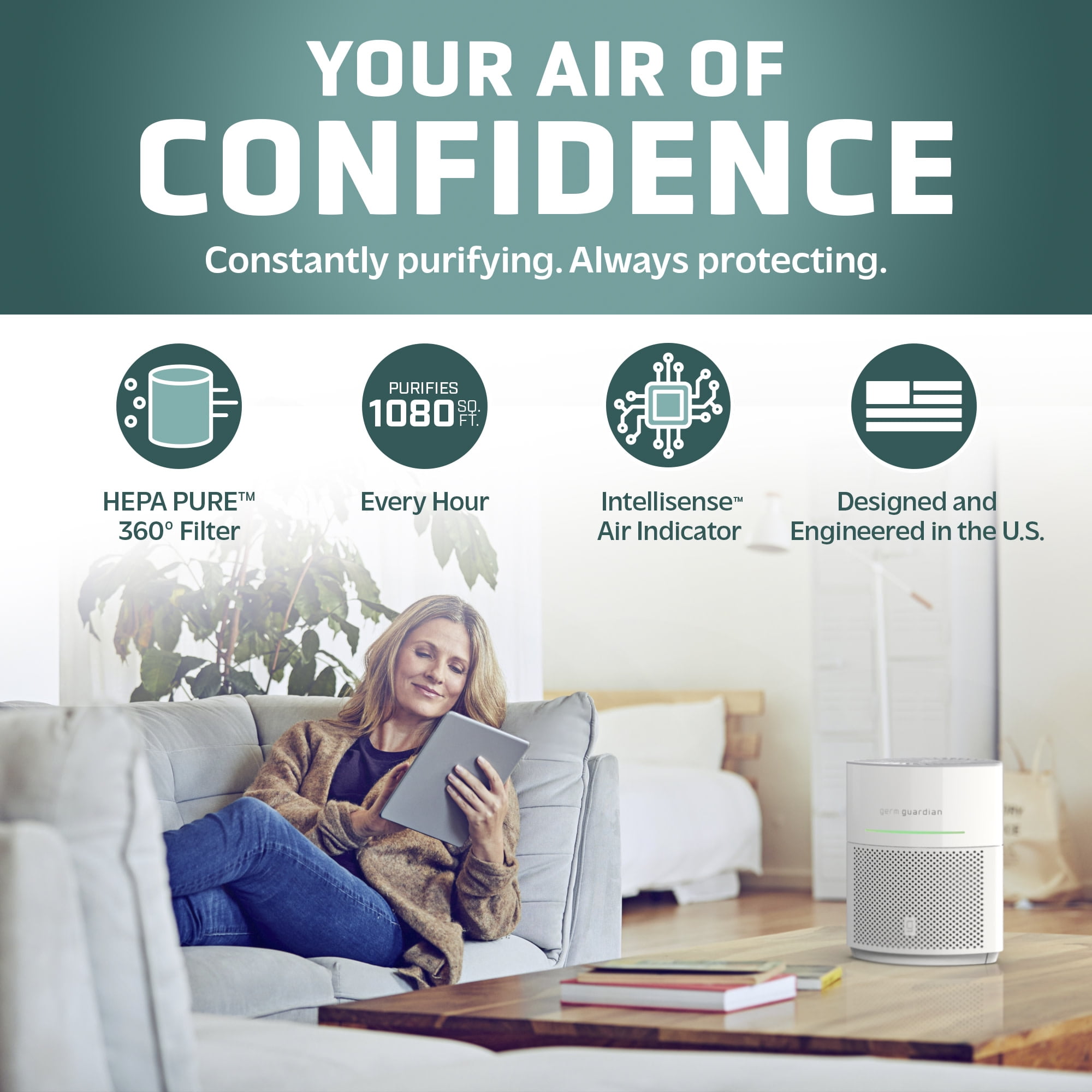 BREATHE FRESH AND CLEANER AIR The GermGuardian Air Safe air purifier help reduce germs and viruses, filter odors, and trap allergens with 3 layers of protection, containing a 360 Degree True HEPA filter to deliver crisp, refreshing air to your home. POWERFUL AND CUSTOMIZABLE Your at home comfort can be customized with 4 speed settings, ultra-quiet mode on the lowest speed setting. This air safe product features an Intellisense air quality indicator, measuring the air quality 60 times per minute. It automatically adjusts the speed when poor air is detected and can monitor the quality 24/7, always cleaning every second of the day. This air purifier circulates the air in a medium 226 sq. ft. room every 12.5 minutes or in a large 1000+ sq. ft. room every hour, making it ideal for rooms such as: bedrooms, offices, basements, and other open concept spaces. This air purifier is designed, engineered and independently tested in the United States and exceeds industry standards. WHY USE GENUINE GERMGUARDIAN REPLACEMENTS Your purifier is only as powerful and effective as the filter you put inside, and our Genuine GermGuardian replacement parts are essential for maintaining product performance. Each filter or bulb is designed specifically for a particular unit style. Not only will genuine replacement parts fit like a glove, but they also have the combination technology to match so that you can get the most out of your air purifier. This product earned the Energy Star label by meeting strict energy efficiency guidelines set by the U.S. EPA. WARRANTY GermGuardian gives you reassurance with a 5 year limited warranty in addition to your purchase.