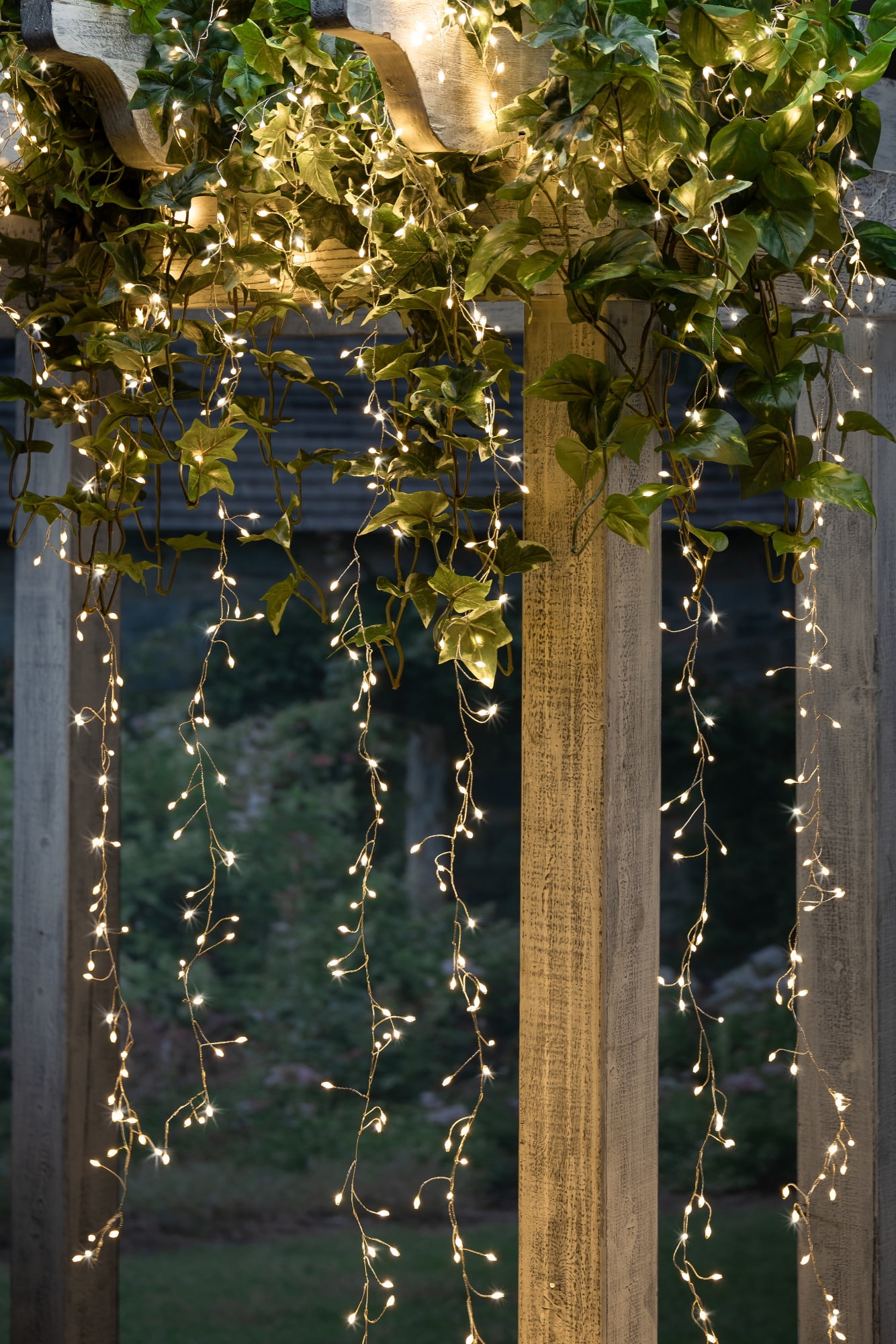 You will make a glowing light impression with this 6-ft long with 6 6-ft firecracker curtain drop lights. A total of 600 Light Multi-Function Electric Firecracker Curtain Light. 6 Drops, Each Drop 6ft long, each with 100 lights on a 6-ft silver wire with warm white/multi-color LED bulbs. Ten different settings. Includes convenient 6 hour timer and outdoor adapter, please be sure to plug into outlet that has GFCI.