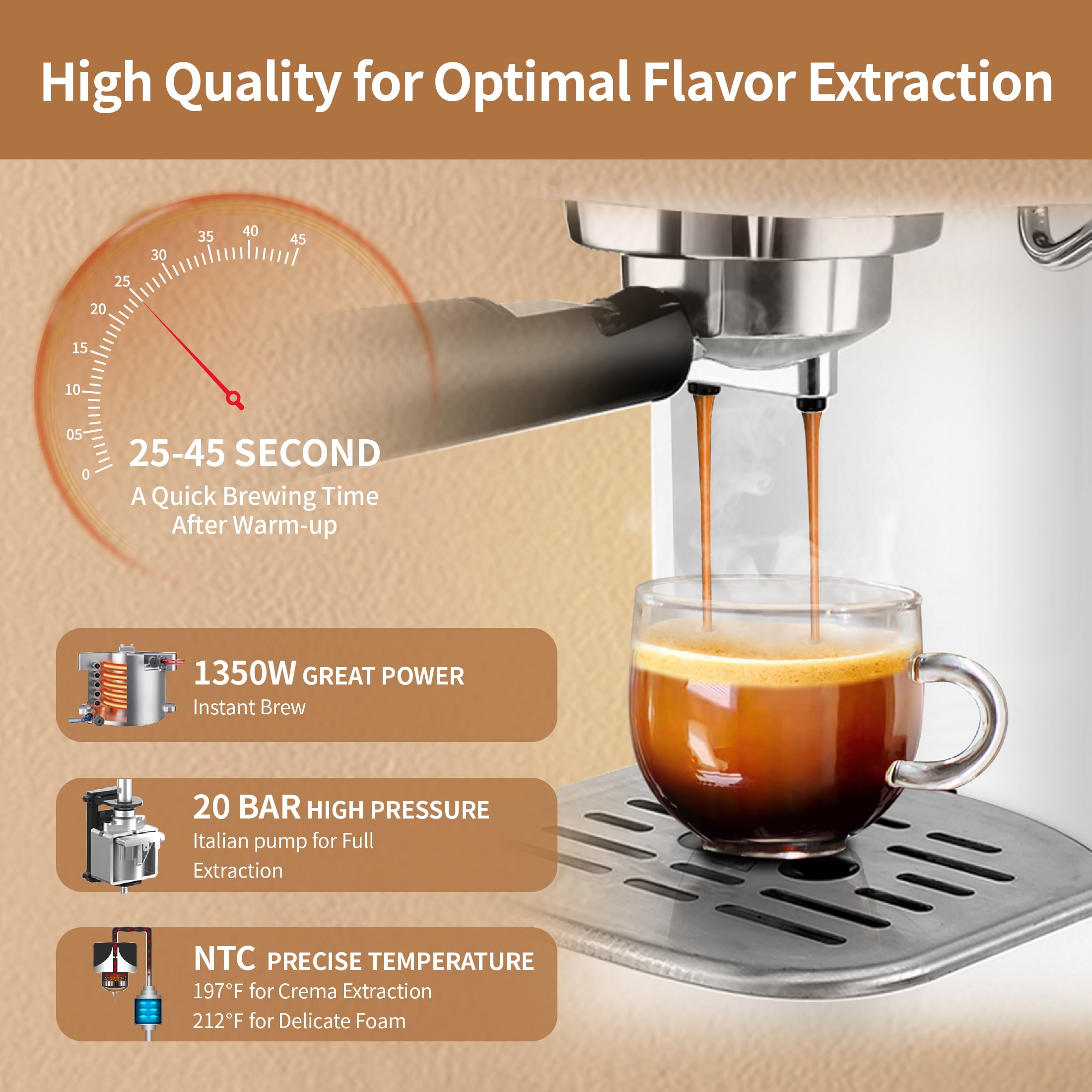 Gevi 20 Bar Espresso Machine, Coffee Maker with Milk Frother,White