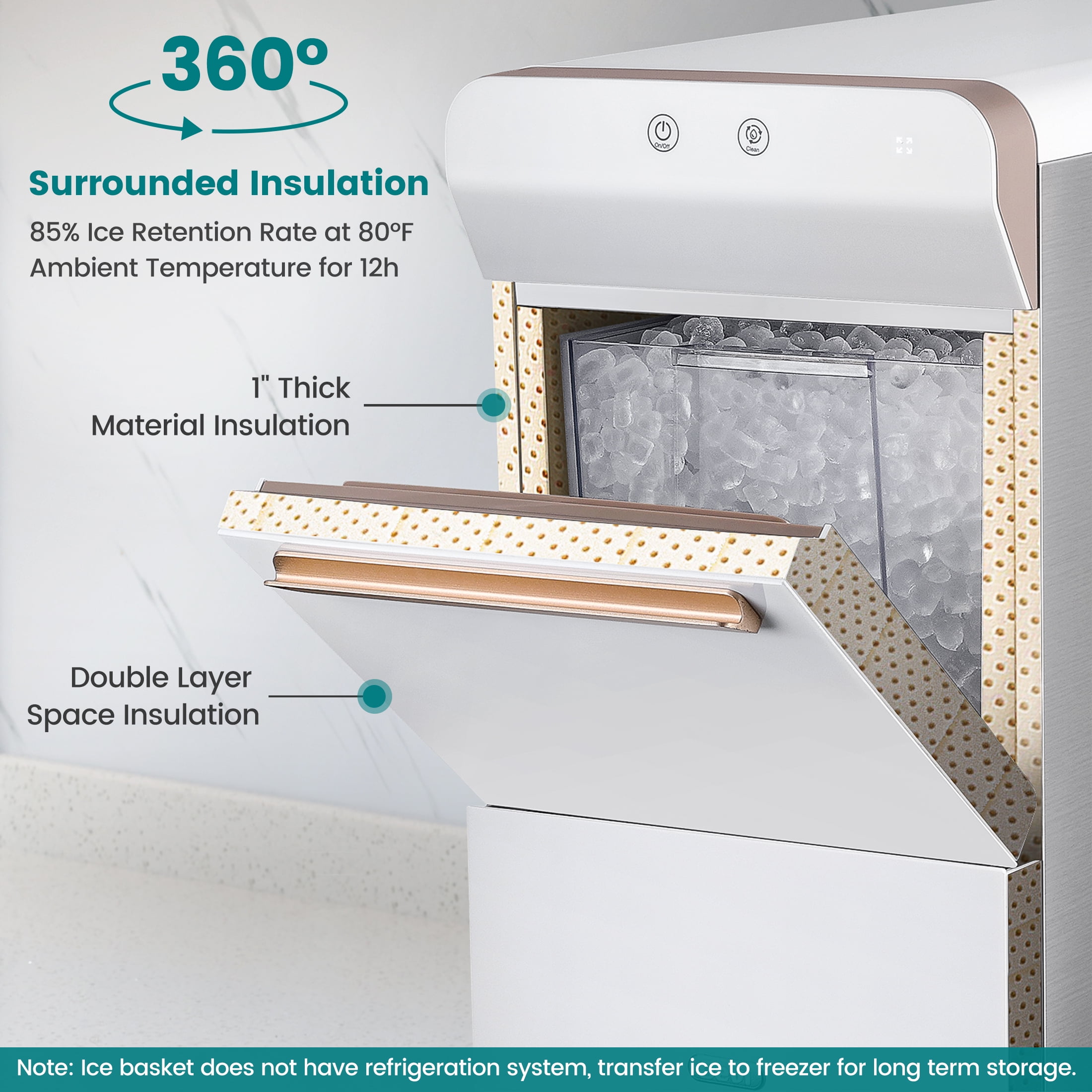 Enjoy the unique and refreshing taste of Gevi Nugget Ice, also known as Pellet or Chewable ice, right in your own kitchen. This specialty ice is designed to enhance the flavor of your beverages and offer a delightful chewable texture. Gevi’s ice maker is capable of producing up to 30 pounds of ice per day, ensuring you always have a steady supply of this delightful ice. The generous 4.8-pound ice basket and 2.8-liter (3-quart) water reservoir, combined with extra-thick insulation and an auto ice refill, make this a high-capacity and convenient ice maker. The sleek and modern stainless steel exterior, complete with a touch control panel, seamlessly integrates into any kitchen. At a height of 16.28 inches, this ice maker fits perfectly under wall cabinets, providing a streamlined and space-saving design. Engineered with a high-performance compressor, a muted exhaust fan, and high-precision ice-making components, the Gevi ice maker operates with low noise, ensuring a quiet kitchen environment. Gevi is committed to your satisfaction, offering a 12-month warranty and lifetime technical support. Should you encounter any issues with your Gevi ice maker, the customer service team is always ready to assist you.