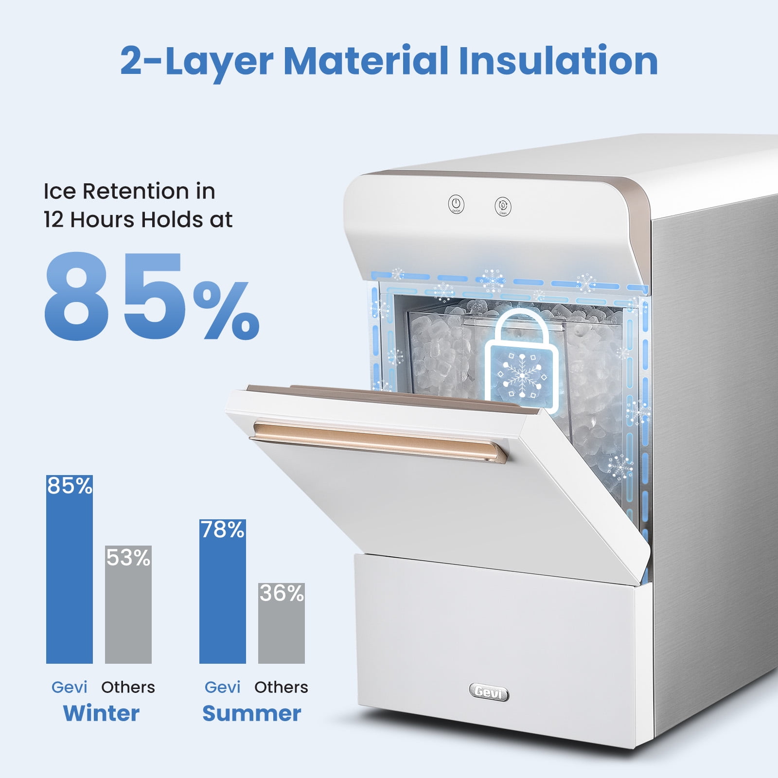Gevi V2.0 Countertop Nugget Ice Maker | Self-Cleaning Pellet Machine | Easy Open & Pour Water Refill | Stainless Steel Housing | Fits Under Wall Cabinet | White