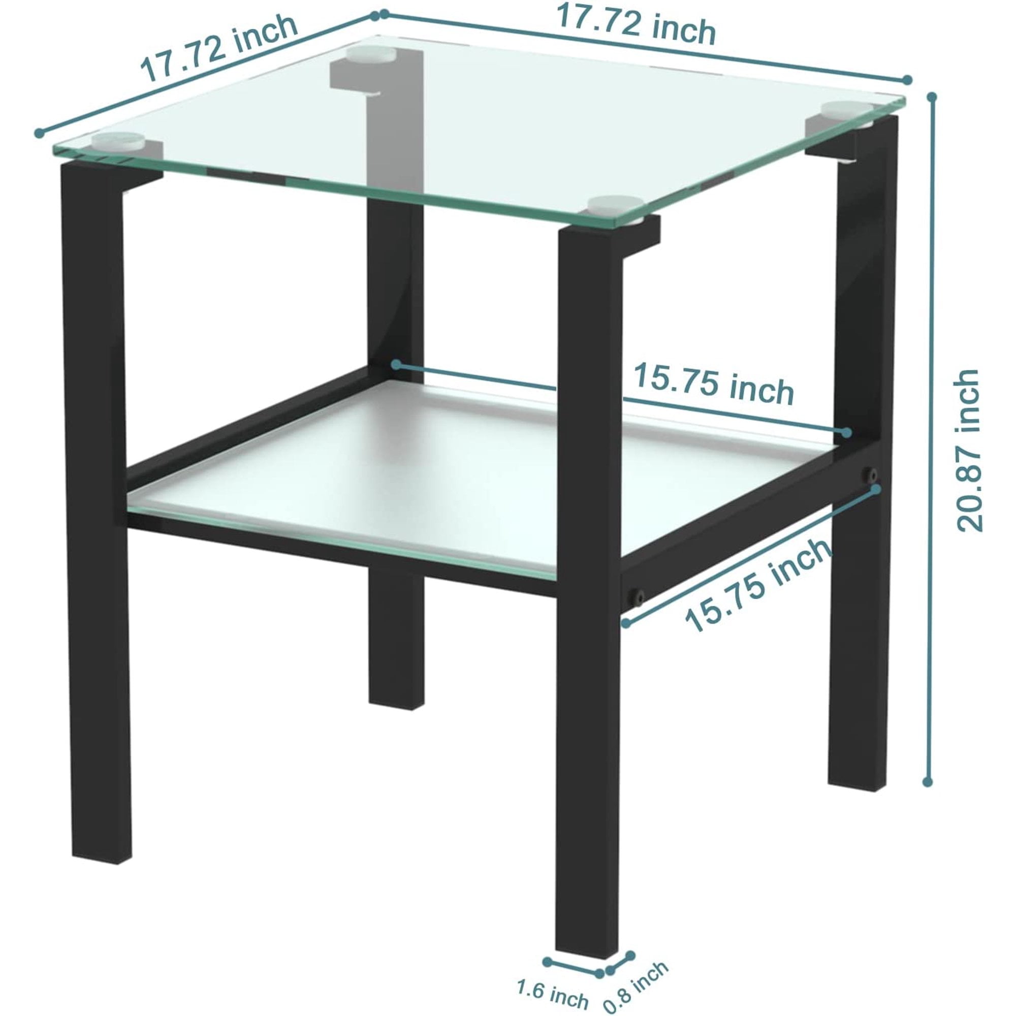Tempered Glass : The thickness of top glass is 8mm, the second layer is 5mm. Tempered glass is high temperature resistant, not easy to break, very durable. Super load bearing capacity: 100lbs. 2- Layer Storage : Side table are designed double layer structure, the upper layer can be placed daily items, the lower layer can be placed books and magazines and other uncommon sundry. Easy to Clean : Glass is naturally not stained, discolored, or rotted, glass coffee table set is easier to clean than wooden one. The transparent table top also makes it easier to see, provide the convenience of finding items. Widly Used : Suitable for dining room, office, living room, bedroom, suitable for small space, especially sofa side. Easy to assembly : Installation instructions and fittings tools are included. Suitable for small space, especially sofa side, living room, bedroom, reception room and so on.