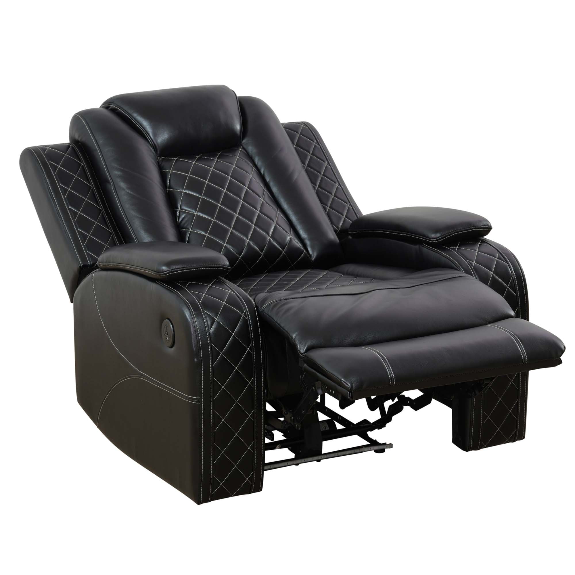 【Manual Recliner】Experience the ultimate relaxation with this manual recliner chair. Effortlessly adjust the backrest and footrest to find your perfect reclining position and unwind in comfort. 【High-Quality Material】Crafted from top-tier faux leather, this recliner chair combines sophistication with easy maintenance. Its robust metal frame ensures stability and durability, while the premium cushioning delivers a plush and comfortable seating experience. 【Arm Storage&USB Port】Equipped with dual side hidden arm storage, you can conveniently store your remote control or magazines.With a built-in USB port, you can conveniently charge your low-power devices such as smartphones and tablets while sitting or reclining. 【LED Light Strip】Enhance the ambiance of your home theater with the built-in LED light strip. Create a captivating atmosphere and set the mood for a cinematic experience, making every movie night memorable. 【Enjoy Your Time】As you unwind and enjoy your favorite entertainment from the comfort of your own home. Immerse yourself in the world of your favorite characters and lose yourself in captivating storylines, all while indulging in luxurious comfort. SPECIFICATION: Overall: 38.5” L x 37.5” W x 41” H Back Height – Seat to Top of Back: 24”H Seat Depth – Front to Back: 21.5″ Seat Height – Floor to Seat: 19.5″ Overall Product Weight: 103.5 lb Arm Height – Floor to Arm: 23.5” Reclining Type: Manual Color For Choice: Black,Brown Upholstery Material: Faux Leather Seat Construction: Foam+ Spring Pocket Position Type: Infinite Positions (between 110°-160°) PACKAGE INFORMATION: 1 x Manual Recliner Chair; 1 x User Manual.