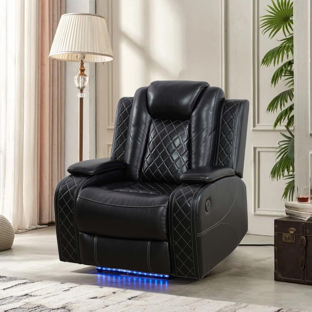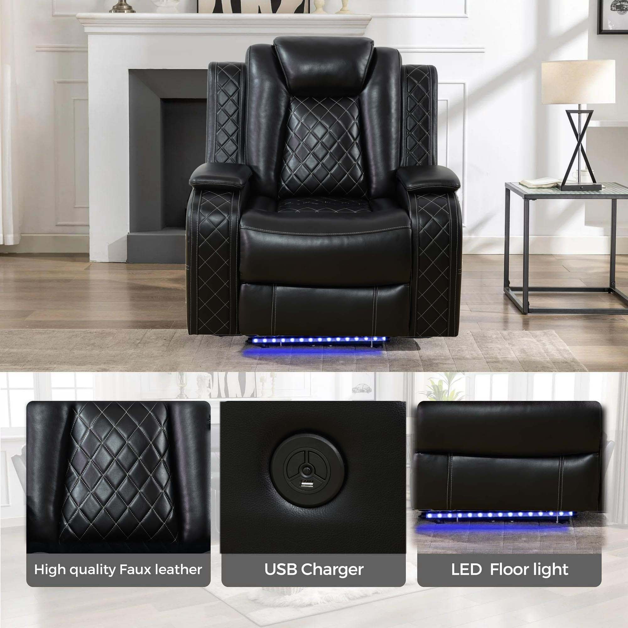 Gewnee Power Recliner Chair with USB Ports and LED Lights,Home Theater Seating with Hidden Arm Storage,Black