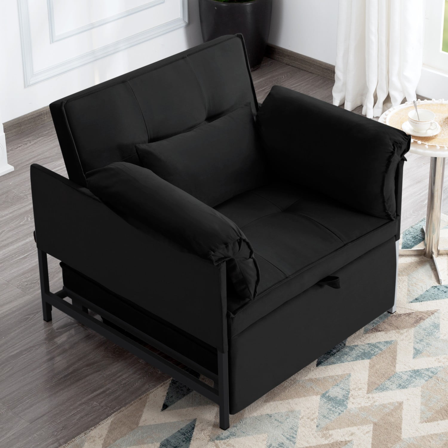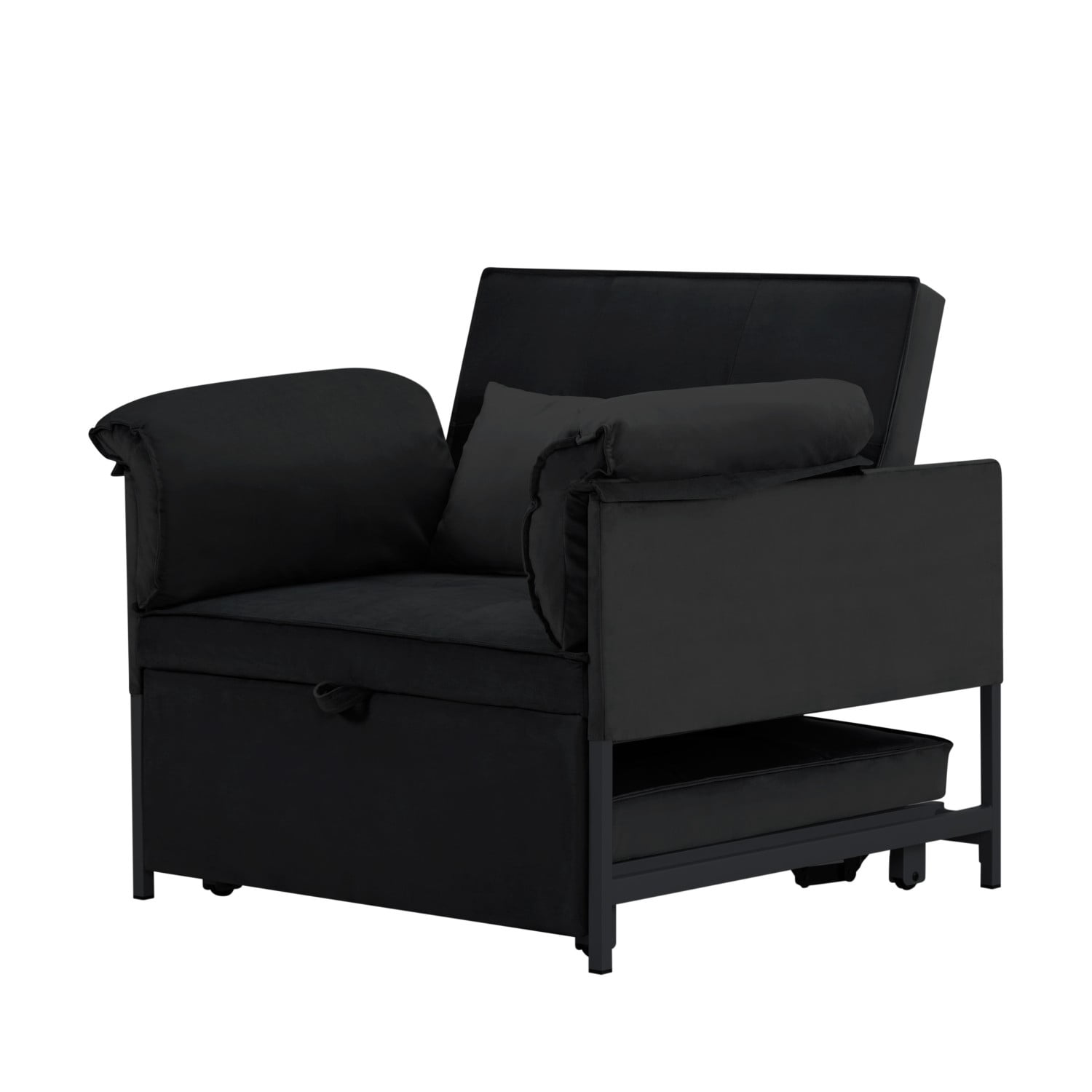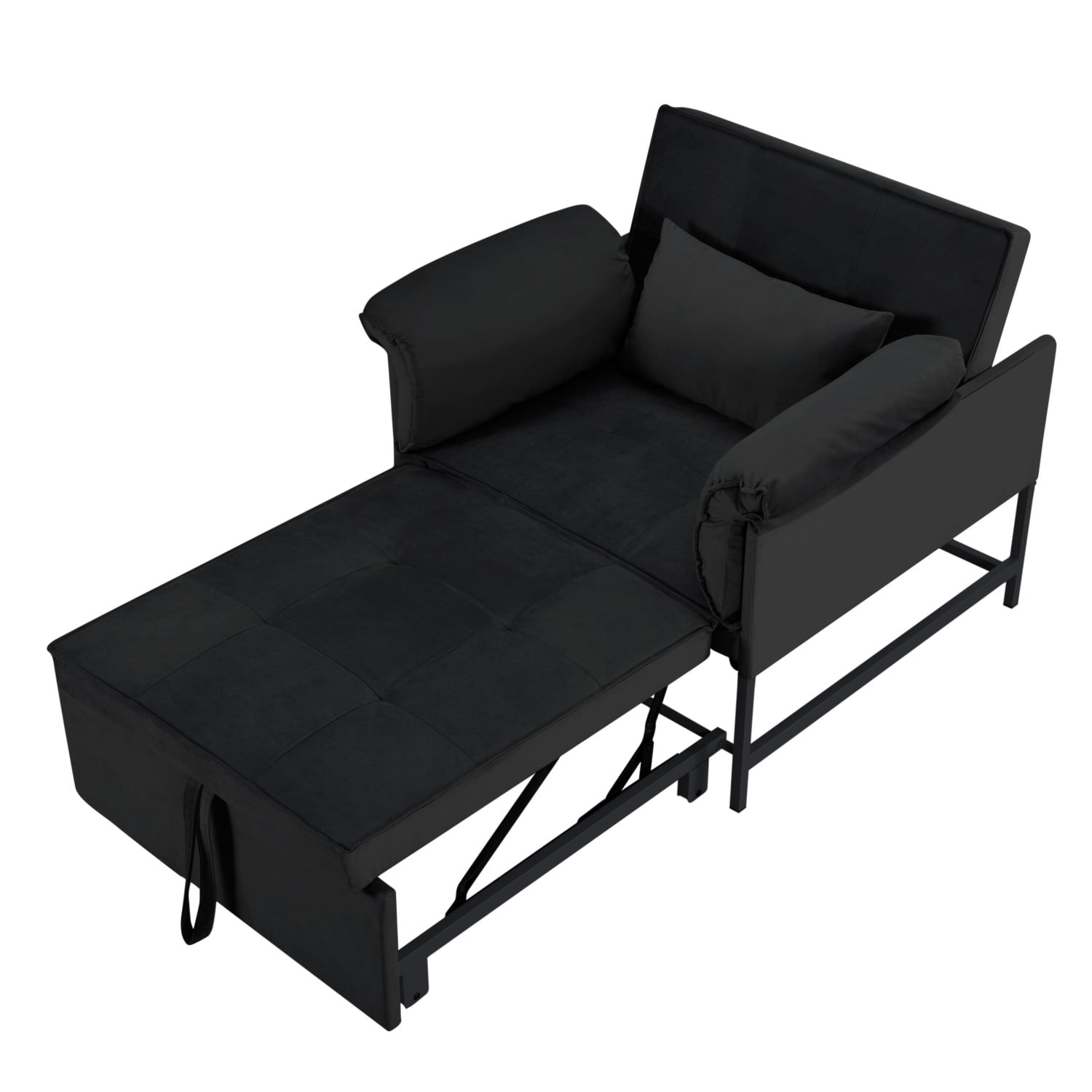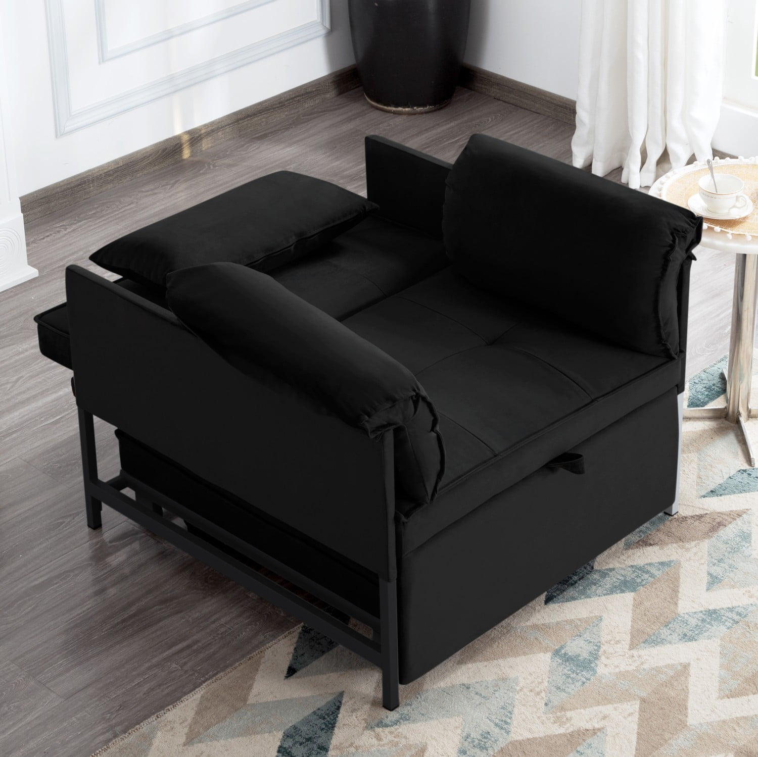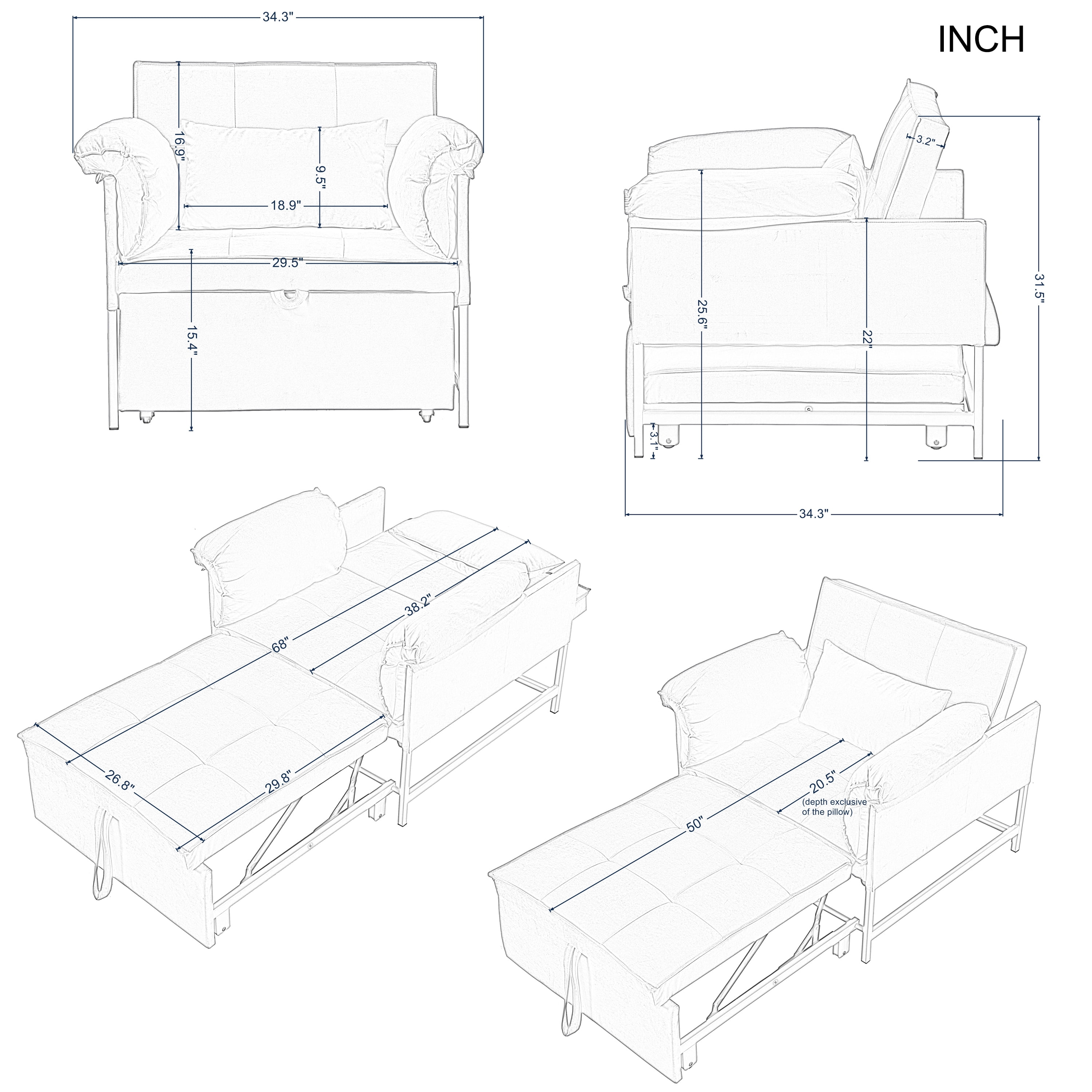 – 34.3” Convertible Pull-out Sleeper Chair, can be easily converted into a twin size bed by pulling out straps on the edge of the sofa, it’s perfect for accommodating overnight guests. – Upholstered with velvet fabric, providing a soft and comfortable seating experience. 1 pillow included. – The back can be reclined in 3 angles, allowing you to find the perfect angle for sitting, reading ,watching TV or lounging. And converted into a sleeping bed in few seconds, it is an excellent option for your home, office, and guest room. Also perfect for small spaces. Movable arm cushion. – Vacuum packing. Please press and pat the cushions after opening the package, wait to rebound after 72 hours at least for your perfect use.