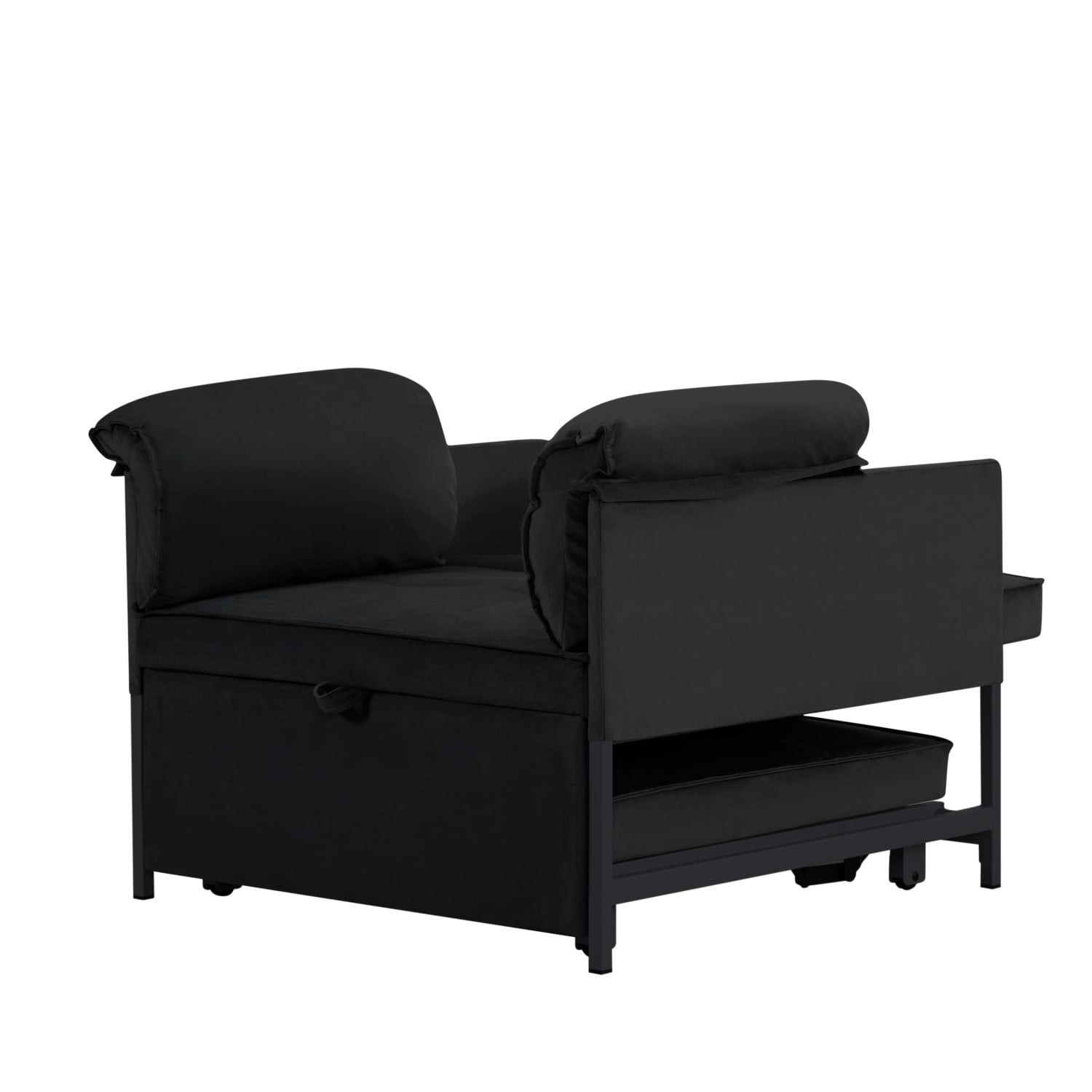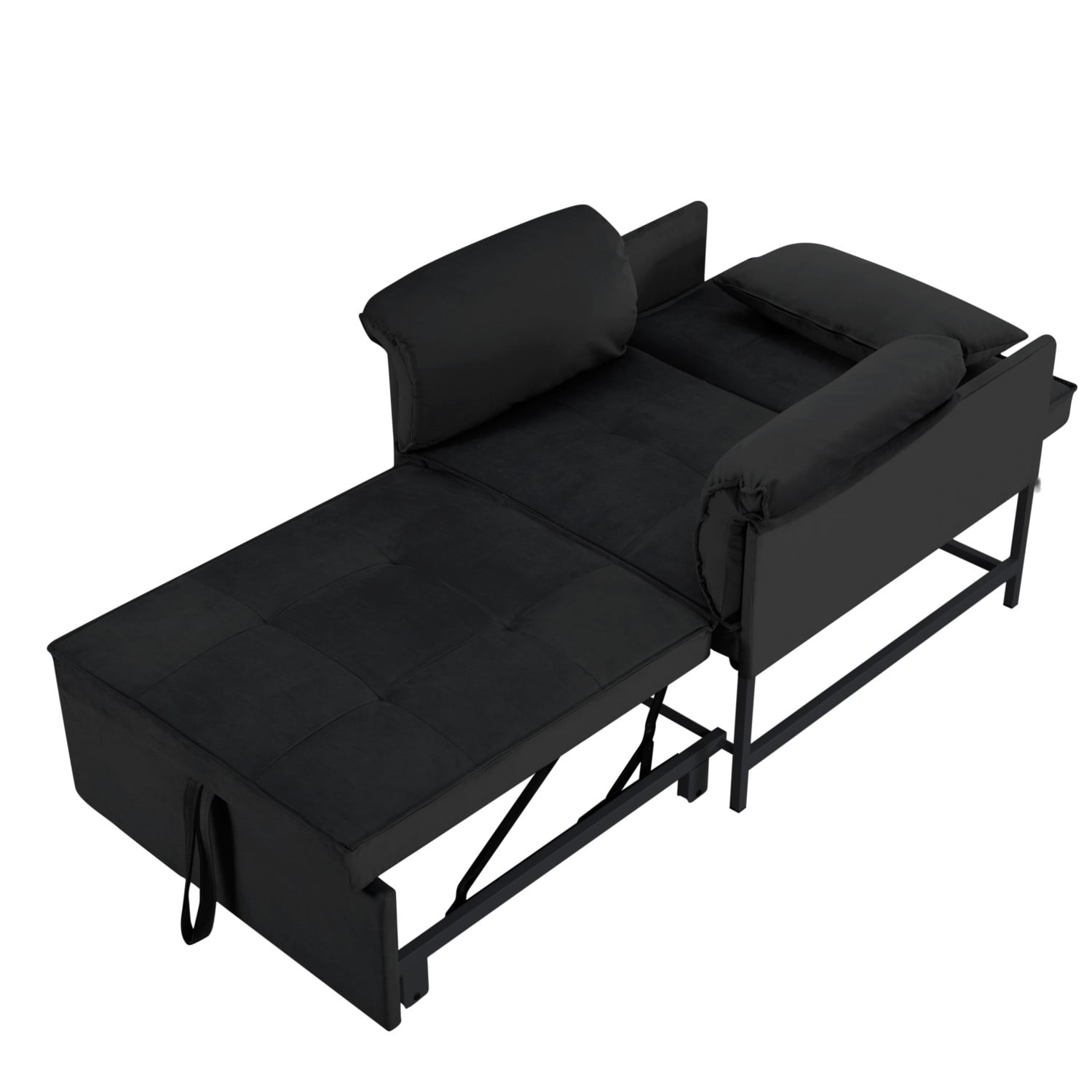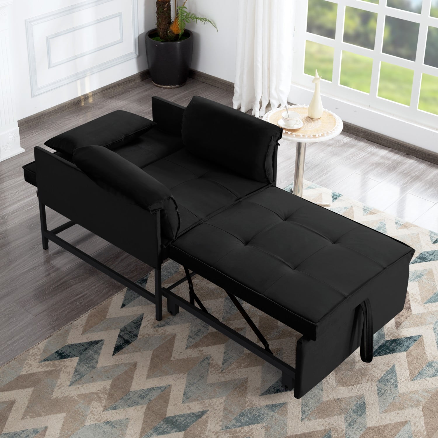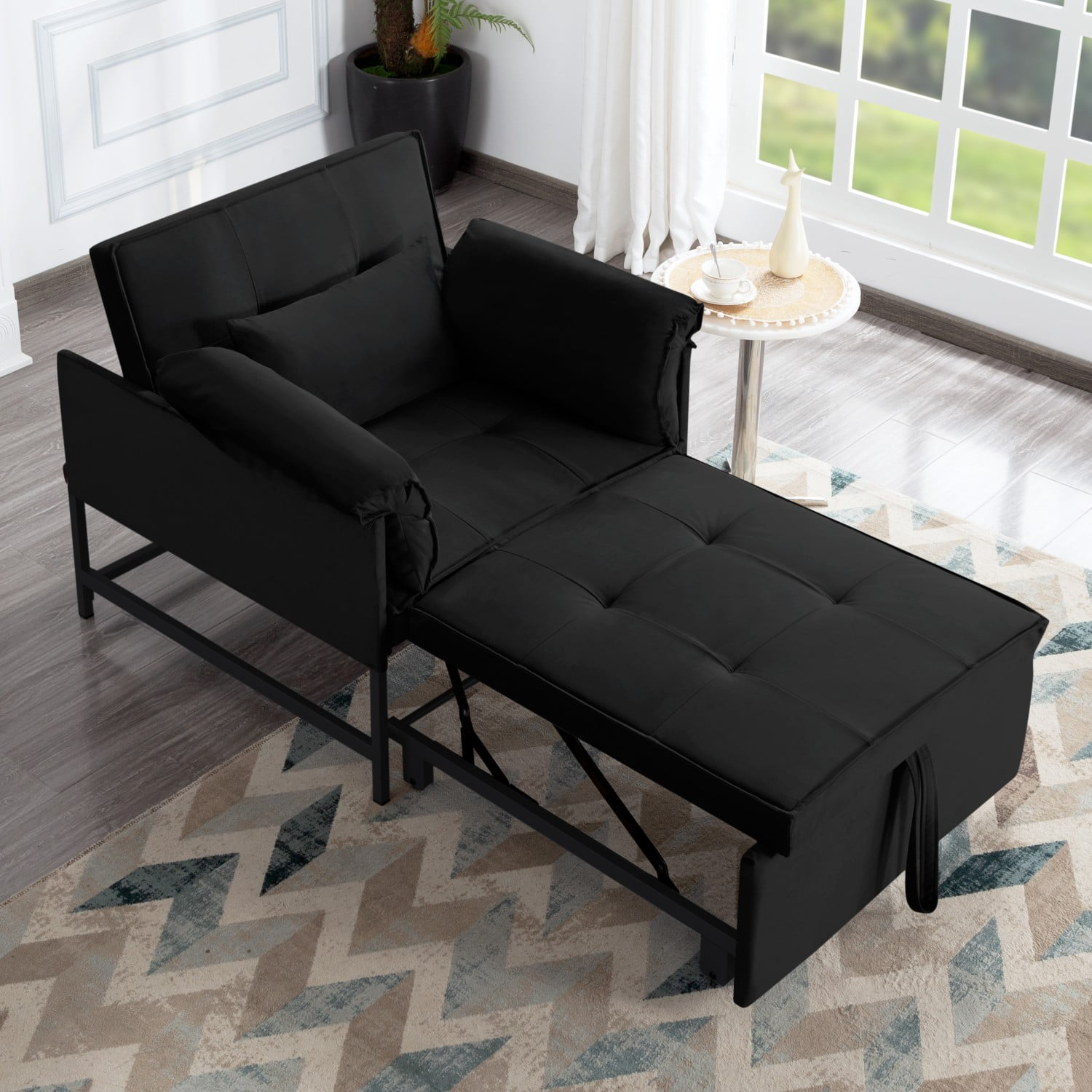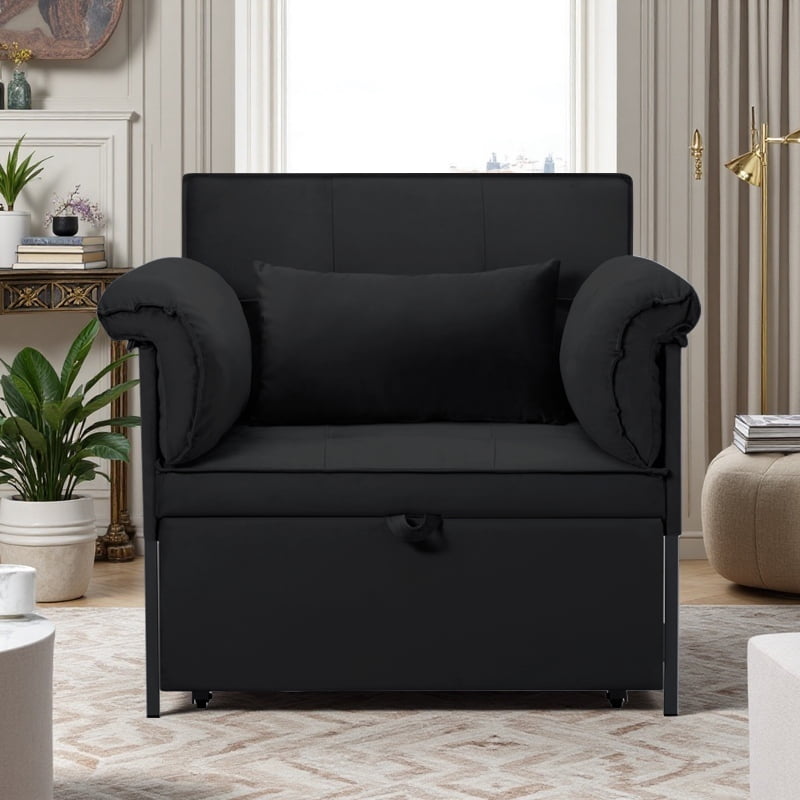 – 34.3” Convertible Pull-out Sleeper Chair, can be easily converted into a twin size bed by pulling out straps on the edge of the sofa, it’s perfect for accommodating overnight guests. – Upholstered with velvet fabric, providing a soft and comfortable seating experience. 1 pillow included. – The back can be reclined in 3 angles, allowing you to find the perfect angle for sitting, reading ,watching TV or lounging. And converted into a sleeping bed in few seconds, it is an excellent option for your home, office, and guest room. Also perfect for small spaces. Movable arm cushion. – Vacuum packing. Please press and pat the cushions after opening the package, wait to rebound after 72 hours at least for your perfect use.