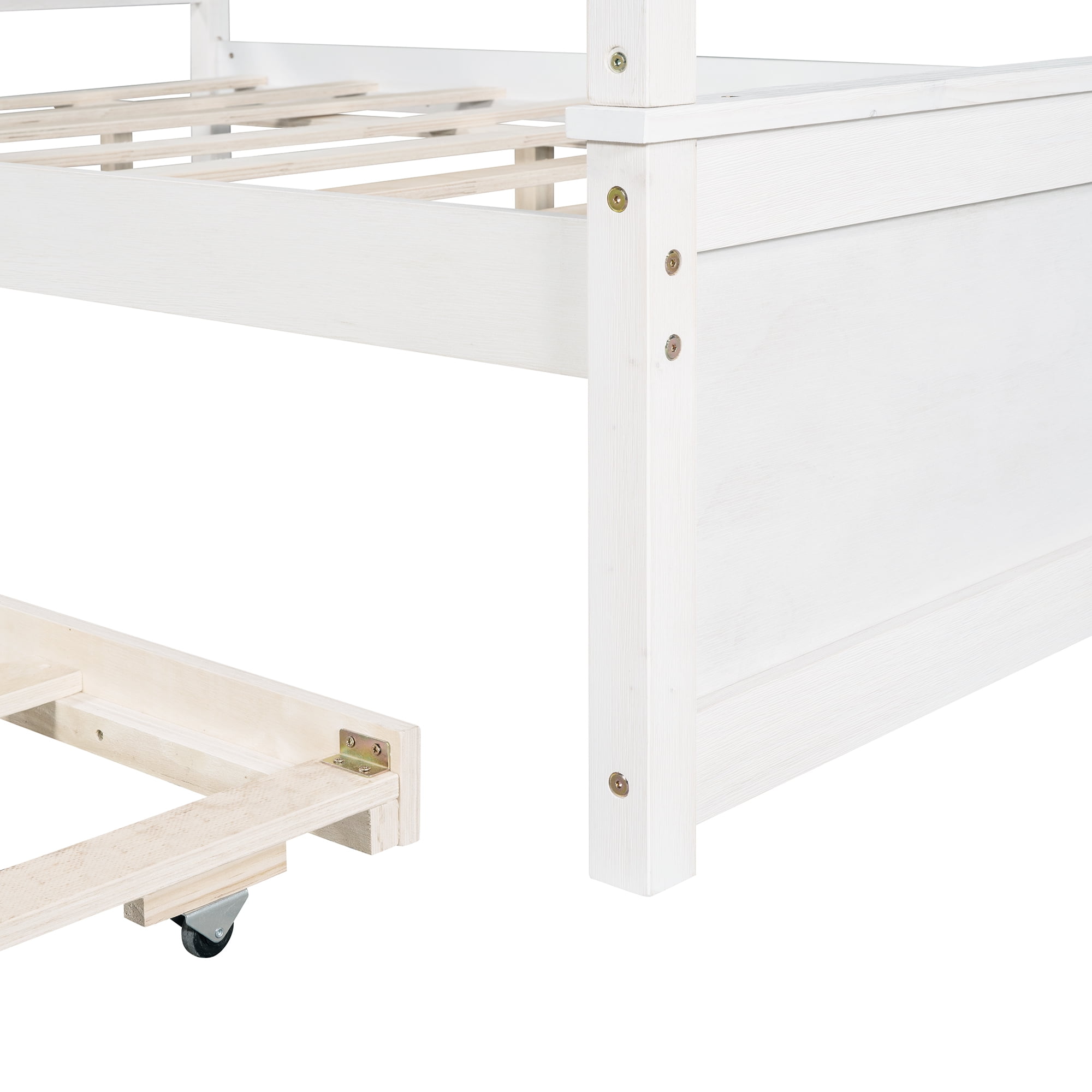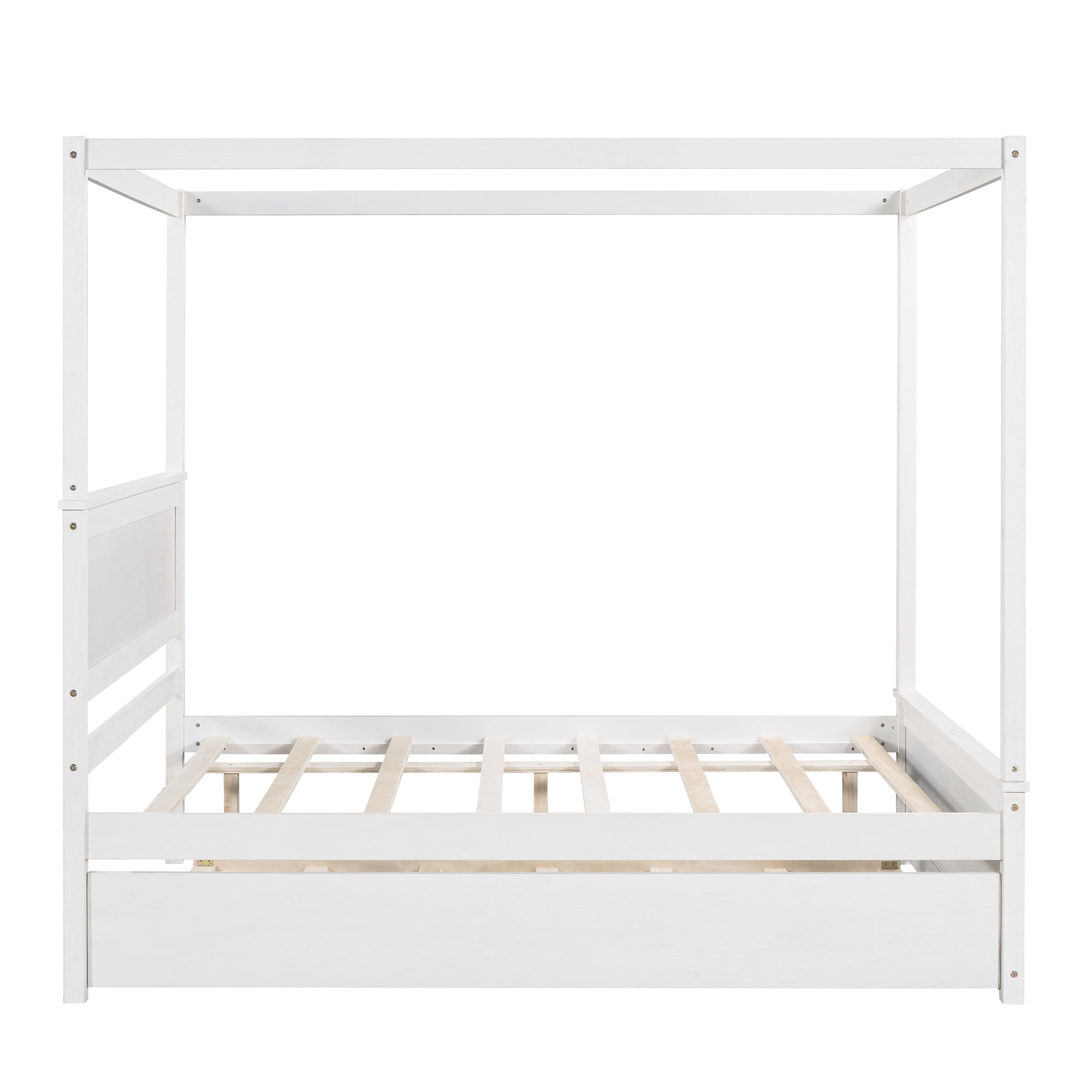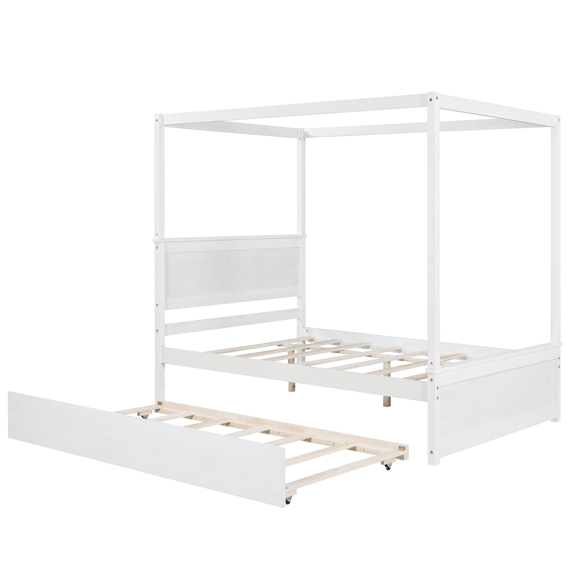 Gewnee Wood Canopy Bed ,Full Size Platform Bed Frame with Trundle and Headboard,White