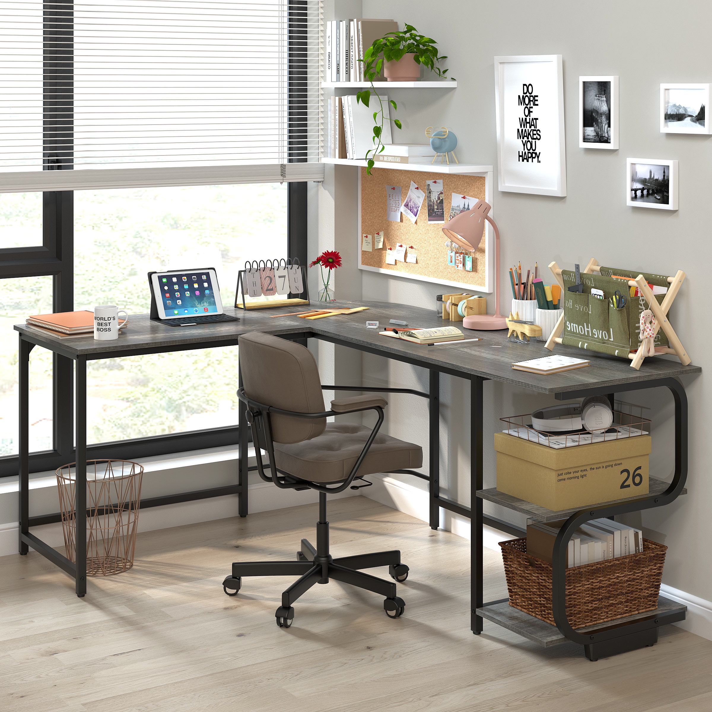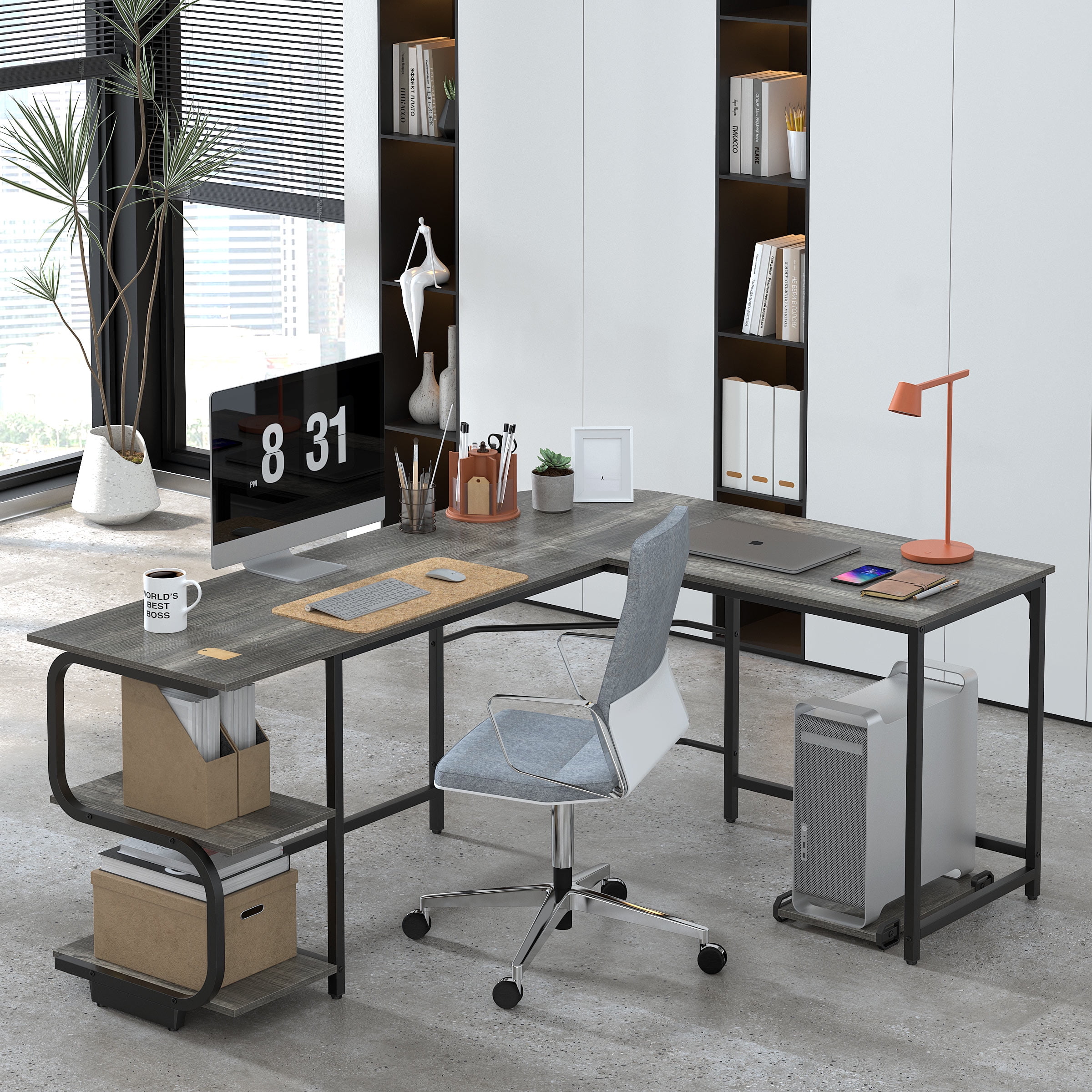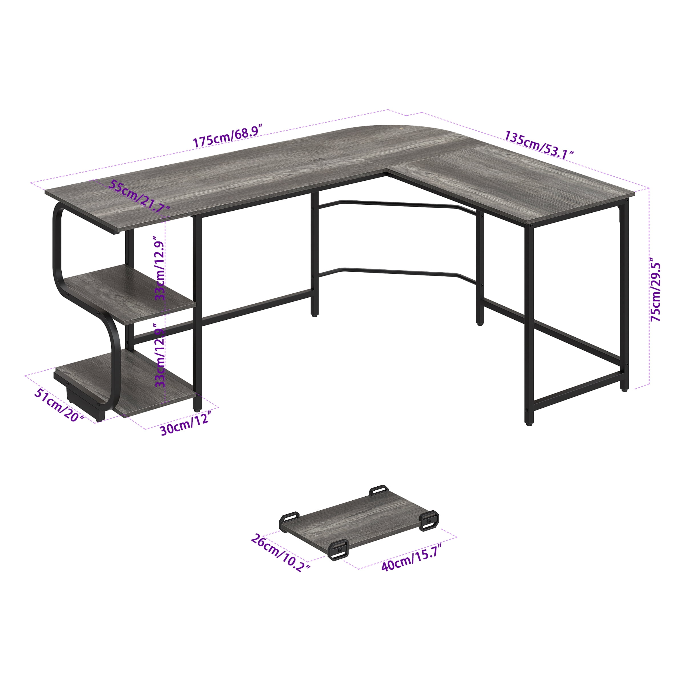 L Shaped Computer Desk is a perfect working partner which provides you with multi-functions and a wide freedom desktop, saving your room space. To create a great working atmosphere, we design the desk in a modern style, making it simple but elegant. Modern L shape design is suitable for corners which will save your room. It’s a waterproof particle wood board that is durable and sturdy. A durable and stable metal frame will provide super stability. Extra 2 tiers storage shelves to expand your available space. This desk is a perfect choice for Home & Office activities, computer working, writing, gaming and study.