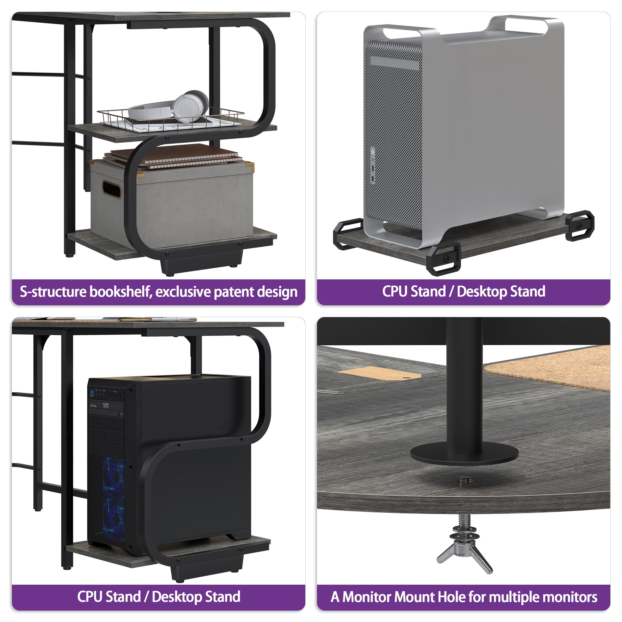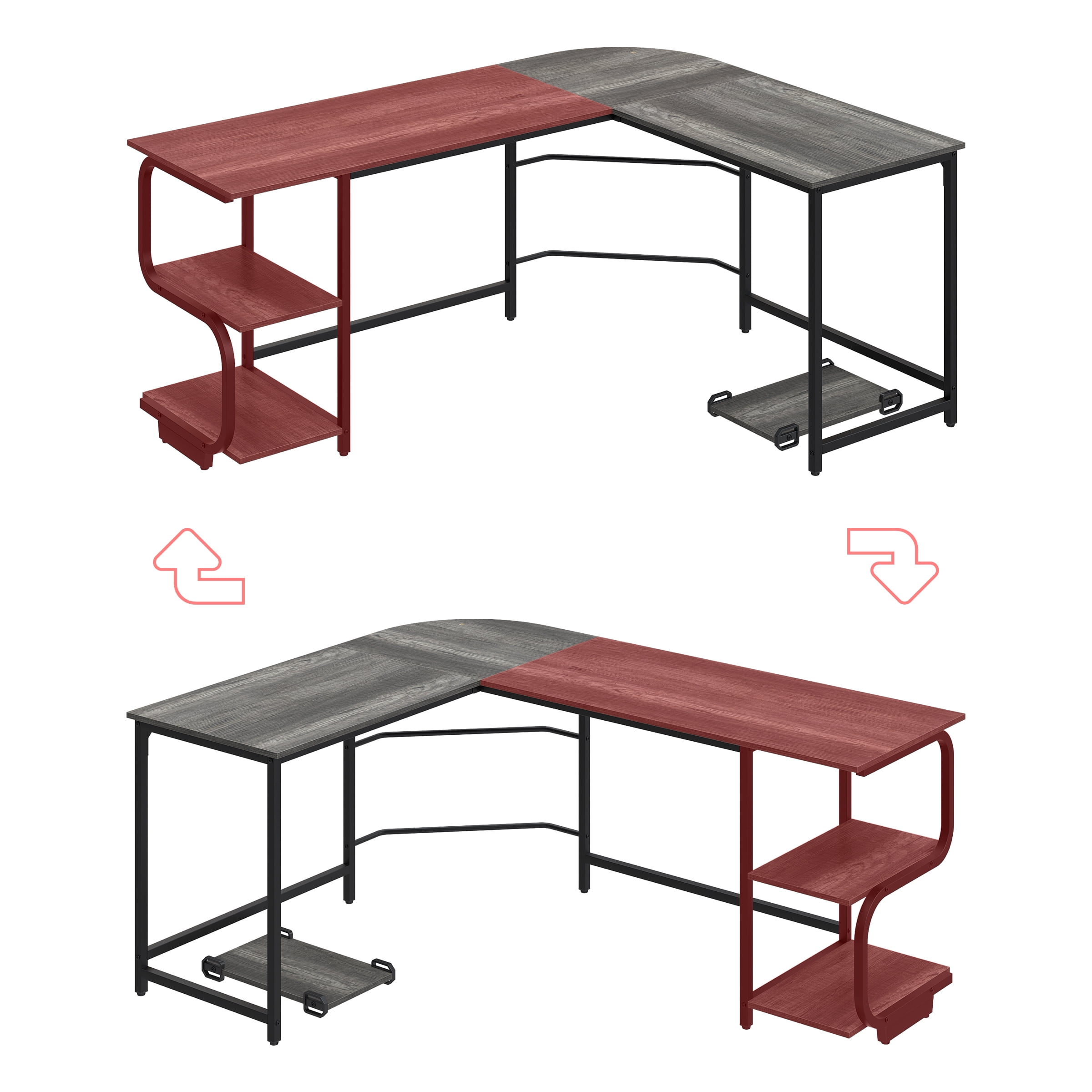 GEZEN Reversible Panel L-Shaped Wood Computer Desk PC Steel Corner Table Workstation with S-Shaped Bookshelves Home Office