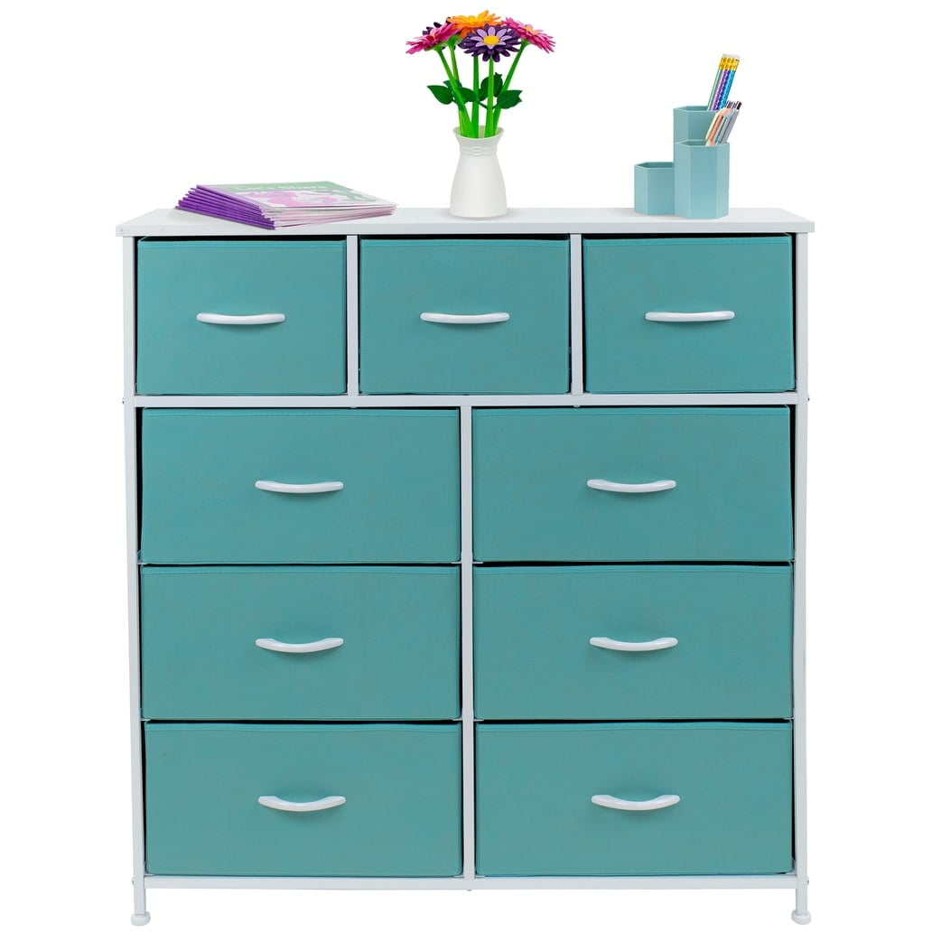 9-drawer dresser with built-in wood handles Lightweight and easy to assemble with included hardware and instructions Non-woven fabric drawers for storing various items
