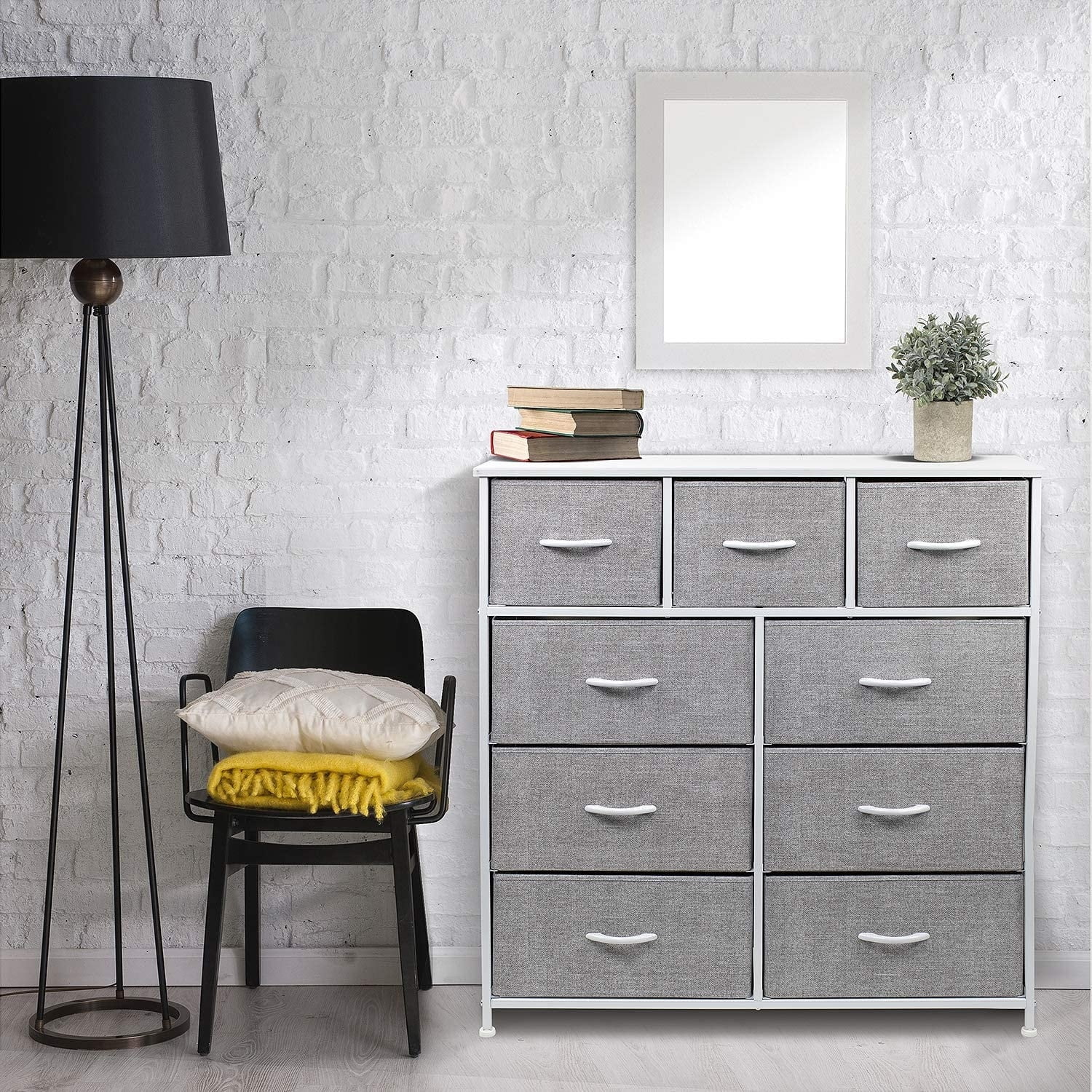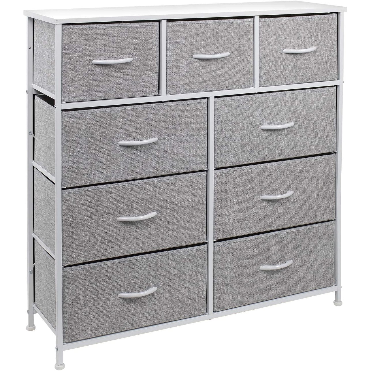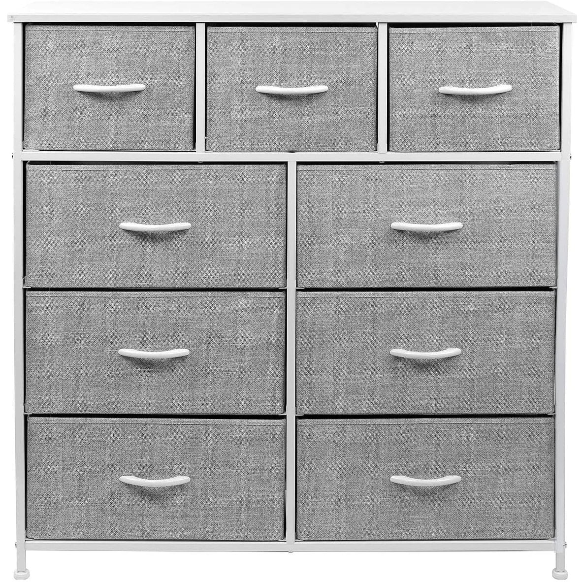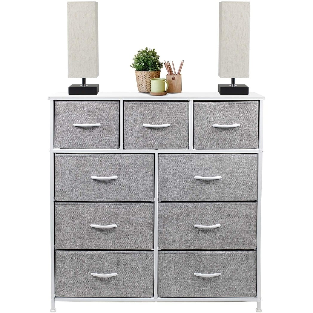 Give your household essentials a cozy landing spot with the Sorbus 9-Drawer Dresser. This beautiful dresser chest features a tabletop surface and pull-out drawers to tuck away household clutter. The thoughtful design is great for small living spaces and works equally well near the bed or sofa. Organization enthusiasts will enjoy filling each drawer with clothing, linens, and knick-knicks from around the home. The lightweight frame makes this unit easy to transport and when not in use, simply fold the fabric drawers flat for storage. Use alone as a single unit or pair with any drawer configuration from the Sorbus Furniture Collection. Versatile storage for any room. Add this charming dresser to your master suite or guest room for blankets and towels while displaying fresh flowers and photo frames on the tabletop. Place in any walk-in closet to organize your already stylish wardrobe and accessories. In the nursery, this dresser keeps baby products, toys, and story books organized and within reach. The possibilities are endless! Easy set up with minimal assembly. This unique storage solution is easy to set-up with minimal assembly required. Showcasing a streamlined design, this nine-drawer dresser chest stand is portable, lightweight, and easy to assemble. Hardware and instructions INCLUDED. Each drawer includes a wood carry handle and made of breathable, non-woven fabric for soft-closing storage. Frame made of steel. Tabletop surface made of MDF wood with smooth finish. Wipe clean. Suits most home décor. Available in different drawer and color options. Measures approximately 39.5” L x 11.5” W x 39.5” H