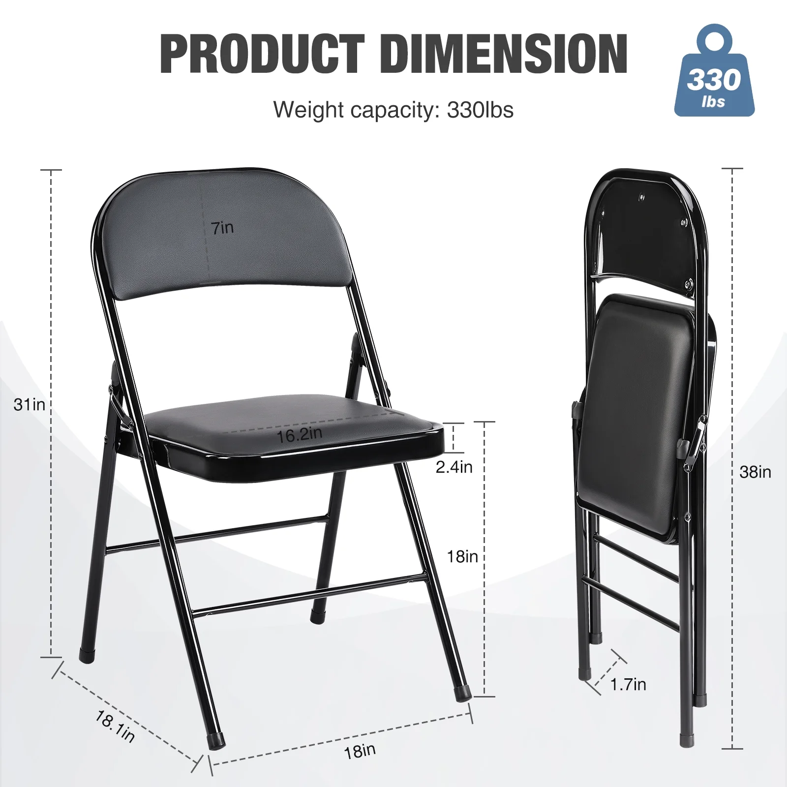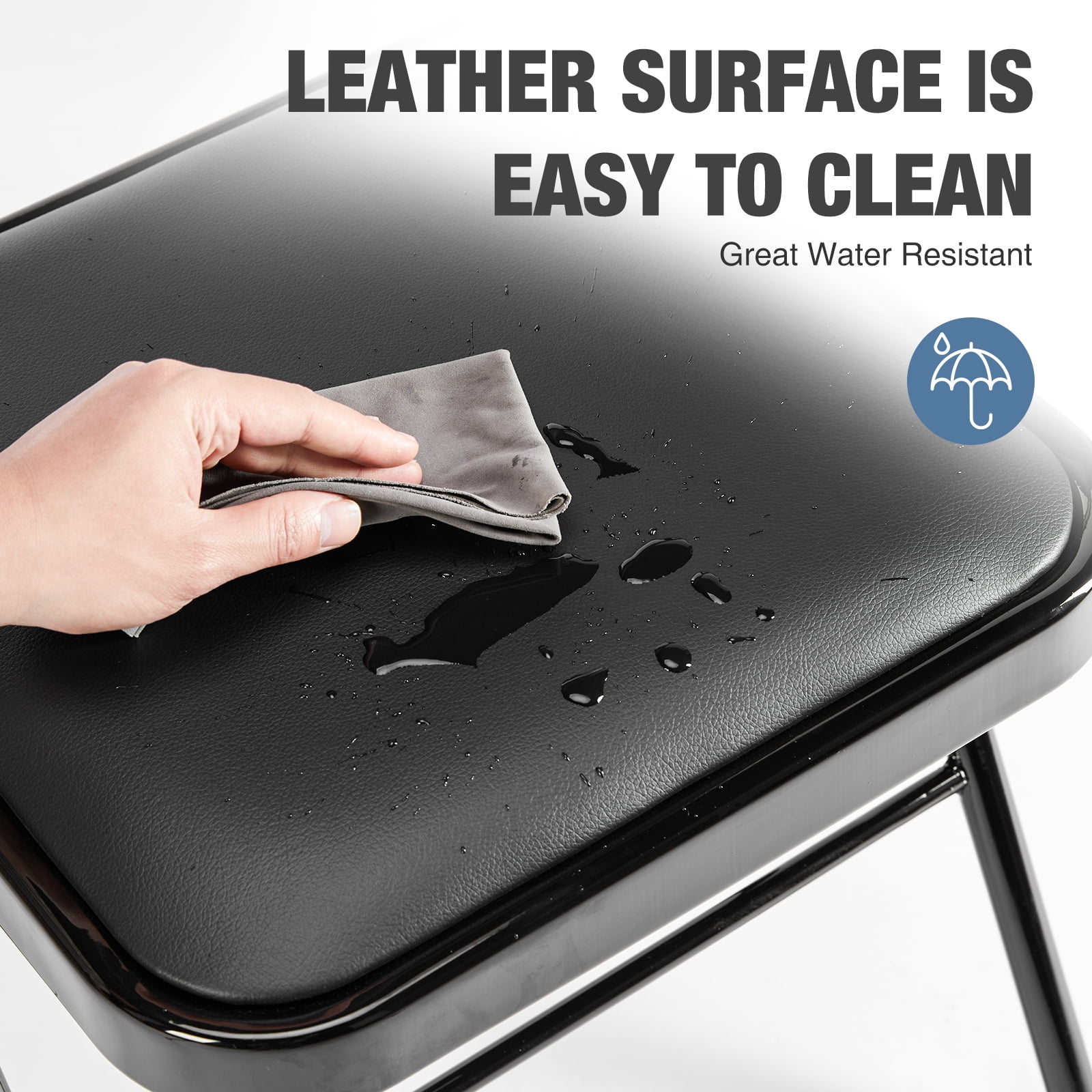 [SUPERIOR COMFORT]: The backrest and seat cushion of this folding chair are generously padded with high-density foam, ensuring excellent comfort for you or your guests. [PORTABLE AND SPACE-SAVING]: Weighing only 8.3 pounds, this outdoor folding chair is lightweight and easy to move around. It can be effortlessly folded up when not in use, allowing you to save valuable space. Its practical design makes it perfect for large outdoor and indoor parties, as well as other events. [VERSATILE USAGE]: This folding chair is a versatile piece of furniture that can be used in both indoor and outdoor settings for a variety of occasions, including family gatherings, picnics, camping, and more. [STABLE & DURABLE]: The folding chair boasts a sturdy structure and is crafted from high-quality materials, ensuring exceptional stability and long-lasting durability. [EASY TO CLEAN]: The PU leather surface of this folding chair is not only easy to clean but also simple and convenient to maintain, making it a hassle-free addition to your furniture collection.