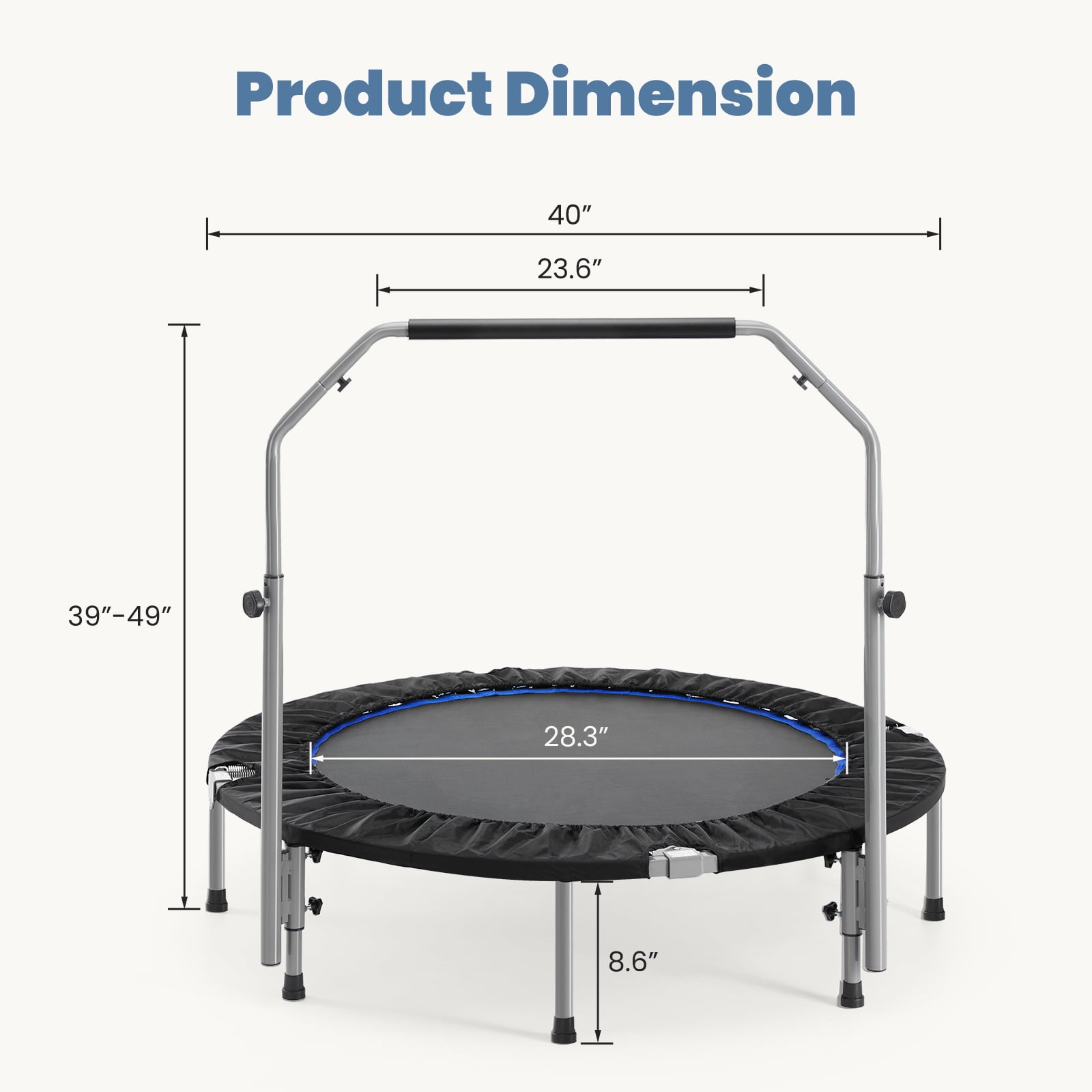 GIANNA 40″ Collapsible Mini Trampoline, 330lbs Maximum Load Capacity, with Foam Handles, Exercise Trampoline Suitable for Adult Fitness, Kids, Indoor Outdoor, Blue