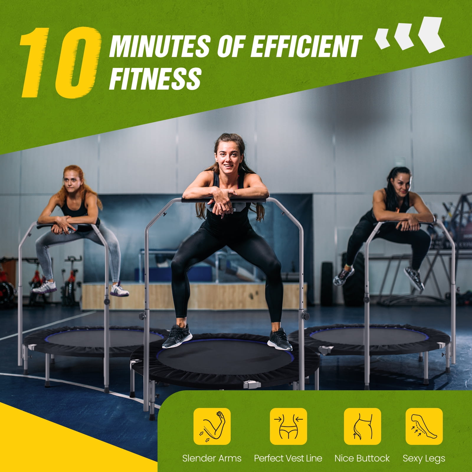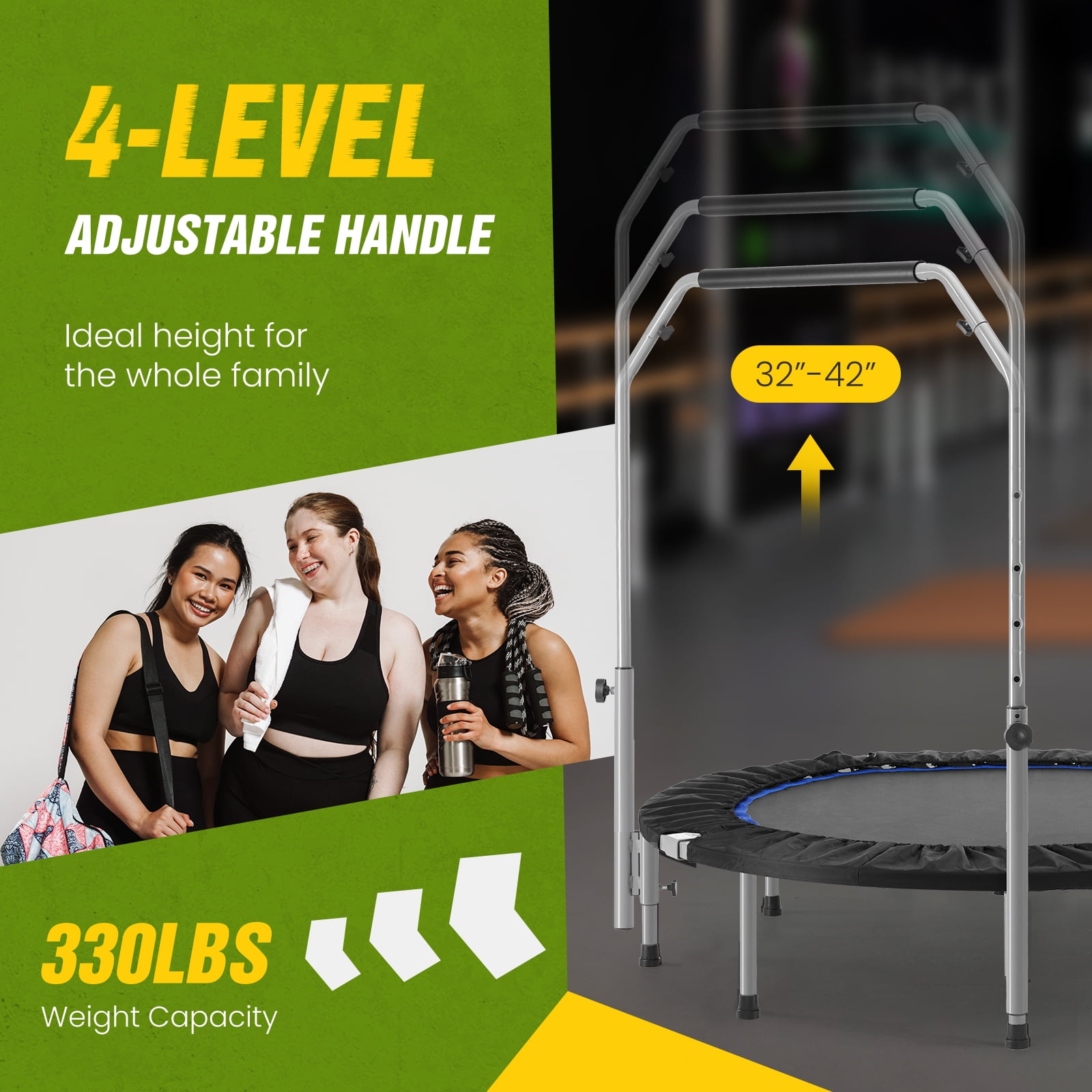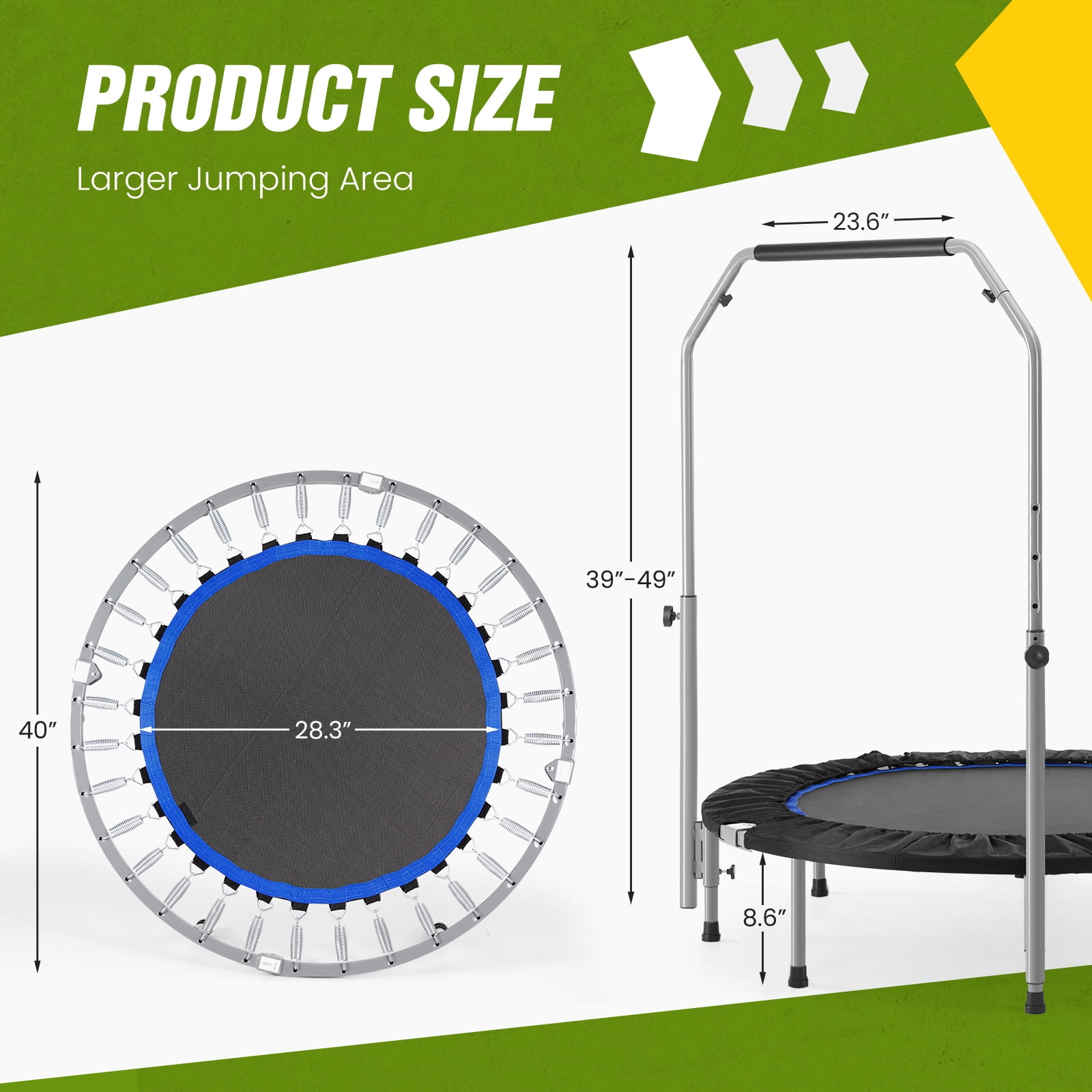 GIANNA 40″ Foldable Trampoline Max Load 330lbs, Exercise Trampoline for Adults/Kids, With Adjustable Handle, Black