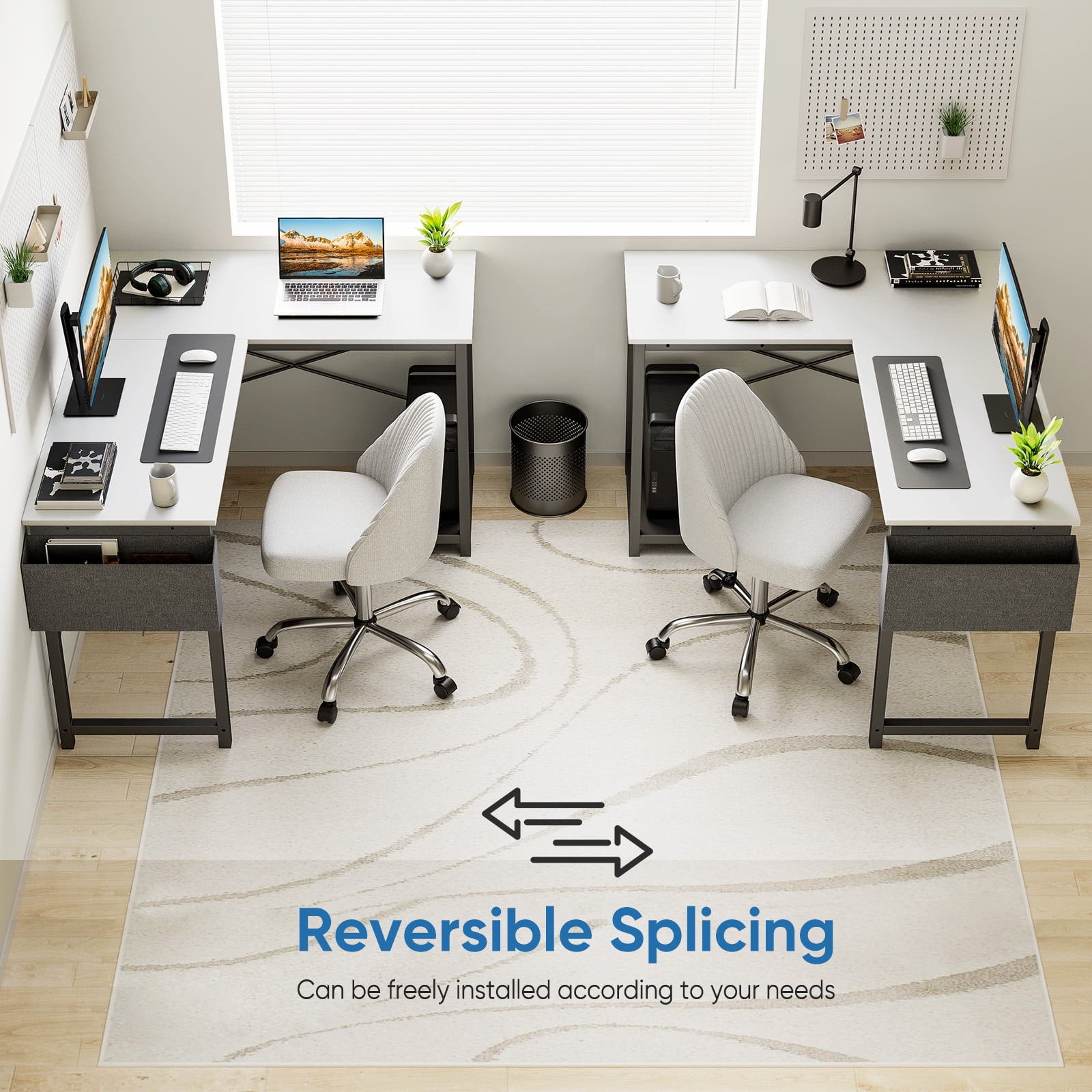 GIANNA Modern L Shaped Office Desk with Wood Surface, Storage Bag and CPU Holder,Classic White