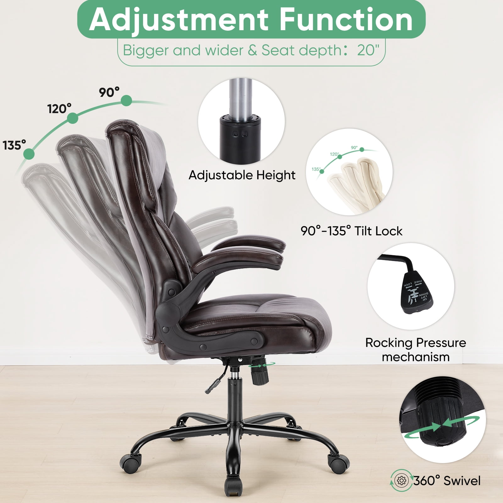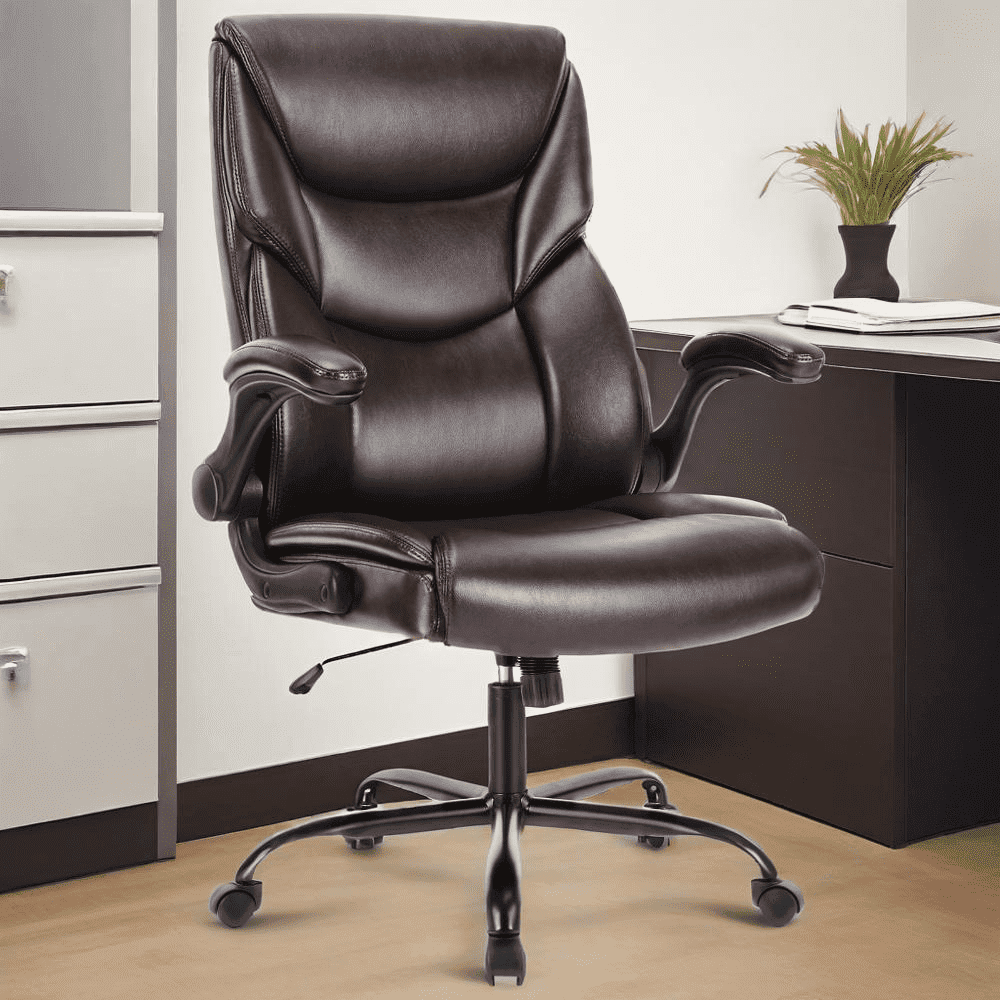 GIANNA Office Chair – the epitome of comfort, style, and functionality! Elevate your workspace with this ergonomic desk chair that is designed to provide you with the ultimate seating experience. Crafted with a focus on ergonomics, the GIANNA Office Chair features adjustable flip-up armrests that can be tailored to your preferred height and position, ensuring optimal support for your arms and shoulders. Say goodbye to discomfort and hello to a chair that promotes proper posture and relaxation while you work. Constructed with high-quality PU leather, this executive computer chair not only exudes a sleek and sophisticated look but also boasts durability and easy maintenance. The luxurious material is a breeze to clean, allowing you to effortlessly maintain its pristine appearance. Equipped with a swivel function, the GIANNA Office Chair enables seamless movement and easy access to different areas of your workspace. The smooth-gliding 360-degree rotatable wheels ensure smooth transitions, while the high-quality titanium metal five-legged base provides maximum stability and sturdiness, supporting up to 300 pounds with ease. Experience a new level of comfort with the GIANNA Office Chair, featuring lumbar support that promotes proper spinal alignment and reduces the risk of back pain.