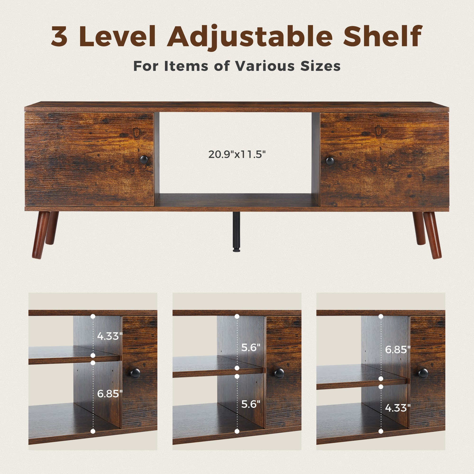 GIANNA Mid-Century Modern Wooden TV Stand for 55-60” TVs, 2 Storage Cabinets, Adjustable Shelf, Cable Management, Sturdy Legs, Easy Assembly, Rust Brown
