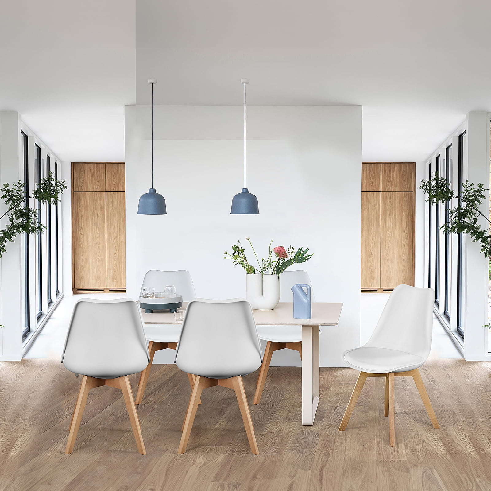 Add a touch of elegance and comfort to your dining room or kitchen with this 4-piece dining chair set. Each chair features a soft, PU leather seat that’s easy to clean and maintain, making it perfect for everyday use. The wooden legs provide a natural aesthetic and ensure durability, while the 275lbs weight capacity ensures each chair can support a wide range of users. With a versatile design and neutral color, these chairs blend seamlessly with a variety of interior styles. Whether you’re hosting a family dinner or enjoying a casual meal, these chairs offer the perfect balance of comfort and style. Assembly is quick and straightforward, so you’ll have your chairs ready to use in no time. Perfect for small spaces, this dining chair set will be a great addition to any modern home.