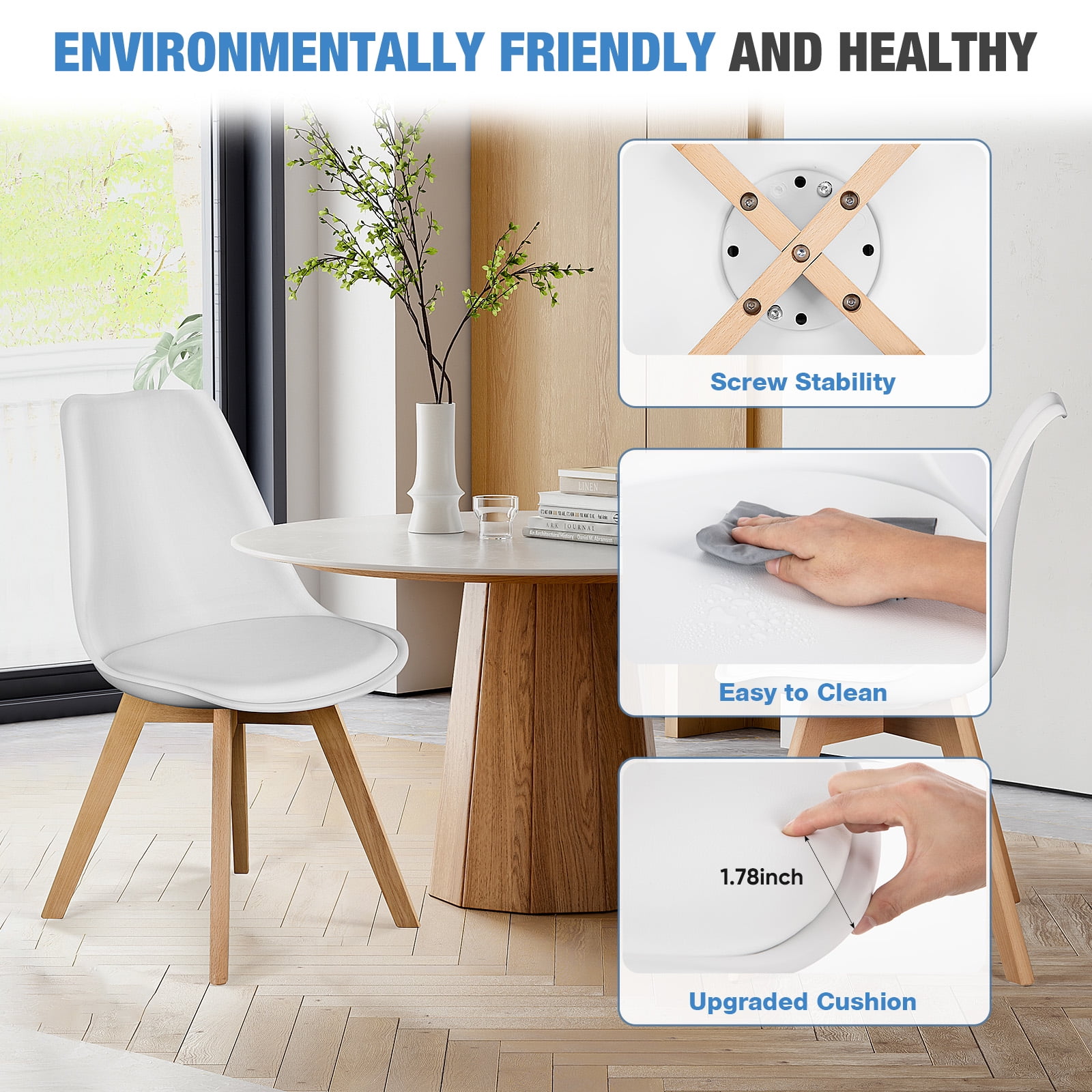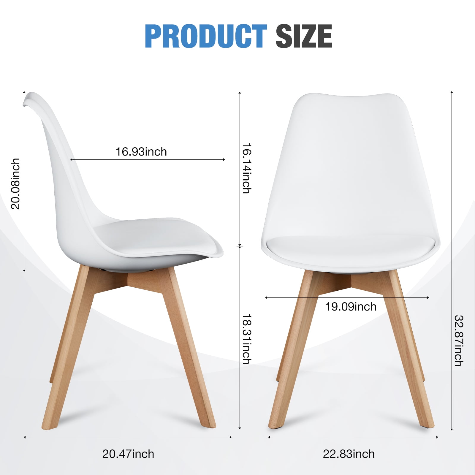 [Comfortable PU Leather Seat] Enjoy ultimate comfort with the cushioned PU leather seat, providing a soft, supportive surface that’s easy to clean—perfect for everyday use in the dining room or kitchen. [Durable Wooden Legs] Crafted with sturdy wooden legs, these chairs offer enhanced stability and can support up to 275 lbs, ensuring long-lasting durability for family gatherings and dinners. [Mid-Century Modern Design] Add a touch of elegance to your space with the sleek, mid-century modern design, blending seamlessly with a variety of interior styles and enhancing your home decor. [Perfect Dimensions for Any Room] Measuring 22.83″W x 19.09″D x 32.87″H, these chairs are sized to fit comfortably around most dining tables and can be used in the dining room, kitchen, or living room. [Easy to Assemble] Designed with convenience in mind, the set includes all necessary tools and instructions, allowing for quick and hassle-free assembly in just minutes.