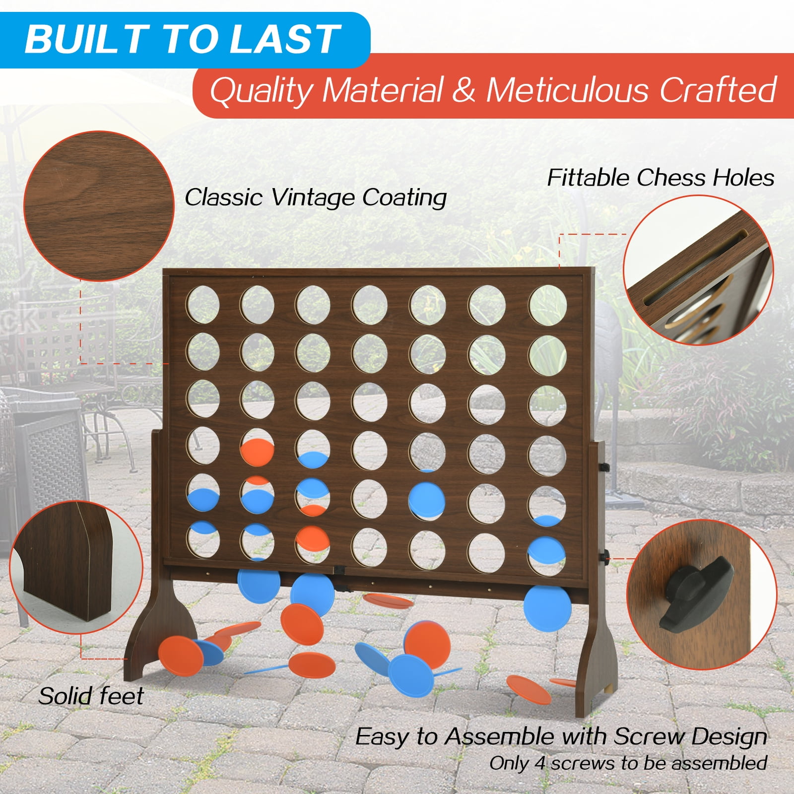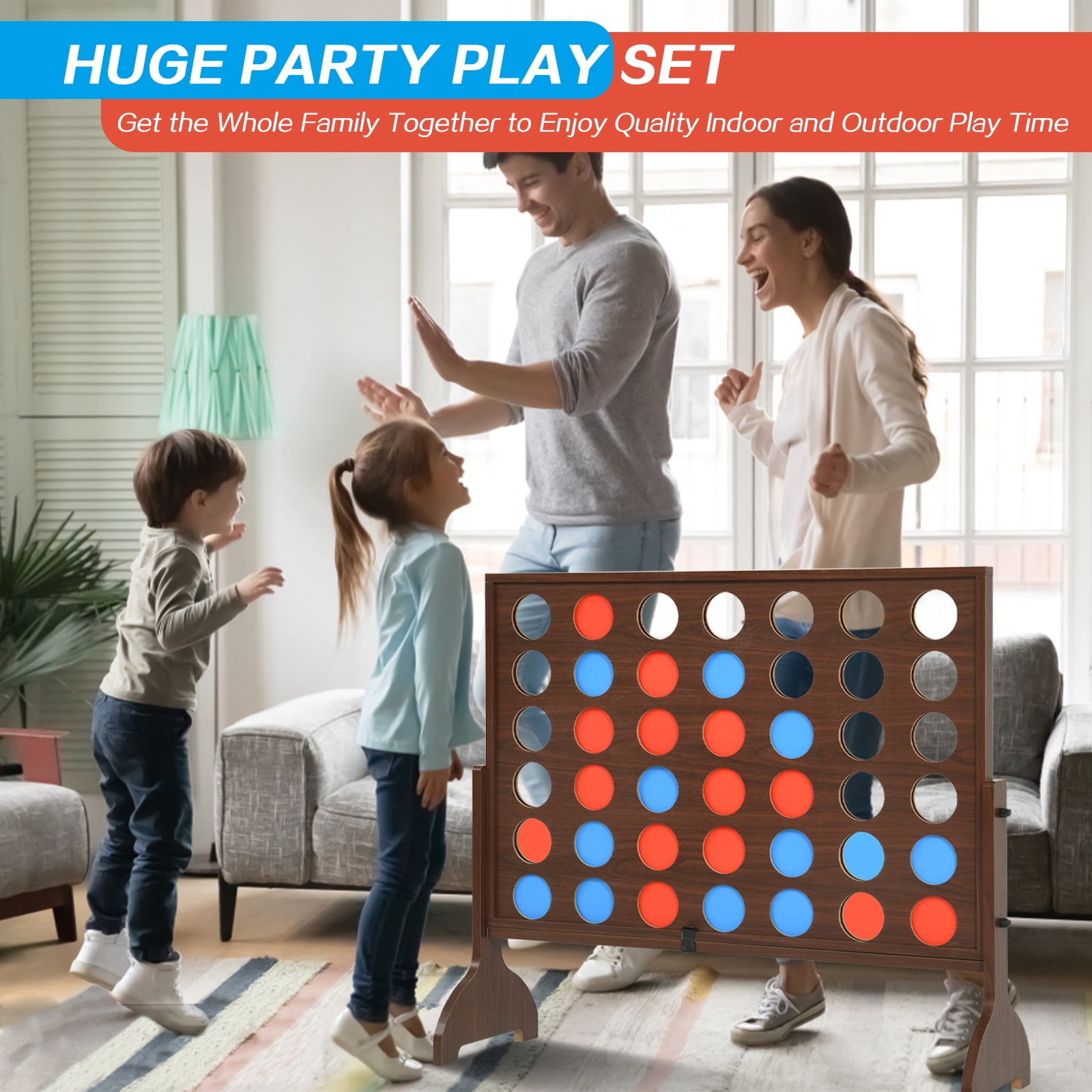 Giant 4-in-a-Row Connect Wooden Board Game – Extra Large Size for Big Families & Friends – Indoor/Outdoor Fun – Premium Kids Toy