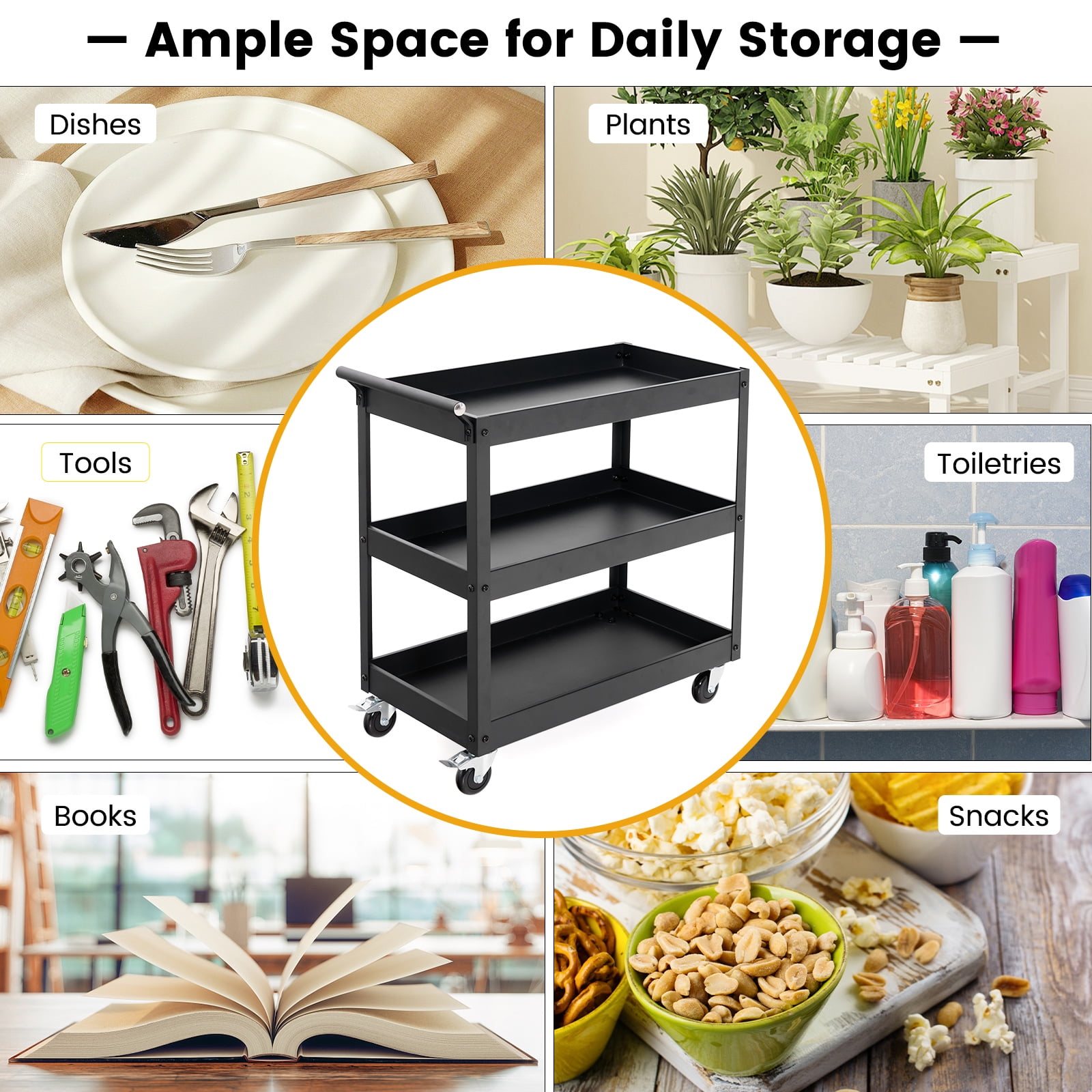 Giantex 3-Shelf Tool Cart w/Lockable Wheels, Steel Utility Mobile Storage Cabinet Organizer Trolley, Black