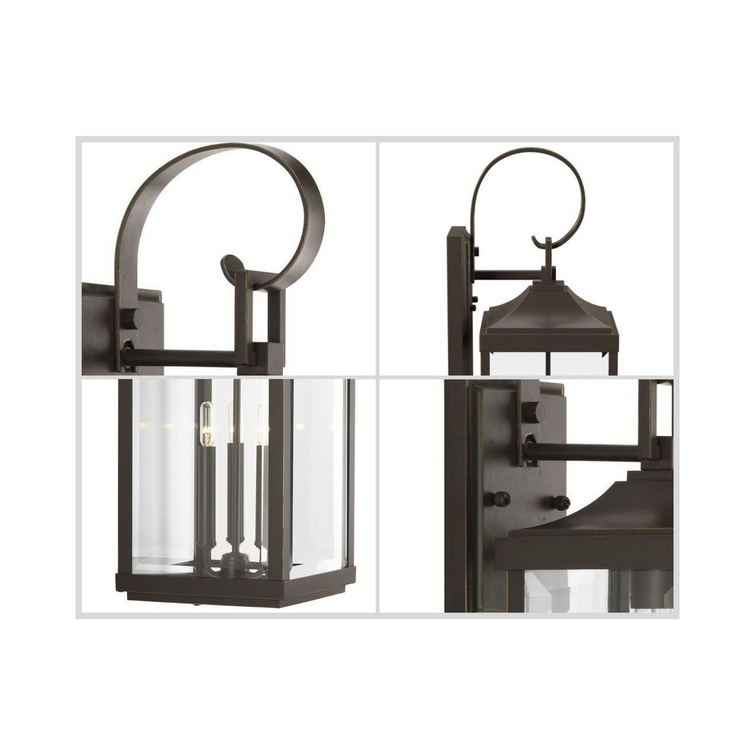 ELEGANT RUSTIC CHARM DESIGN: Incorporate a flawless lighting experience that infuses your home with understated elegance and rustic charm with the Gibbes Street Collection’s Three-Light Large Wall Lantern ideal for exterior and interior spaces in rustic, farmhouse, coastal, traditional, and transitional settings CLEAR BEVELED GLASS PANES: This farmhouse-inspired masterpiece cradles clear beveled glass panes that add a hint of modern flavor to the wall lantern’s timeless traditional design HANDSOME ANTIQUE BRONZE FINISH: The elongated, vintage frame with a handsome antique bronze finish attaches to a curved, crafted arm and simple bar that anchors to a beveled rectangular backplate adorned with two small, decorative knobs SIZE: 9-1/2-inch width, 30-5/8-inch height, extends 11-1/4-inch BULB TYPE: For optimal illumination, the wall lantern uses three candelabra base bulbs that are sold separately (60w max – incandescent or LED) full dimmable with dimmable bulbs