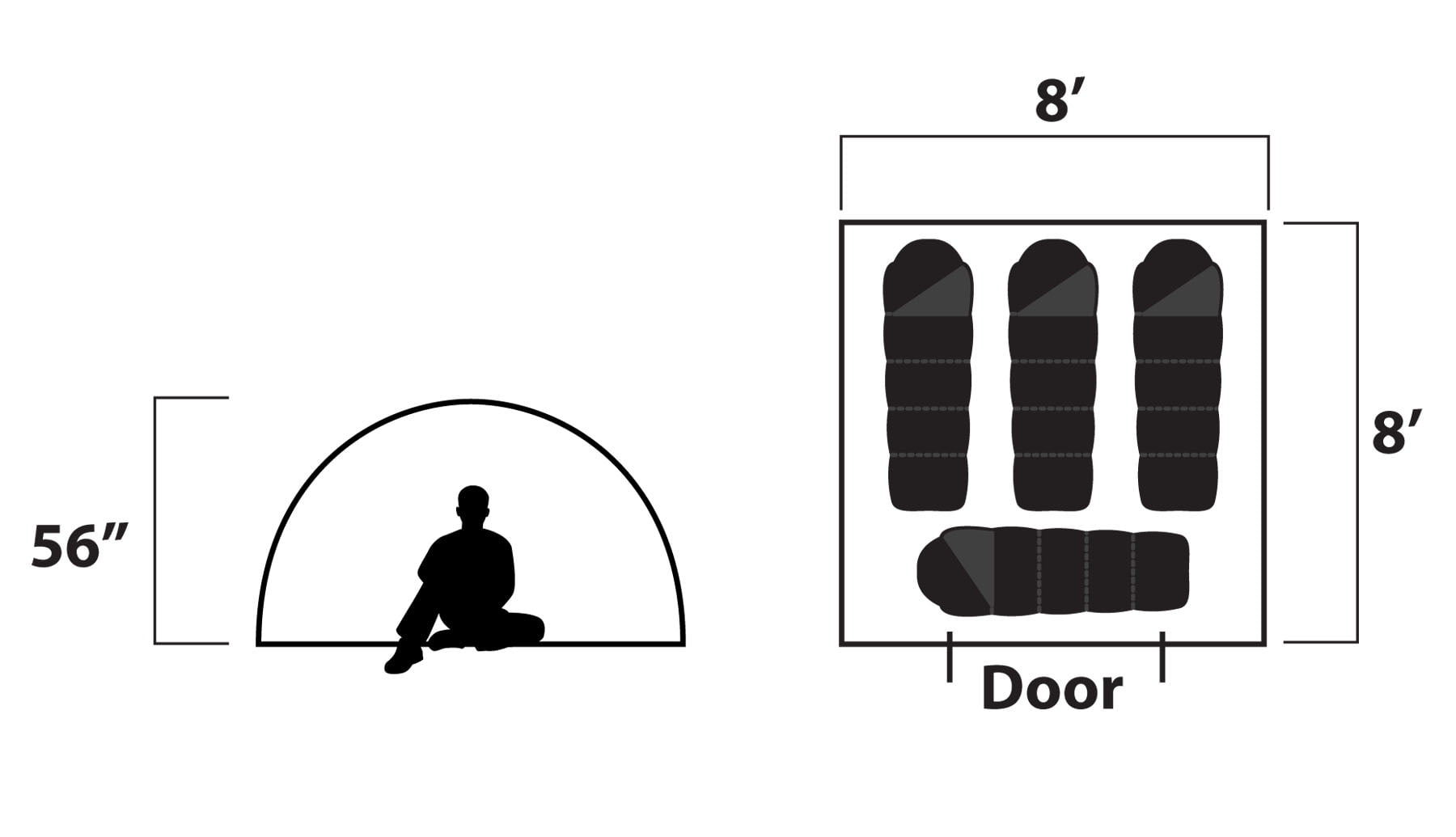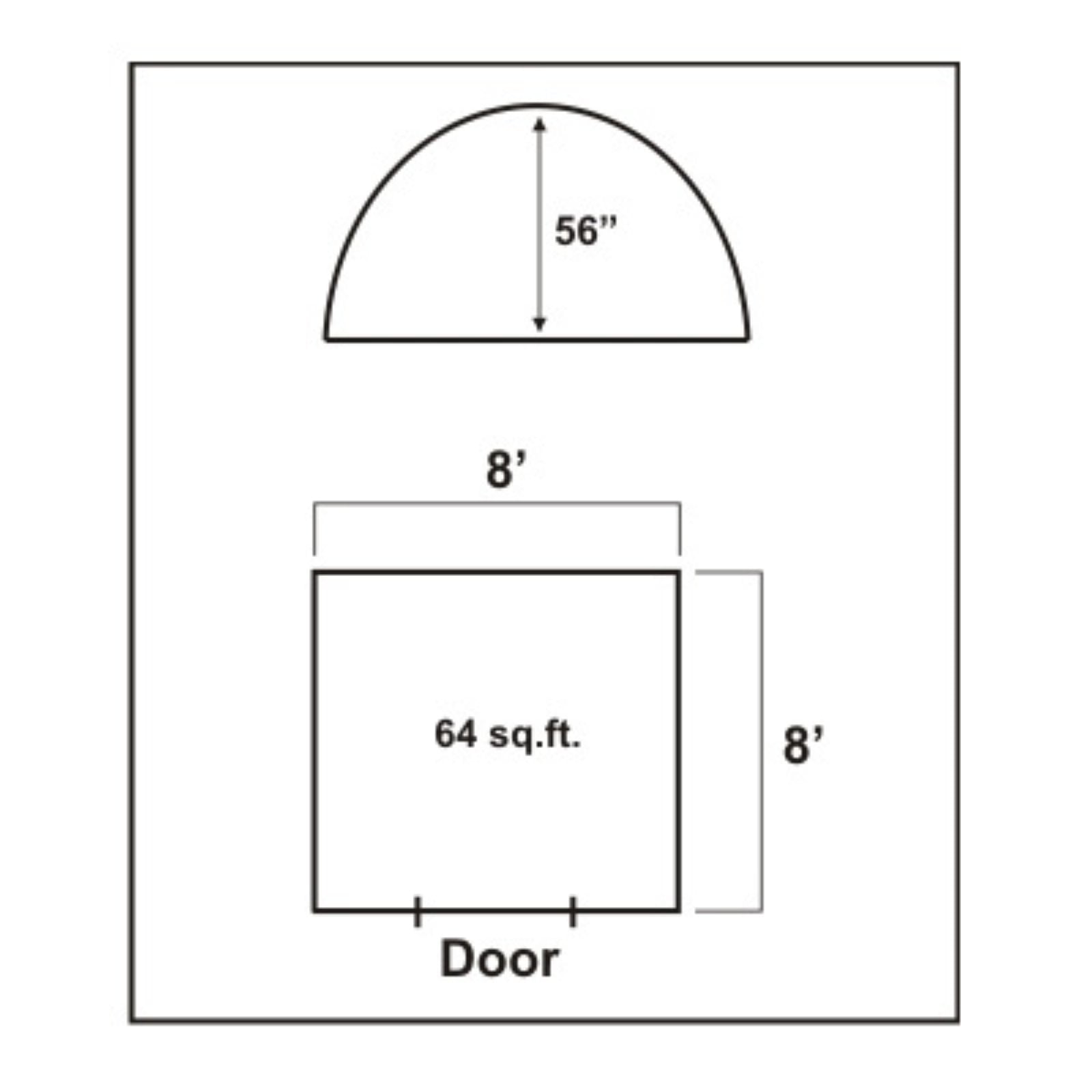 Sleeps 4 Peaked rain fly Ultra-violet-resistant materials Shock-corded fiberglass poles provide strength and durability Polyester fly and tent fabric Polyethylene waterproof floor Mosquito mesh windows Entrance tarp Dome design One room One door Four windows One interior storage pocket Easy setup 8′ x 8′ size 56″ interior height at the center of the tent 9 lbs 11 oz Includes duffle style carry bag Packs to 23” x 7” x 7”