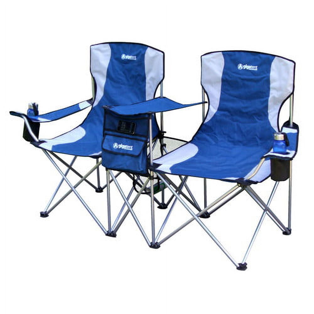 Features: -Sit side by side chair. -Includes a front Hook & Loop Fastener pocket for valuables you may want to keep an eye on. -Made with a sturdy steal coated frame includes a built in center table. -Extra mesh sun glass pocket included. -Comfort on sobs double folding chair. -Spending a weekend at the beach or at a ball game. Frame Material: -Metal. Folding: -Yes. Weight Capacity: -250 Pounds. Dimensions: Overall Height – Top to Bottom: -40″. Overall Width – Side to Side: -73″. Overall Depth – Front to Back: -25″. Overall Product Weight: -20 lbs.
