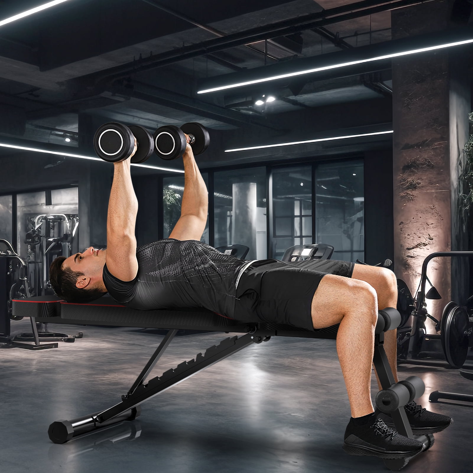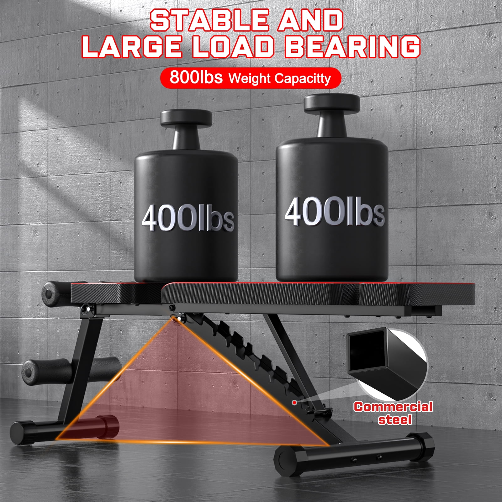 ✅Durable Construction – The weight bench is made of high-quality steel, forming a stable triangular structure that supports a load capacity of 800lbs. ✅Comfortable Cushioning – It features a 1.8-inch thick back and seat cushion with high-quality soft leather, offering comfort, durability, and a non-slip surface. ✅Adjustable Barbell Rack – The barbell rack can be adjusted to to accommodate individuals of different sizes. In addition, the backrest of the weight bench can be adjusted to tilt, drop, or lie flat to meet your various needs. ✅Multi-Functional Use – Suitable for bench press, stretching, sit-ups, and dumbbell exercises, making it ideal for personal training and home gyms. ✅Compact & Foldable Design – The bench can be folded in two simple steps by pulling out two pins and lowering the mat, making it easy to carry and store. ✅Easy Assembly – Comes with complete installation tools, a guide, and individually labeled bolts/nuts for hassle-free setup. Color: Black Max Weight Capacity: 800lbs Material: Steel, Foam weight:23.1lbs Backrest: 9 Position Adjustment Folding Sizes: 33.15×18.33×7.8 inches