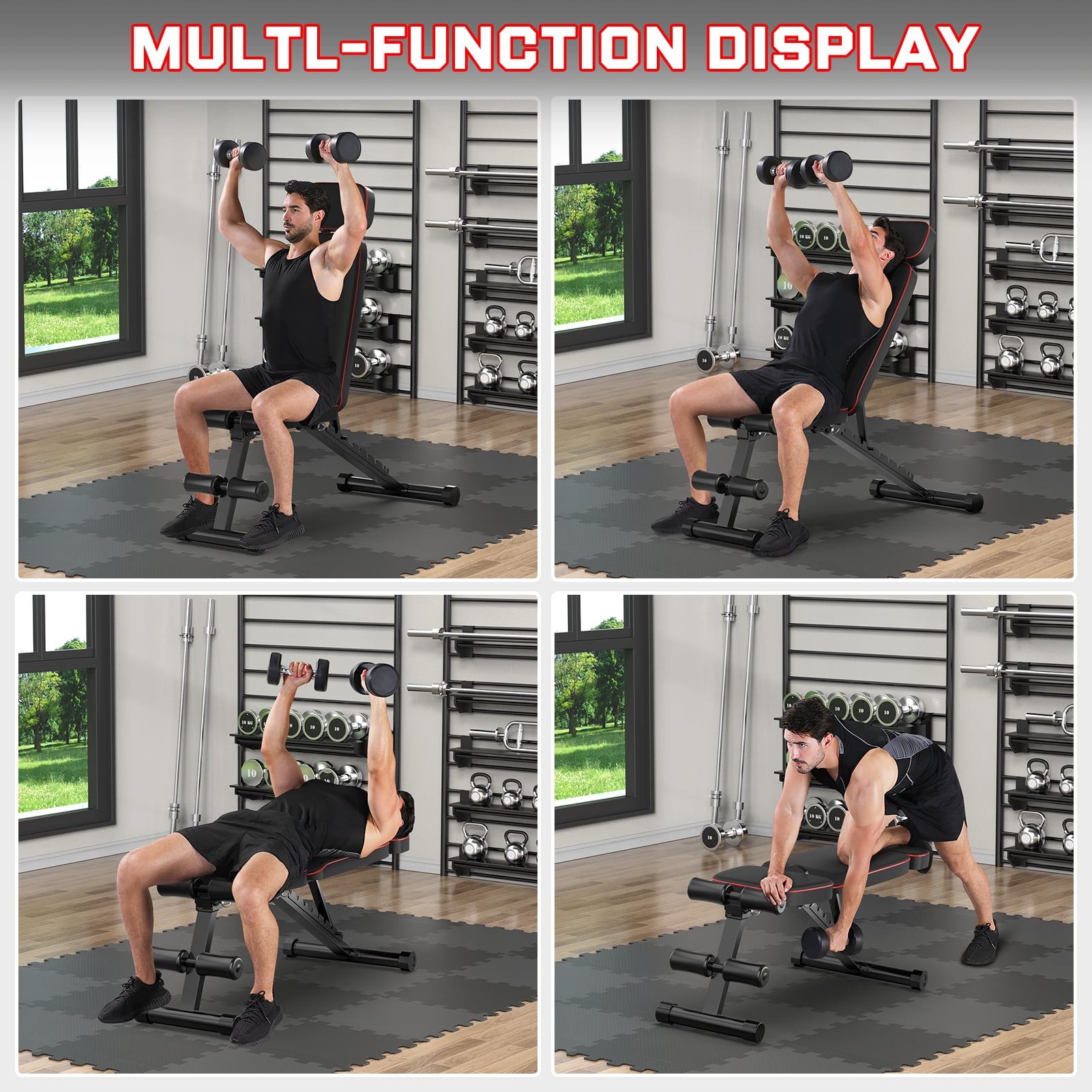 GIKPAL Adjustable Weight Bench Foldable Incline Bench Workout Dumbbell Bench Strength Training Bench for Home Gym Support up to 800lbs The GIKPAL adjustable Foldable weight bench is the unification of quality and functionality.It not only has excellent quality: high-quality leather, sturdy leg frame, can withstand 800lbs capacity; but also has complete functions: the backrest pad has 9 adjustable angles, which can make the weight bench adjust to different angles to complete different tasks. Exercises to exercise various muscle groups. Foldable bench, easy to carry and no assembly required, making it easy to store,When you’re done exercising, you can put it in the corner, in your closet, or under your bed. Save time, money, and space in your home gym by adding this weight bench to your workout routine.