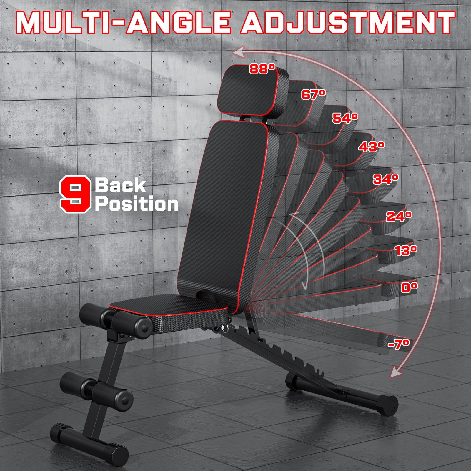 GIKPAL 9 Positions Adjustable Weight Bench,Foldable Workout Bench Olympic Weight Bench Press for Home Gym Full Body Strength Training,Support up to 800lbs