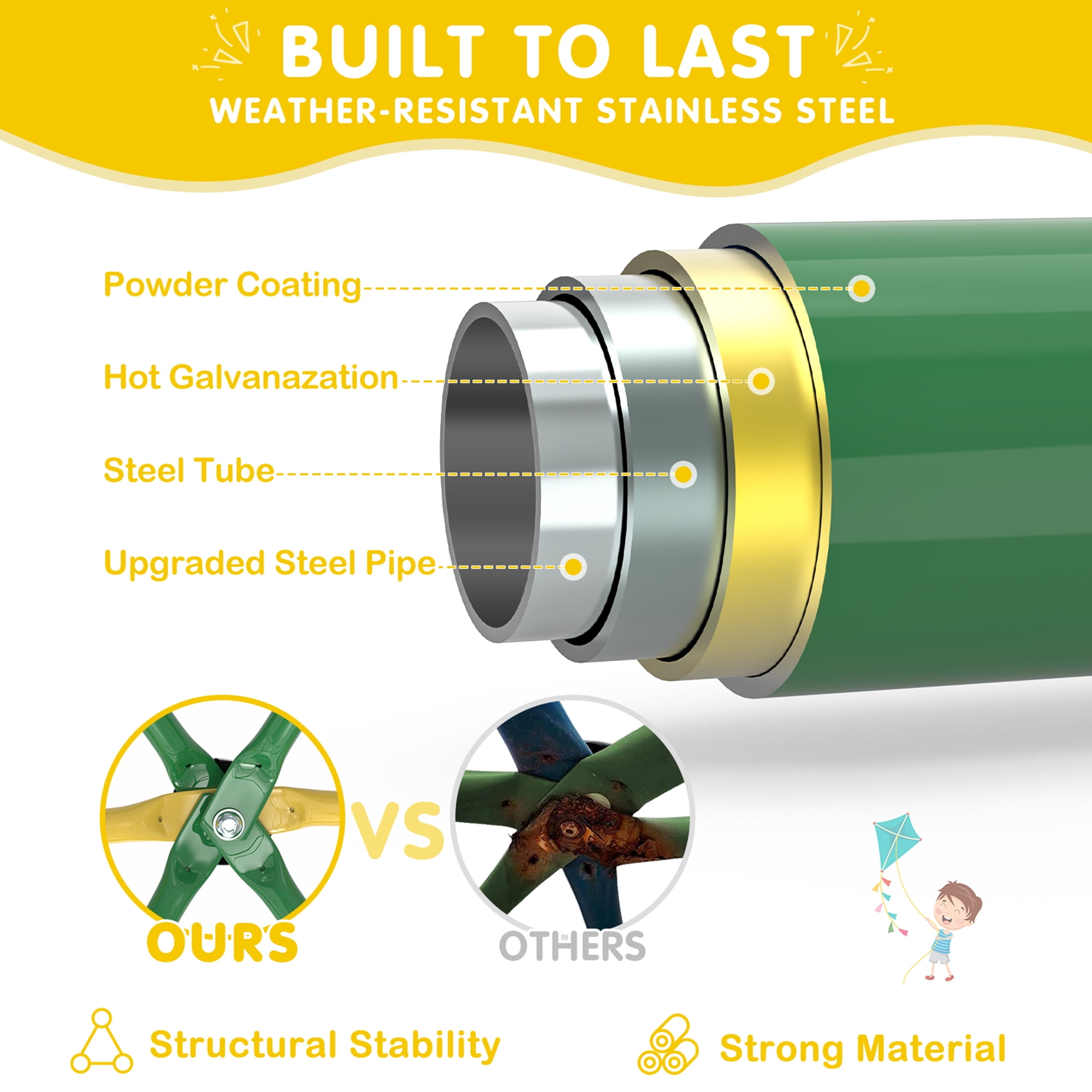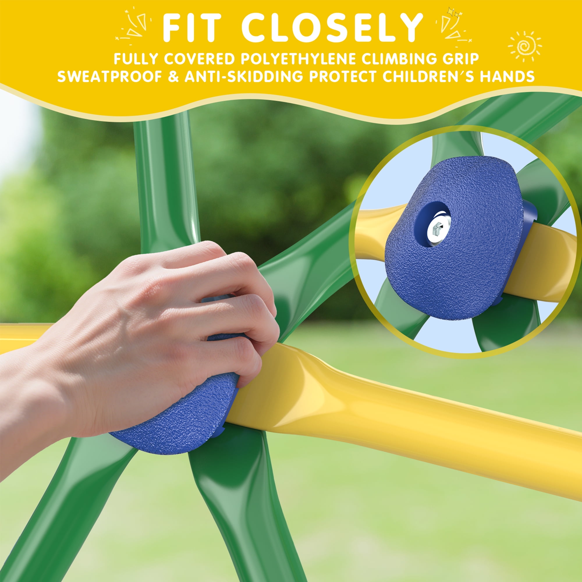 GIKPAL Climbing Dome, 10FT Dome Climber with Hammock & Swing Set for Kids Outdoor Play Equipment, Supports up to 1000lbs Jungle Gym, Anti-Rust, Easy Assembly,Yellow+Green