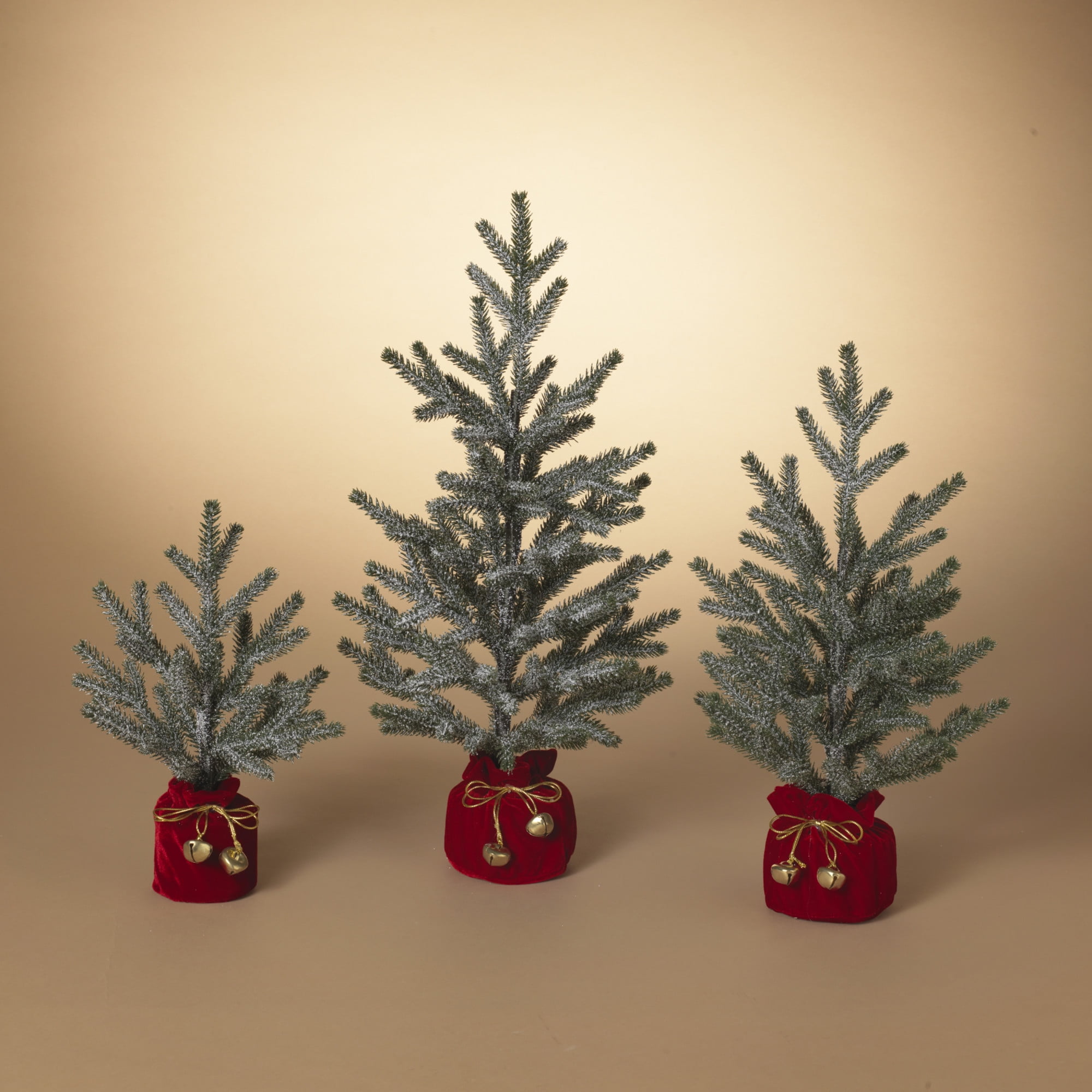 This set is the perfect addition to your holiday decor, adding a touch of rustic charm and festive spirit to any room in your home. Each tree is carefully crafted with high-quality materials, including realistic-looking pine needles and sturdy bases. The trees vary in size, giving you the option to create a beautiful display of varying heights. The red velvet bags tied with jingle bells add an extra festive touch, creating a beautiful contrast with the natural green of the trees. Display them on a mantel, tabletop, or even as part of a holiday centerpiece. Features Three beautiful Pine Trees feature a realistic tree design Place these trees together as a set or place them individually around your house to add to the holiday theme in your home Each tree has a sturdy base wrapped fabric with attached bells These trees can be adorned with small ornaments These 3 trees come in different sizes, small, medium, and large Set of 3Specifications Seasons: Winter Theme/Holiday: Christmas Weight: 4 lbs – SKU: GRSN5564