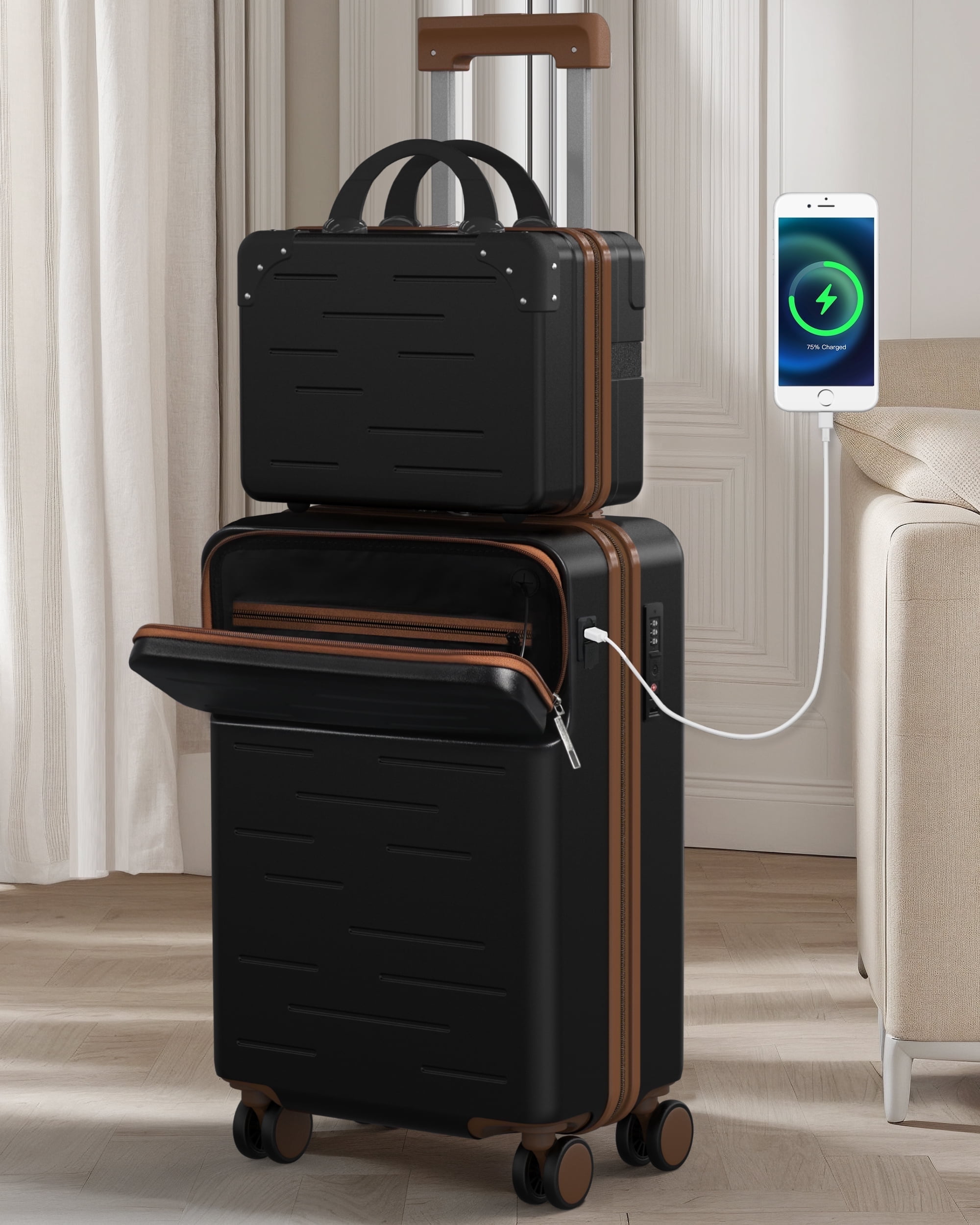 【2 PIECE LUGGAGE SETS SIZE-INCLUDING WHEELS】: 20″ Carry On Luggage:23(H) * 15(L) * 10(W) INCH( meets all standard requirements for carry-ons on both international and U.S. based flights),Weight:6 Lbs,Capacity:40 L; 28″ Checked Large Luggage:31(H) * 20(L) * 12(W) INCH,Weight:9 Lbs,Capacity:105 L 【100% ABS HARD SHELL MATERIAL LUGGAGE SETS】: Made of extra-thick ABS materials for hard shell, which make the luggage more durable, lighter and impact-resistant.Features textured finish to prevent against scratches, keeping luggage set beautiful trip after long time use.20in is best carry on luggage for airplane, 24in & 28in is checked suitcase. 【SILENT & SMOOTH 360 °SPINNER WHEELS】: Benefit from brand new wheels, luggage moves very silent and smoothly with 360°double spinner wheels.Four multi-directional super large dual wheels for an effortless movement experience, built with great weight.Spinner wheels increase stability for a confident ride while on the go with loaded items during your journey. 【SAFE LOCK】: With build in lock, it’s easy and convenient to lock and unlock your suitcase during travel for customers of all ages, and the simple method of use can make your tedious journey easier. (The original number is 0-0-0), you can freely set the luggage code (the manual is in the luggage compartment, or you can contact us); 【DETAILED INTERIOR 】: The Interior of the suitcase are covered with two layers of materials. Polyester fabric and a thin layer of foam, to increase elastic buffer and add comfort for our dear customers. Also with Interior mesh zip pocket and elasticated, squared full capacity design.